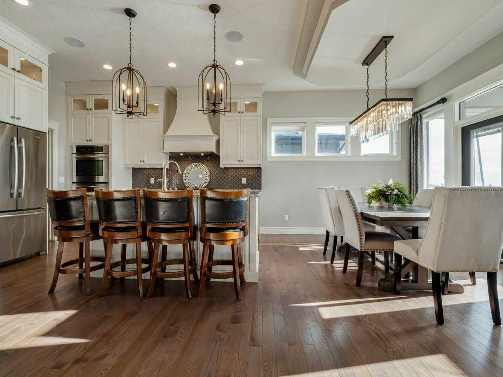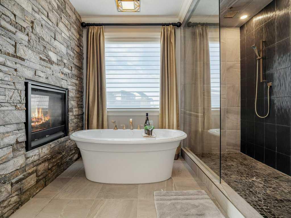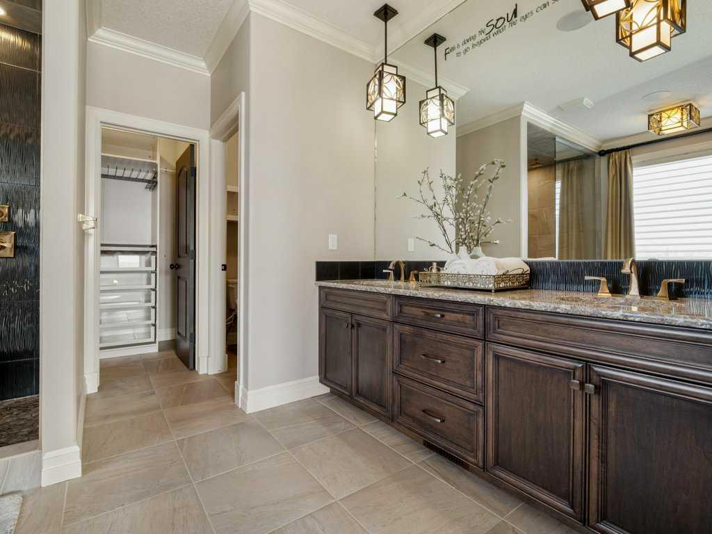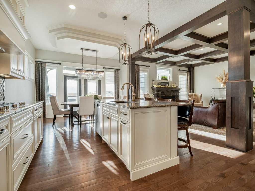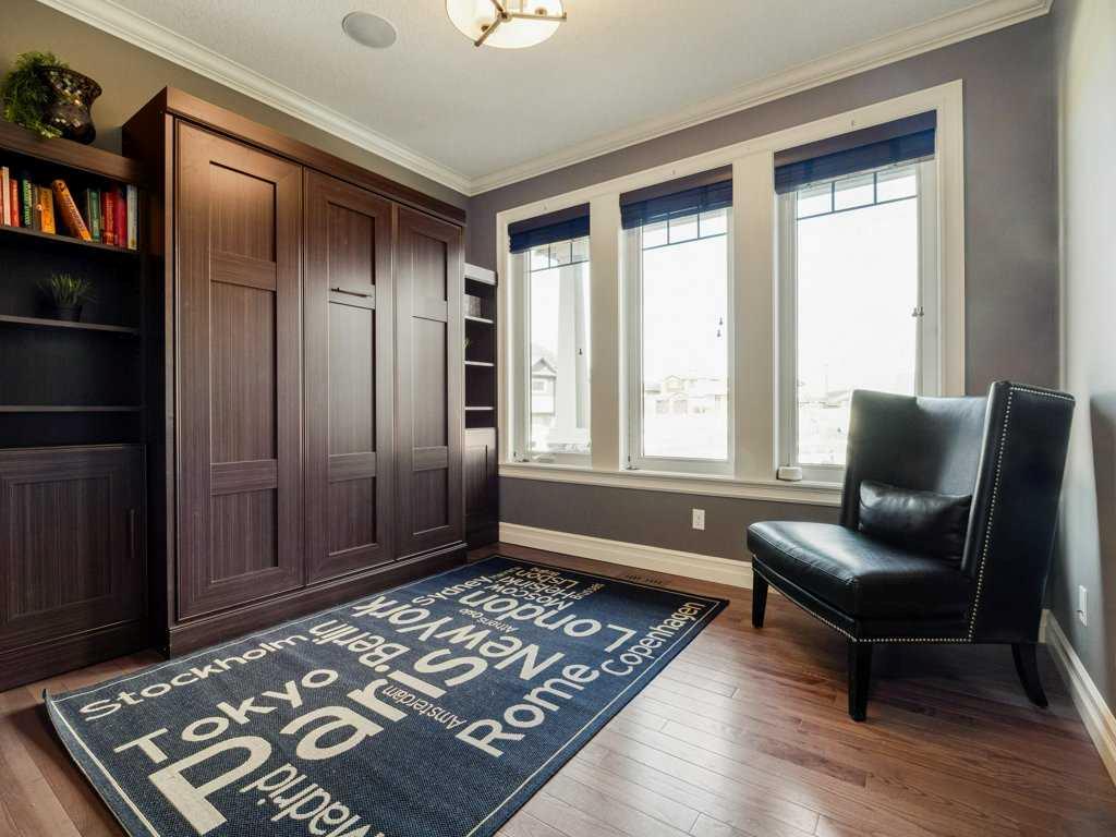 Former Signature Show Home in an amazing location. Fully developed, coffered ceiling in livingroom which features a stone fireplace, beautiful kitchen, Butlers Pantry off garage entry with laundry facilities. Dining area leads to deck with views that everyone will enjoy, part of the deck is covered with electric wind screens for added privacy and gas line for your BBQ. Double garage is heated with electric lift for storage shelf, plus water in garage. Primary suite on main floor with gorgeous ensuite bath, large walk-in closet with built ins. Other main floor bedroom has a murphy bed and was used as an office. Two generous size bedrooms upstairs as well as sitting area and built in desk at the top of the stairs. Basement has 9' ceilings and is an awesome entertaining space with walk out to patio, wet bar area, fireplace, plus a gym/dance studio with leather floor plus 2 more bedrooms. This home has so many upgrades and features, it would be an absolute pleasure to call Home.