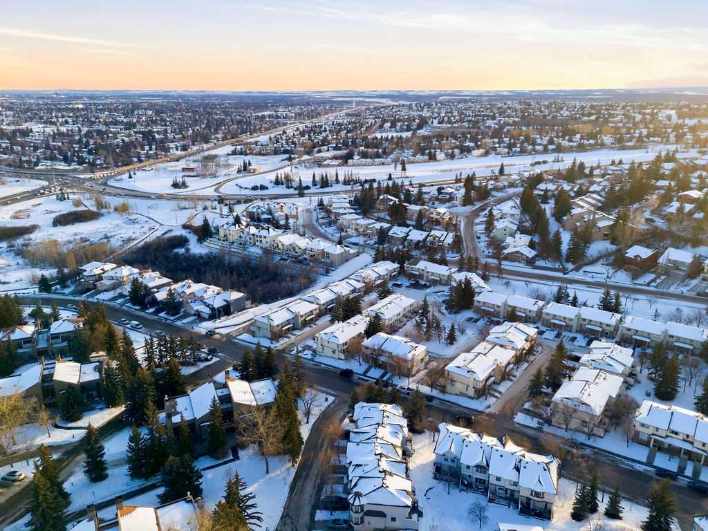 Welcome to 5 Patina Point SW, a tastefully updated 2 bedroom, 1.5 bath townhome offering 1,340 sq. ft. of comfortable living space in the highly desirable community of Patterson on Broadcast Hill. Surrounded by mature trees, abundant green spaces, and sweeping city views from the community, this location offers the perfect balance of convenience and nature right outside your front door. Step inside to a functional foyer entry that leads up to the open-concept main living area, where you’ll find solid oak hardwood floors, a wall of bay windows filling the space with natural light, and a cozy gas fireplace offering an inviting setting for relaxing evenings or hosting family and friends over the holidays. The updated kitchen features timeless oak cabinetry, custom concrete countertops, a generous island, and direct access to the private back deck overlooking peaceful green space the ideal spot for morning coffees or warm summer dinners. Upstairs, you'll find a very large primary bedroom with a custom feature wall, a second well-sized bedroom, and an updated 4-piece bathroom complete with a large corner soaker tub. A bright loft area offers the perfect spot for a home office, reading nook, or additional family lounge space. The attached double garage provides secure parking for two vehicles plus a driveway stall, making parking effortless and storage abundant, a rarity in inner city living! Perfectly positioned just steps from transit, minutes to downtown, and with easy access to the mountains, this townhome offers an unbeatable lifestyle and value. Don’t miss your chance to own in one of Calgary’s most sought after communities!
