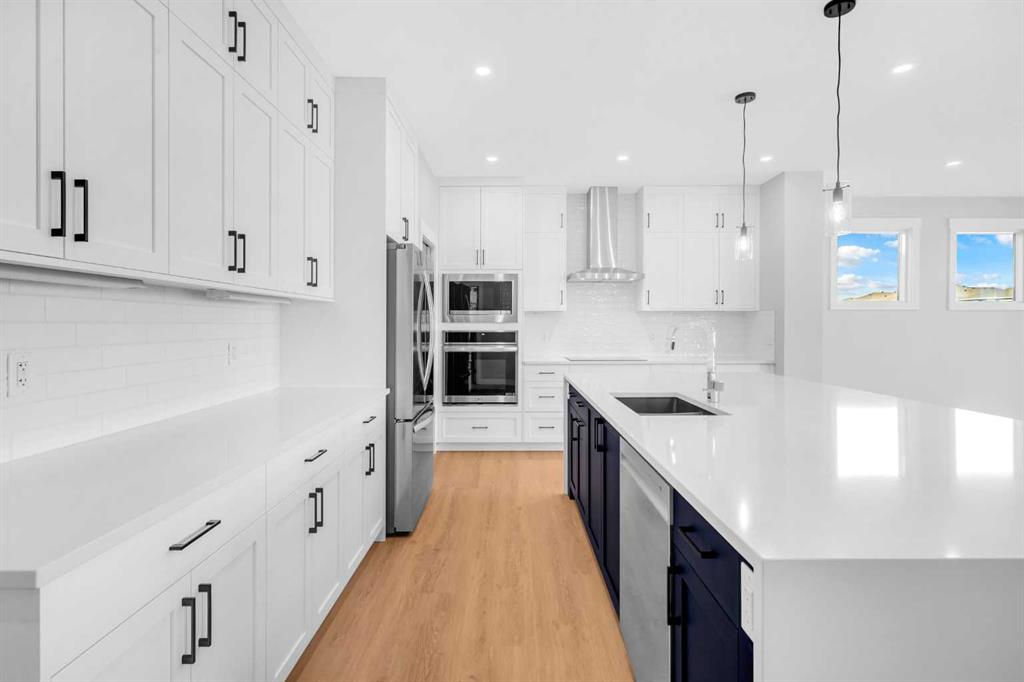 Welcome to 239 Chelsea Park, a truly exceptional family home in the heart of Chestermere. This stunning 4-bedroom, 3.5-bathroom estate offers over 2900 square feet of beautifully crafted living space and is perfect for those seeking both luxury and practicality. The open-concept floor plan is highlighted by soaring ceilings and an impressive floor-to-ceiling fireplace, creating a warm and inviting atmosphere. Natural light floods the home through large windows, illuminating the elegant and custom finishes that flow throughout. The heart of the home lies in the gourmet kitchen, featuring a massive island, sleek countertops, and upgraded high-end appliances, including a separate spice kitchen . Whether you're hosting dinner parties or enjoying family meals, this kitchen offers both style and functionality. On the main level, you’ll also find a spacious office/den, perfect for those who work from home or desire a quiet space for study or reading. This flexible space enhances the home's versatility and adds to the overall convenience of the layout. The home boasts two luxurious ensuites, one in the master suite and another in an additional bedroom, both offering a spa-like retreat with spacious showers and beautiful tile work. Two additional well-sized bedrooms share a beautifully appointed full bathroom, and the home includes 3.5 bathrooms in total, ensuring comfort and convenience for the whole family. Step outside to the expansive deck, where you can enjoy the serene backyard space, ideal for summer BBQs or simply unwinding in privacy. The triple-car garage offers ample space for vehicles, storage, or even a workshop. Situated in the desirable Chelsea Park neighborhood, this home provides easy access to Calgary, excellent proximity to schools, parks, and recreational amenities, and is just moments away from Chestermere’s picturesque lake and outdoor trails. This is an extraordinary opportunity to own a sophisticated, family-friendly home in one of Chestermere’s most coveted communities. Don’t miss your chance—schedule your private viewing today!