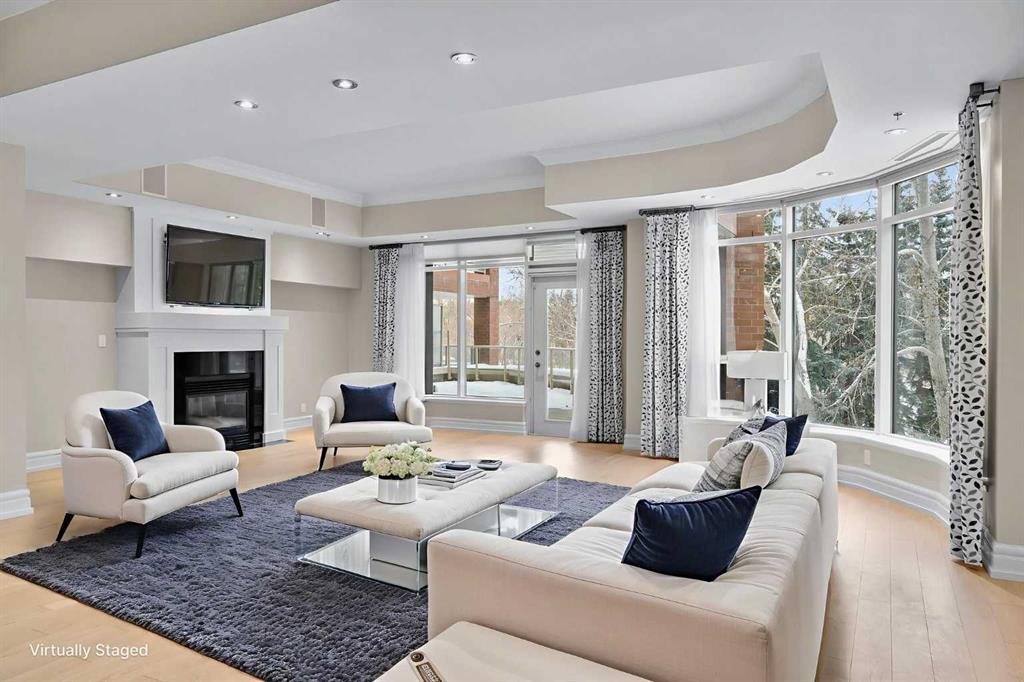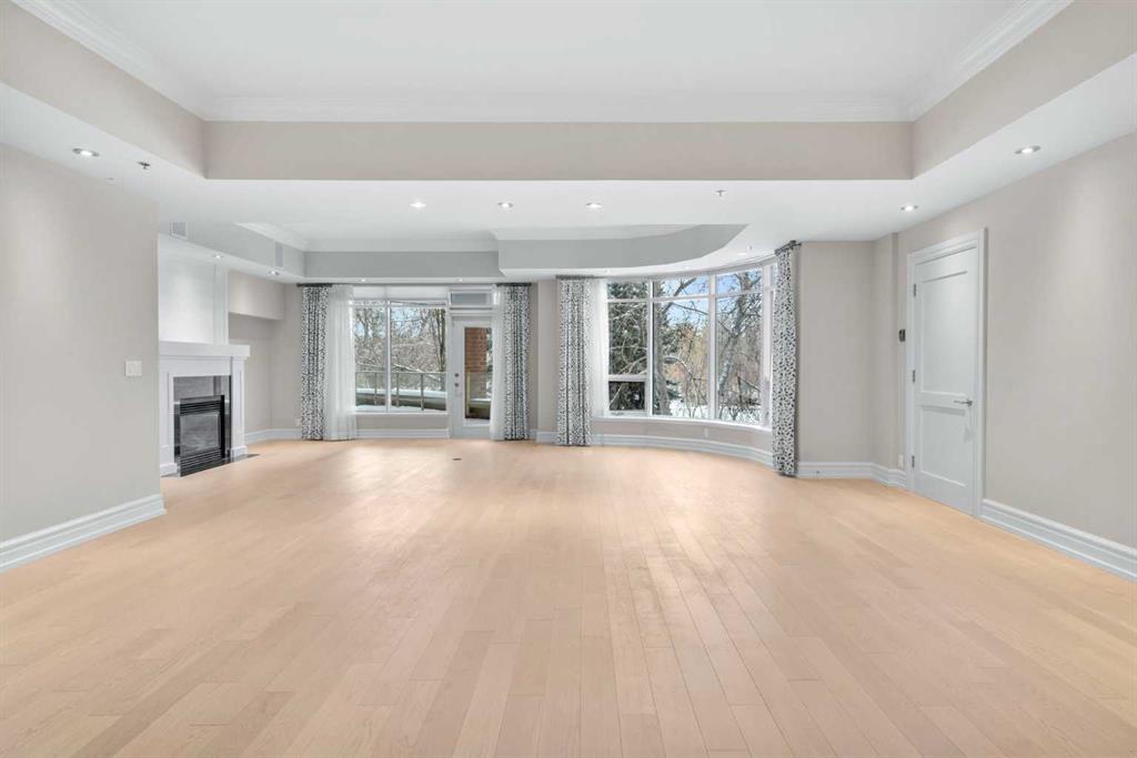 For those who value excellence, this distinctive executive residence in the Princeton Grand, a name synonymous with exclusivity, privacy, and luxury, is set amidst the most desirable residential enclave in Eau Claire. Your lifestyle will appreciate the opulent convenience of a private in-suite elevator coupled with exceptional amenities including 24 hour dedicated concierge, temperature controlled wine room with private storage lockers & tasting room, events area with full kitchen, TV’s and terrace, 2 private guest suites, a fully equipped fitness centre, yoga centre, steam room, dry sauna, showers, change room with lockers, full kitchen & bathroom, full service U/G car wash bay, bicycle storage, and a separate freight elevator. The beautifully manicured grounds create a private park-like setting, nestled along the south bank of the Bow River next to beautiful Prince's Island Park and incredible Pathway System! Walking distance to office towers, shopping, entertainment, restaurants, +15 skywalk system, transportation and the LRT, Peace Bridge, Kensington Shops and Calgary's vibrant City Center. Presenting a rare offering of 2892 sq.ft. of harmoniously appointed living space displaying the highest level of craftsmanship and luxurious interior tailoring, with pride of ownership complimenting the timeless prairie palette that flows seamlessly throughout the integrated floor plan that embraces the stunning backdrop of the Bow River. This exceptional luxury residence features a private elevator for the ultimate in convenience which opens to your stylish and spacious foyer, and then presents an exceptionally open entertaining floor plan, large floor to ceiling windows that provide exceptional natural light, with the open concept living/dining areas overlooking the private treed views to the Bow River. The master quarters overlooks the river and offers a large walk-in closet, relaxing, sensual 5 piece spa inspired ensuite with heated floors, a convenient office area and direct access to the expansive north terrace overlooking the Bow River and Prince's Island. The very private second bedroom is totally secluded from the living areas. The bright professional-grade gourmet kitchen was designed as the epicenter of the space with direct access to the south terrace, coupled with the north terrace can accommodate gatherings of all sizes. This peaceful and park-like setting offers two spectacular and spacious outdoor living spaces, a stunning 680 sq ft covered deck overlooking the mature trees and Bow River to the north, and a second sunny south facing covered balcony off the kitchen and family room, great for year round BBQs. An exceptional floor plan that's perfect for entertaining. Home includes built-in speaker system, vacuum system, a wine fridge, 1 gas fireplace, high ceilings, lge bright windows, 2 titled parking stalls and titled storage locker. Enjoy your refined lifestyle against a backdrop of luxury services, finishes and accoutrements in the Princeton Grand.