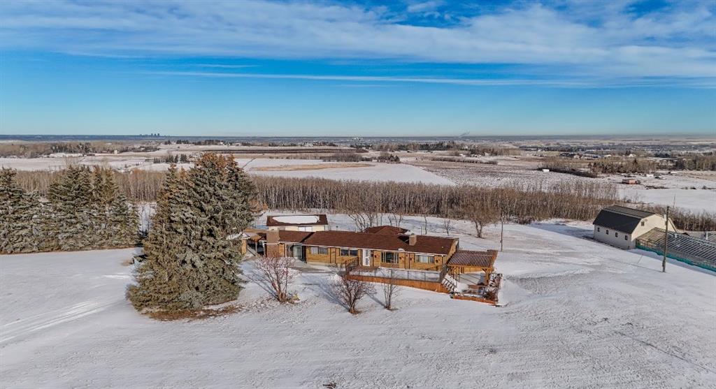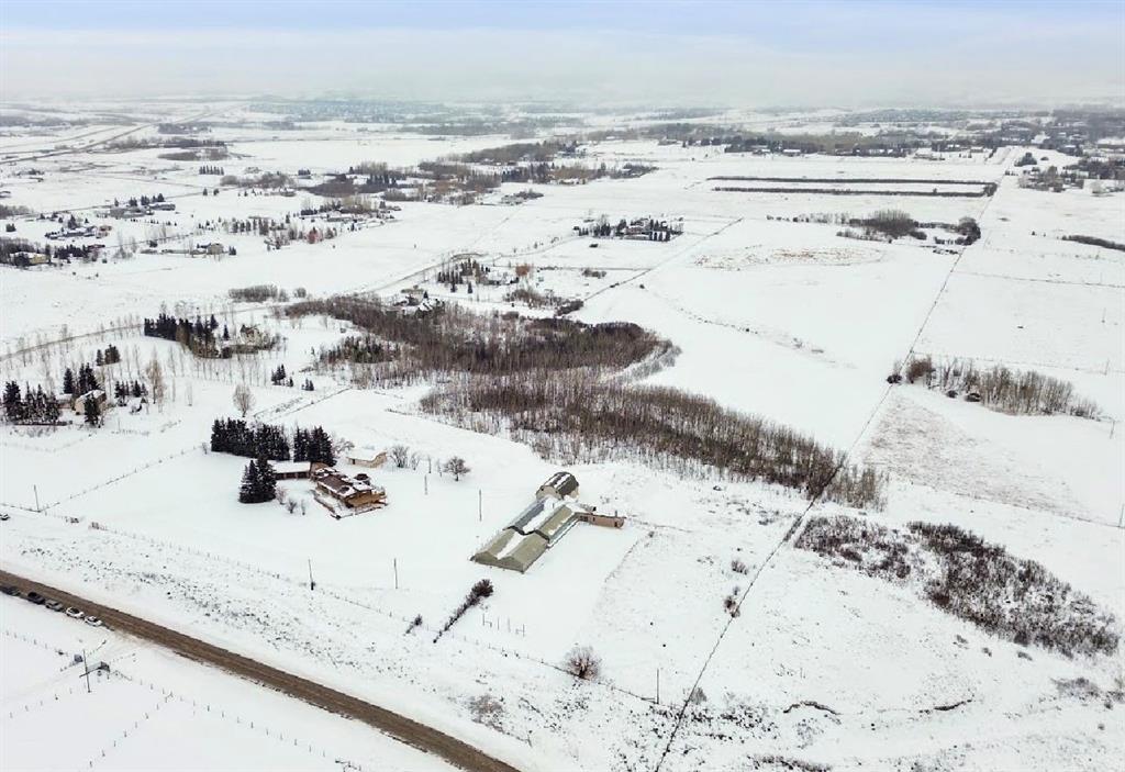 CALLING DEVELOPERS, INVESTORS, EQUESTRIANS and so many more, incredible property! Almost 40 ACRES just 5 MINUTES south of Calgary city limits, gated & fully fenced, with panoramic views of rolling countryside, sunrises, sunsets, ROCKY MOUNTAINS and CALGARY SKYLINE! Original family-owned, first time ever listed. Former licensed commercial greenhouse operation with mature landscaping, concrete walkways and exceptional versatility. HUGE CEDAR LOG WALKOUT BUNGALOW featuring 2 wood-burning fireplaces, expansive living spaces, flexible bedrooms/offices, developed basement and seamless indoor-outdoor living with decks, pergolas & patios. Extensively upgraded with hydronic & forced-air heating, A/C, Vacu-Flo, security system, radon mitigation, dual wells, softened & distilled water systems, and meticulously maintained septic. Triple garage, heated workshop, barn with loft, three fully serviced greenhouses, ample parking and agricultural income potential. Easy highway access to Calgary & Okotoks, school bus route, and future subdivision or home-based business potential (County approval required). A rare, irreplaceable acreage offering lifestyle, income and long-term value this close to the city. Video tour available, ask for details.