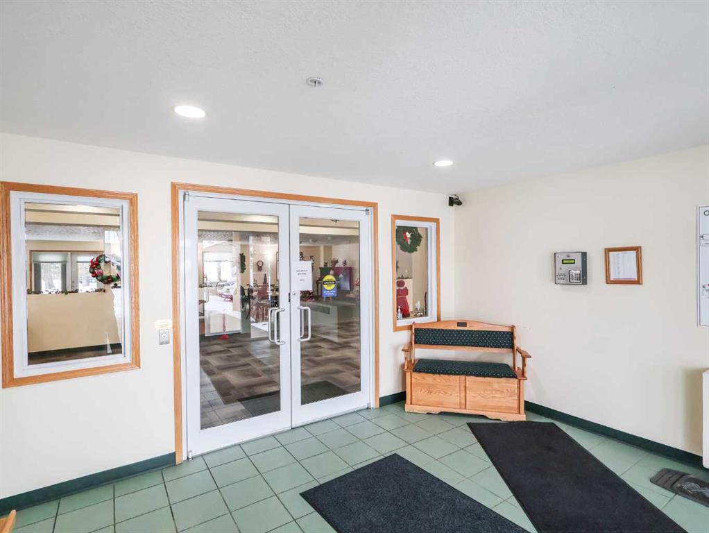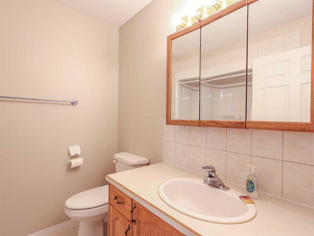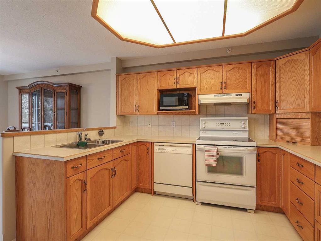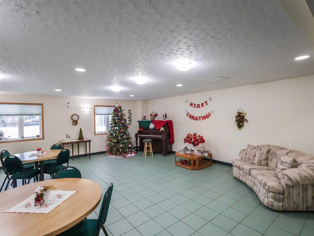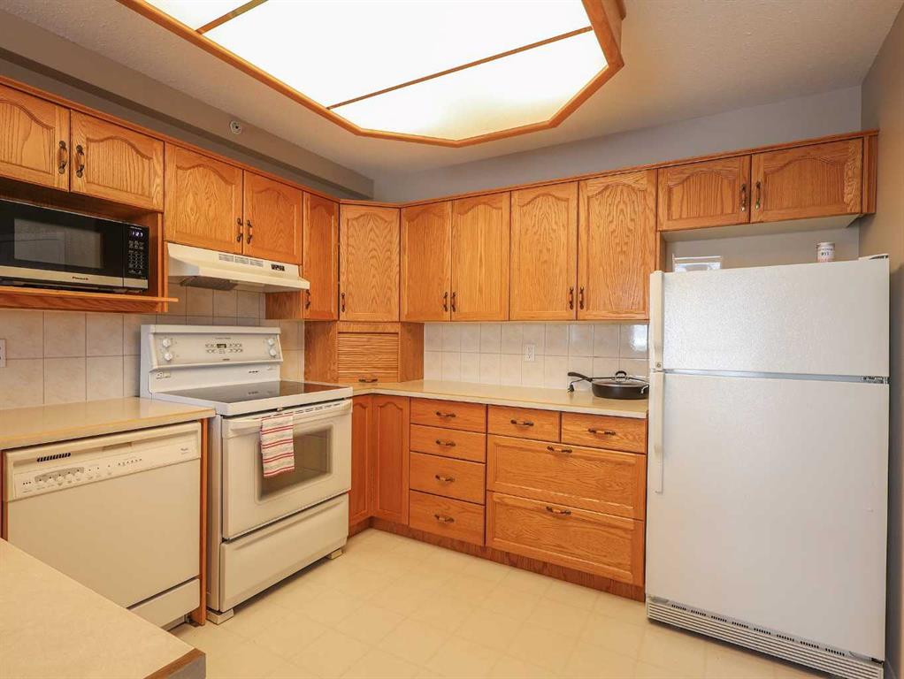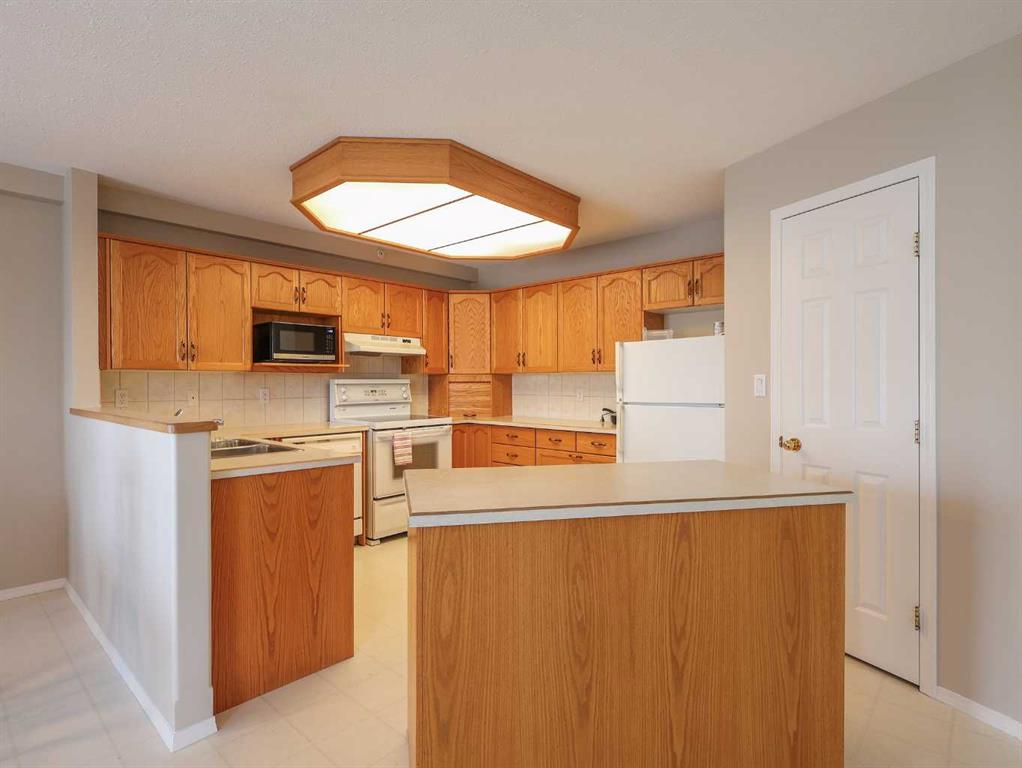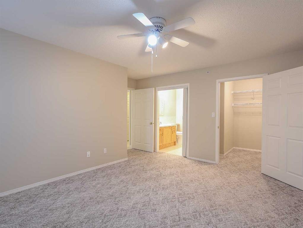 If you are looking to simplify your lifestyle, this well-maintained adult living condo in Stettler may be the perfect fit. Located on the third floor of a desirable complex and just four blocks from downtown shopping and amenities, this home offers both comfort and convenience. The open-concept design is filled with natural light from large windows and features bright white doors and trim throughout, complemented by a neutral color palette that provides a fresh backdrop for personal style. The heart of the home is the combined kitchen, dining, and living area, creating an inviting space for everyday living and entertaining. The kitchen offers oak cabinetry, a corner pantry, and ample counter space. The spacious living room is carpeted and includes a ceiling fan for added comfort, while the dining area features patio doors leading to a balcony, an ideal spot to relax. The primary bedroom is generous in size and includes a large walk-in closet and a three-piece ensuite with a walk-in shower. A second bedroom is perfect for guests, hobbies, or a home office, and a full four-piece bathroom adds convenience. Additional features include in-unit laundry with a stacked washer and dryer and a heated parking stall. This condo includes common areas for hosting family and friends, and access to an on-site exercise facility. This is a wonderful opportunity to enjoy low-maintenance living in a welcoming adult community.