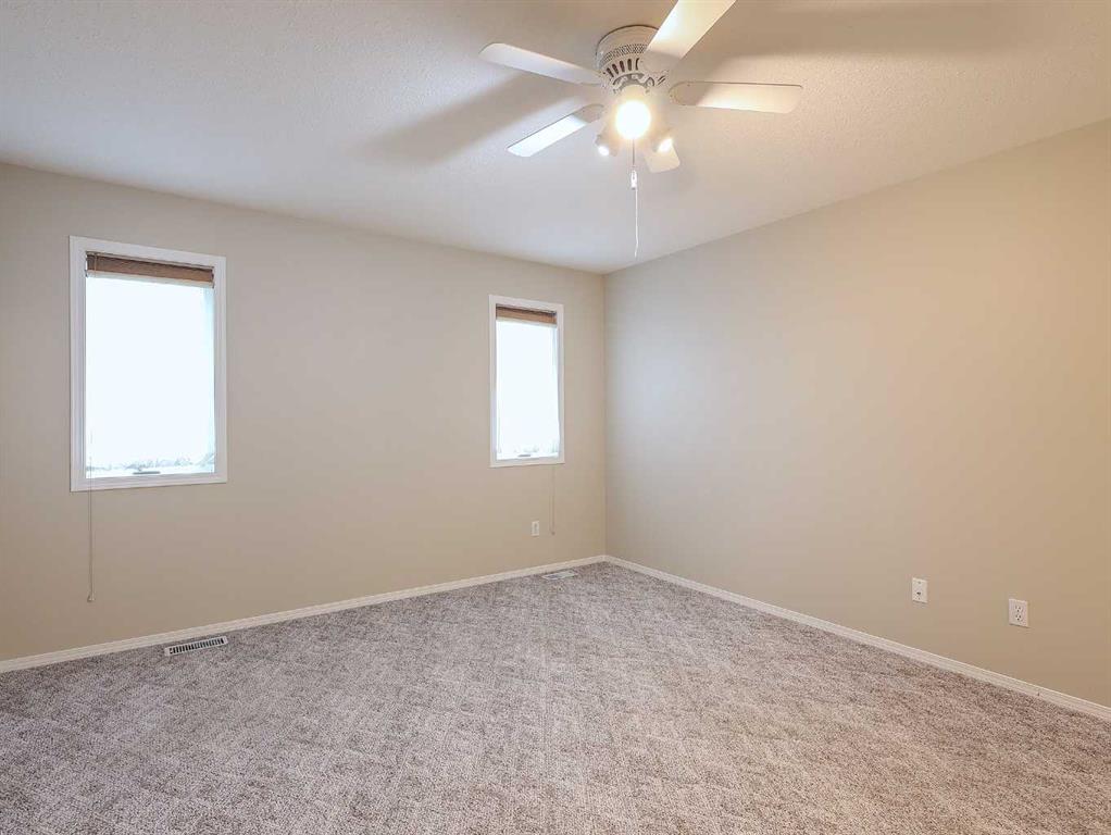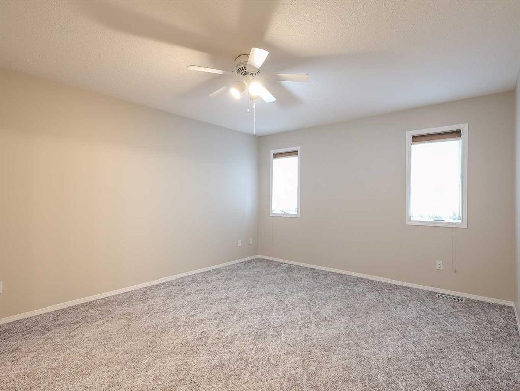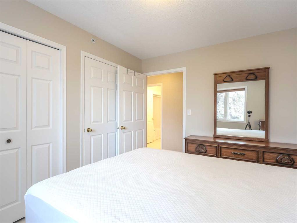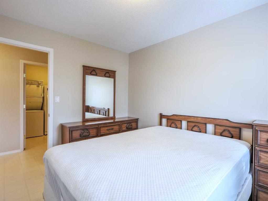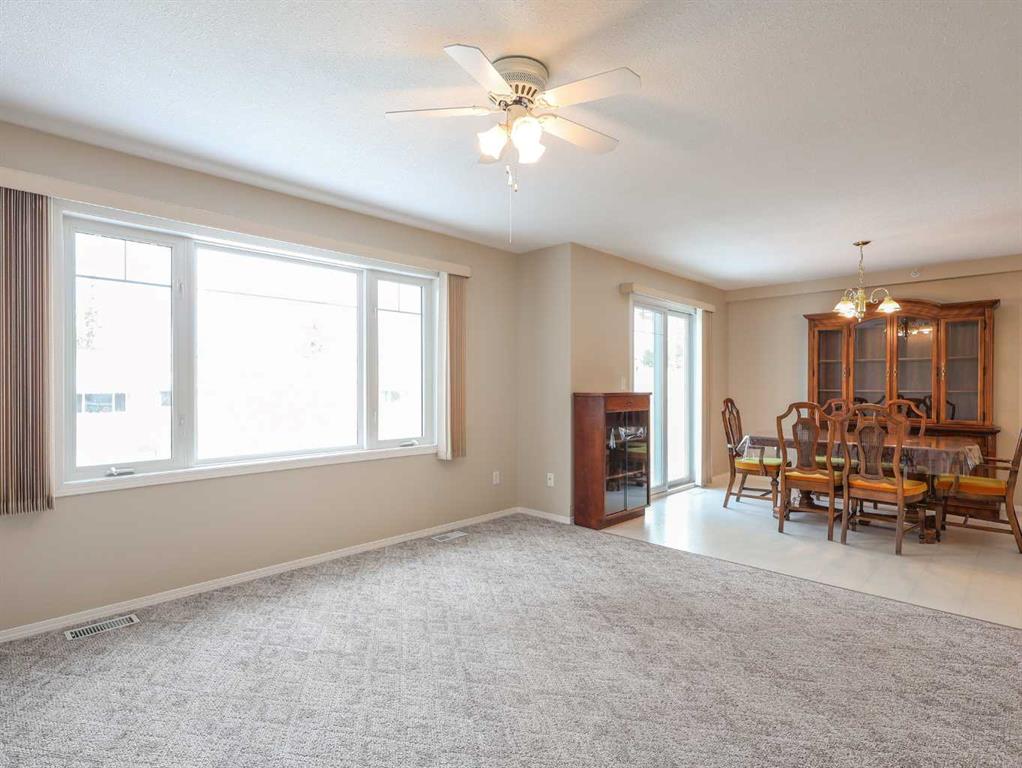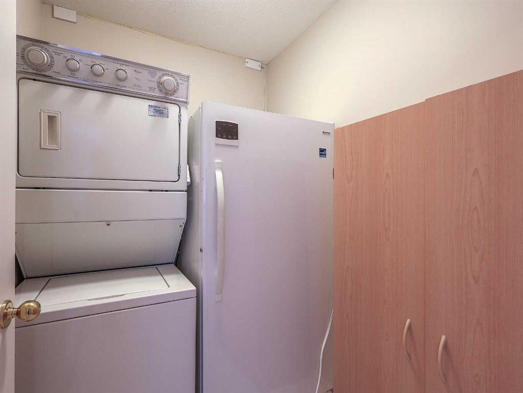 If you are looking to simplify your lifestyle, this well-maintained adult living condo in Stettler may be the perfect fit. Located on the third floor of a desirable complex and just four blocks from downtown shopping and amenities, this home offers both comfort and convenience. The open-concept design is filled with natural light from large windows and features bright white doors and trim throughout, complemented by a neutral color palette that provides a fresh backdrop for personal style. The heart of the home is the combined kitchen, dining, and living area, creating an inviting space for everyday living and entertaining. The kitchen offers oak cabinetry, a corner pantry, and ample counter space. The spacious living room is carpeted and includes a ceiling fan for added comfort, while the dining area features patio doors leading to a balcony, an ideal spot to relax. The primary bedroom is generous in size and includes a large walk-in closet and a three-piece ensuite with a walk-in shower. A second bedroom is perfect for guests, hobbies, or a home office, and a full four-piece bathroom adds convenience. Additional features include in-unit laundry with a stacked washer and dryer and a heated parking stall. This condo includes common areas for hosting family and friends, and access to an on-site exercise facility. This is a wonderful opportunity to enjoy low-maintenance living in a welcoming adult community.