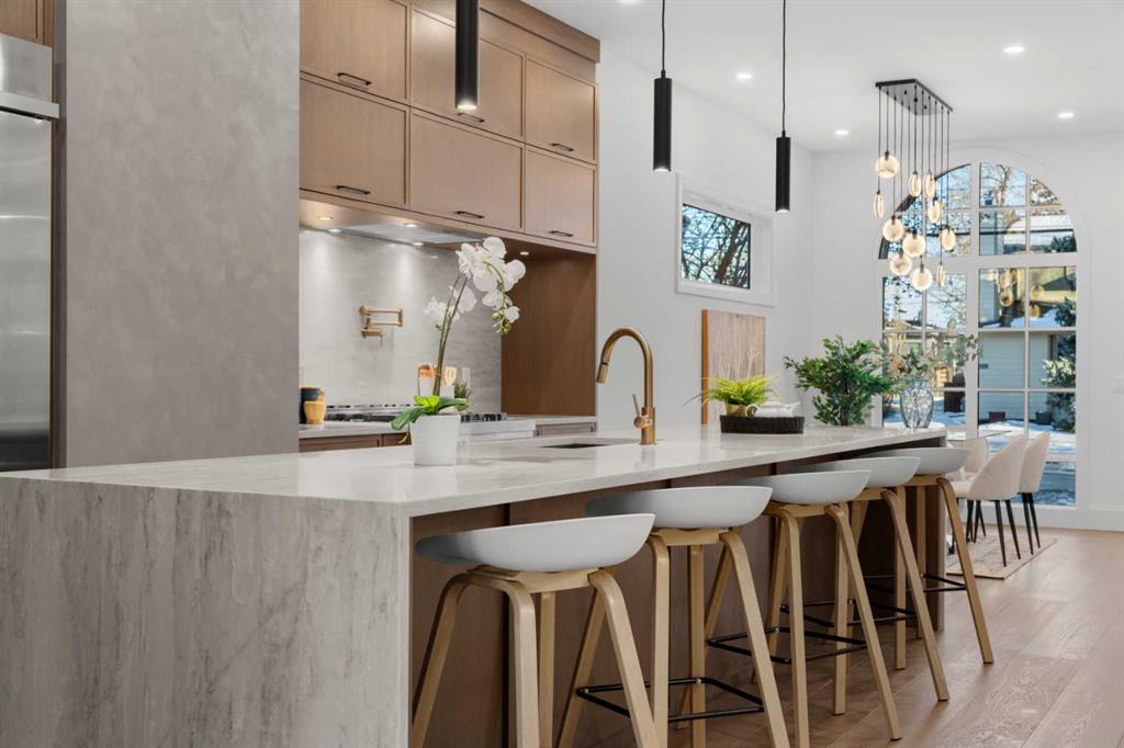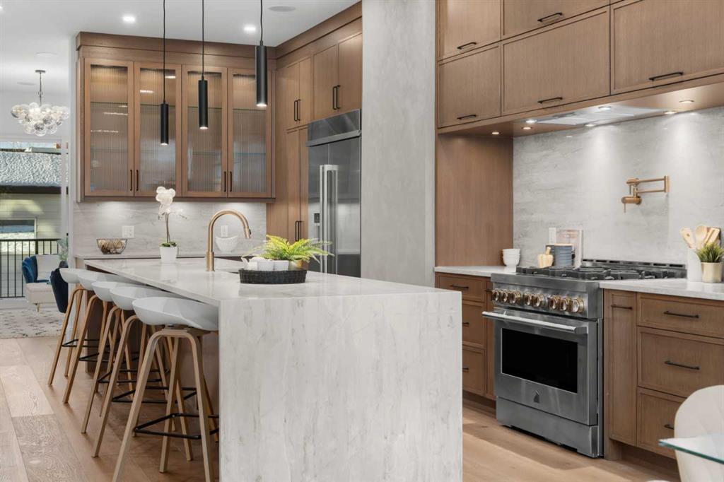 Welcome to 3917 19 Street SW, a beautifully finished detached two-storey home in the heart of Altadore. The main floor offers a spacious quartz kitchen island, sleek full-height cabinetry, and an open-concept flow directly into the living room—perfect for both entertaining and everyday family living. Upstairs features three bedrooms, including a wonderful primary suite with a spa-inspired ensuite showcasing a soaking tub and double vanity. The primary also includes its own walk-in closet. Two additional bedrooms and a full bathroom complete the upper level, along with conveniently located upstairs laundry. The fully finished basement includes a bedroom, full bathroom, and a wet bar, giving you flexible space for guests, a home office, or family use. Outside, enjoy a private backyard with no neighbours behind you, offering rare privacy in this highly sought-after area. The home is roughed-in for security, speakers, A/C, and more. The builder is also offering a $2,500 appliance credit that can be allocated toward a washer/dryer and bar fridge. Close to all the amenities Marda Loop has to offer, this home is perfect for families and professionals alike.