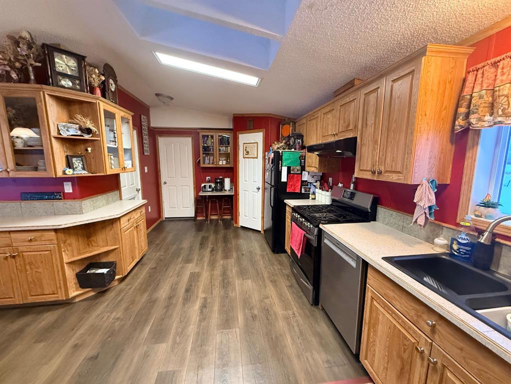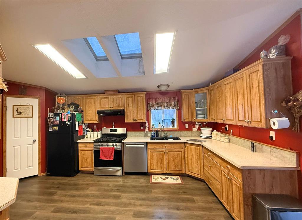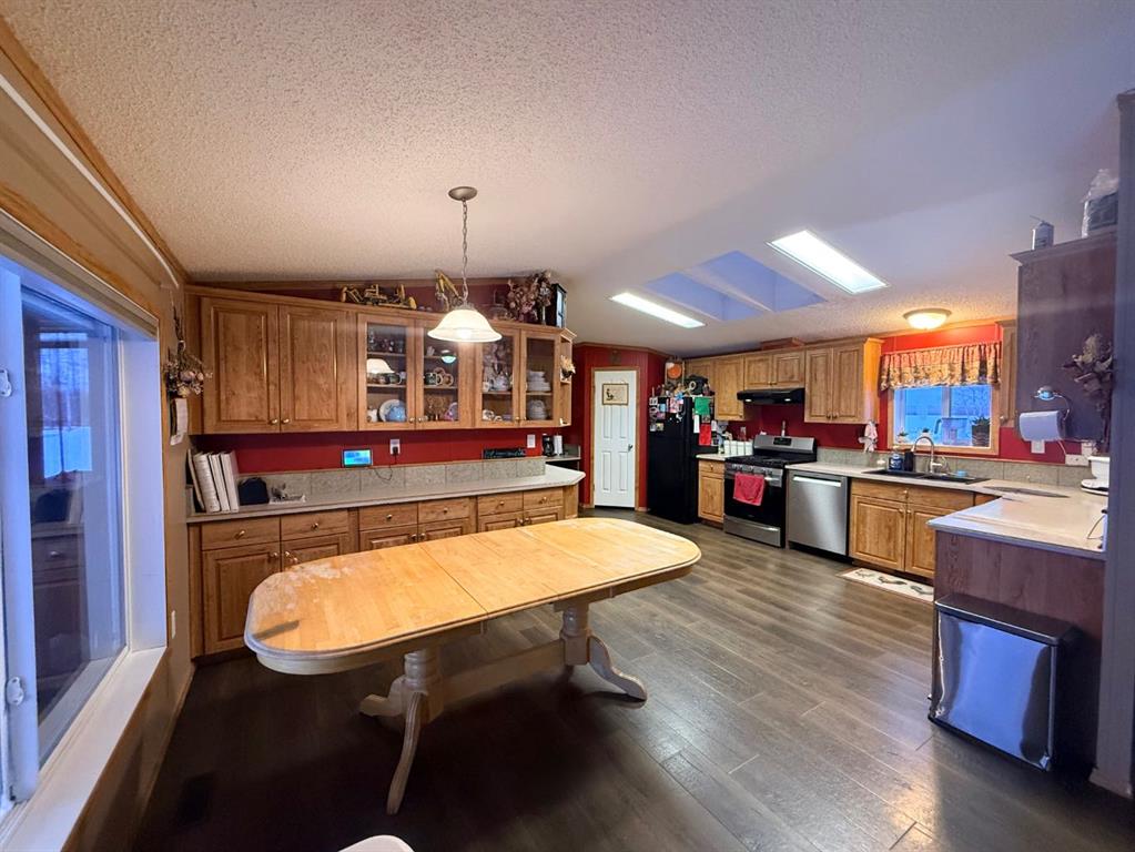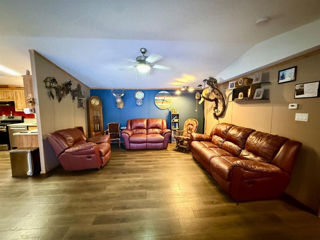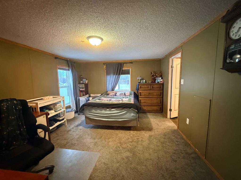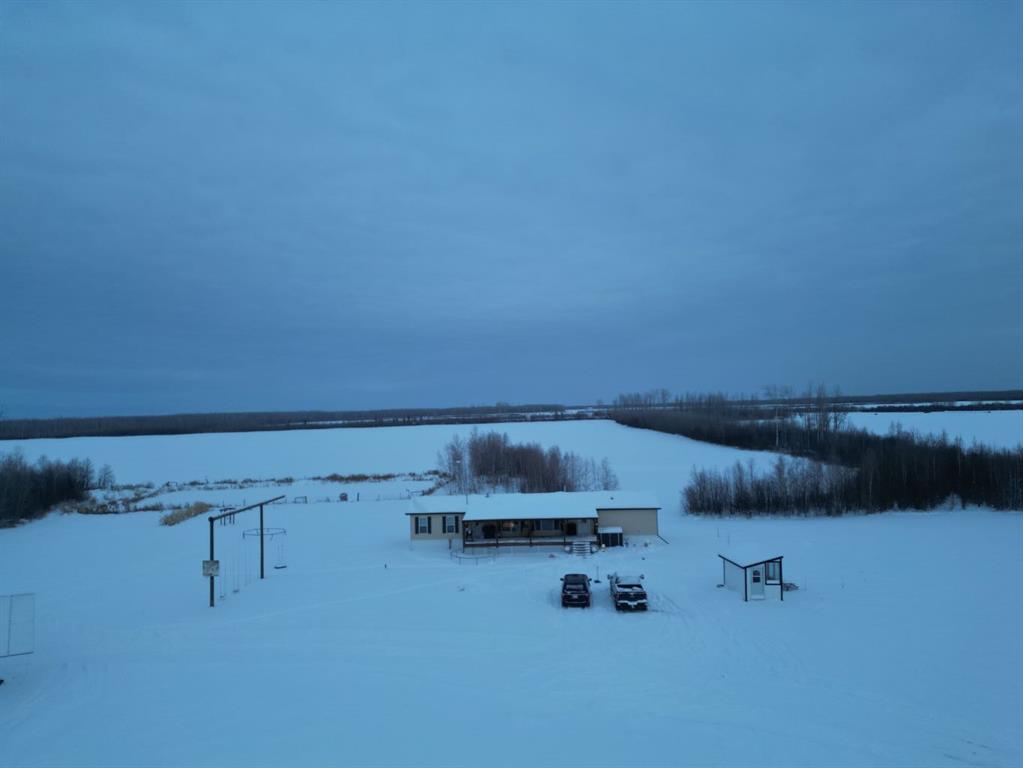 Welcome to this pristine 12-acre acreage located on a quiet dead-end road just 19 miles east of La Crete, offering excellent privacy with Crown land bordering the west side. The well-maintained 4-bedroom, 2-bath 20 wide home features a welcoming entrance and an open-concept kitchen, living, and dining area under vaulted ceilings. The kitchen offers ample cabinetry, and the bright, crisp interior reflects pride of ownership throughout. The primary bedroom includes a walk-in closet and ensuite, while three additional bedrooms are located at the front end of the home. A separate laundry room adds convenience, and home will come with all the appliances included! Outside, enjoy the 10’ x 40’ covered deck overlooking the established yard, garden space, mature perimeter trees, and a large fenced dugout. The property also includes a large heated shed and a 16’ x 20’ hip-roof shed, providing excellent storage and workspace. With plenty of room for a hobby farm or to enjoy the acreage lifestyle, this private and peaceful property is one you won’t want to miss. Come take a look today!