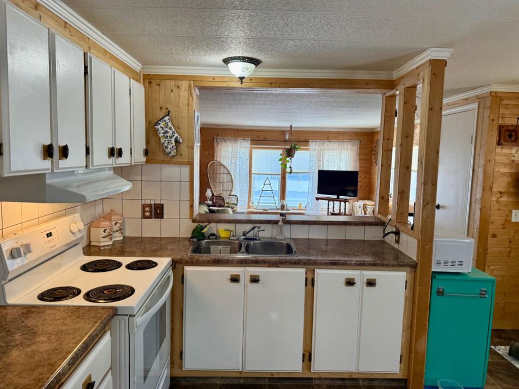 Welcome to this bright and inviting 2 bedroom manufactured home located in the well established Deer Meadows Mobile Home Park in Lac La Biche. Thoughtfully updated, this home features new windows, durable laminate flooring, and warm shiplap wood walls that add character and a cozy, modern feel throughout. The functional layout offers two comfortable bedrooms and a newly renovated bathroom, making it an ideal option for first-time buyers, downsizers, or anyone seeking affordable home ownership. Large windows and an open concept design allow natural light to fill the space, creating an airy and welcoming atmosphere. Situated on a leased lot, Deer Meadows is a professionally managed manufactured home community offering paved roads, green space, and a convenient location with easy access to local amenities. This is a great opportunity to own a move-in-ready home in a quiet, community oriented setting at an accessible price point.