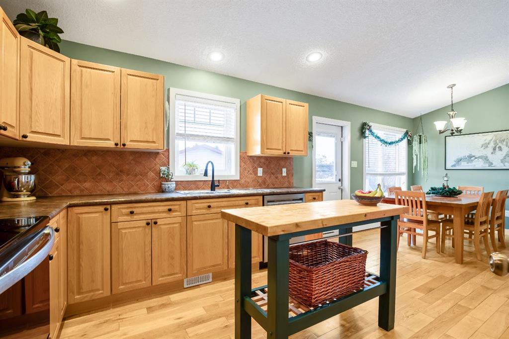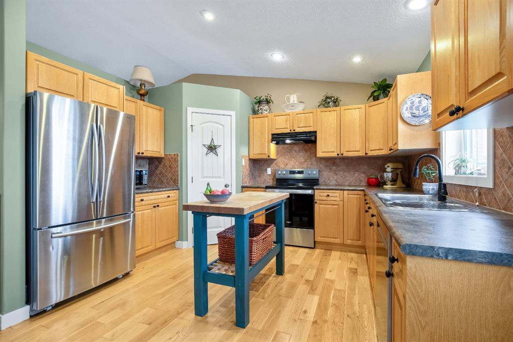 Oversized heated garage with 220V service, plus space to park an RV (and even a boat) beside the garage. This 2007 bungalow offers 2+2 bedrooms, 3 bathrooms, and a finished basement with a theatre room. The main floor is bright with vaulted ceilings and plenty of natural light, with an ensuite-style layout where the bedrooms are separated for privacy and each has access to its own bathroom. Enjoy an east-facing covered front veranda for mornings and a west-facing back yard for summer evenings. Finished basement includes two large bedrooms and a spacious bathroom with a walk-in shower. Newer appliances.