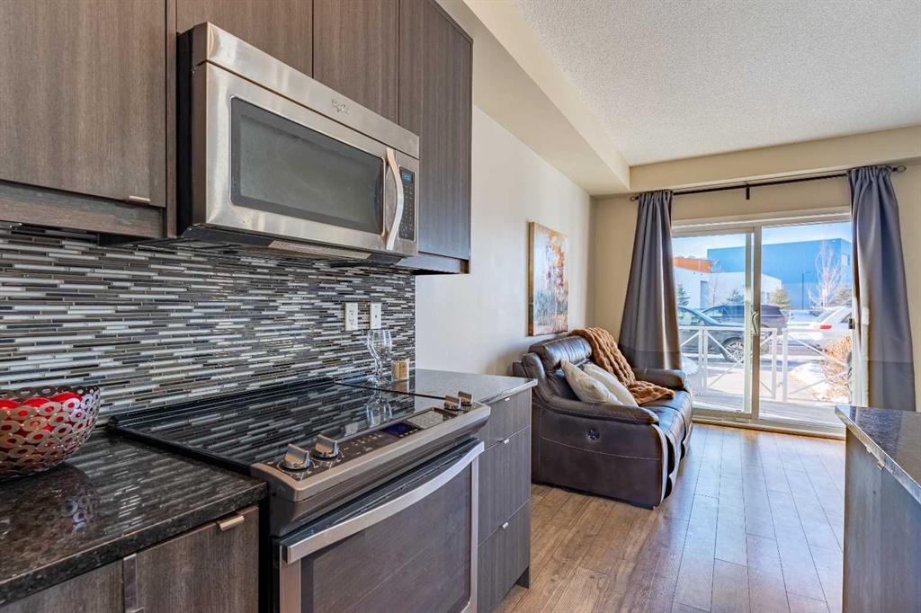 *** OPEN HOUSE SATURDAY JANUARY 31ST: 2:00 PM - 4:00 PM *** Experience the ultimate lakeside lifestyle in this stunning 2-bedroom, 1-bathroom main-floor condo located in the highly sought-after Ebony Apartments in Mahogany. This bright and functional residence is an exceptional opportunity for first-time buyers, downsizers, or investors looking for a home that perfectly balances comfort, value, and convenience. As you step inside, you are greeted by an inviting open-concept floor plan elevated by soaring 9-foot ceilings and flooded with natural light, creating a spacious atmosphere that is perfect for entertaining. The modern chef-inspired kitchen serves as the heart of the home, featuring full-height cabinetry, sleek granite countertops, and a stylish tile backsplash. The extended kitchen island offers additional seating and is highlighted by chic pendant lighting, all complemented by a full suite of premium stainless steel appliances. The airy living room flows seamlessly to a generous covered patio, which comes equipped with a BBQ gas hook-up, making it an ideal spot for year-round outdoor relaxation. Both the primary and secondary bedrooms provide flexible space for guests or a home office and share a well-appointed 4-piece bathroom. For added convenience, the unit includes an in-suite laundry room, dedicated storage space, and a titled parking stall, with plenty of visitor parking just steps from your door. Residents of Ebony enjoy exclusive access to incredible on-site amenities, including a private fitness center, bike storage, and a children’s playground. Living in Mahogany means more than just a beautiful home; it grants you unparalleled access to Calgary’s premier lake community where you can enjoy swimming, boating, and fishing. You are perfectly positioned just moments away from the Mahogany Village Market, offering a vibrant array of shopping, dining, and daily essentials. With quick access to transit and Stoney Trail, this low-maintenance home provides a seamless connection to the rest of the city while maintaining a tranquil resort-style feel. Don’t miss your chance to own in one of Calgary’s most desirable neighborhoods—book your private showing today and start living the lake life you’ve always dreamed of.