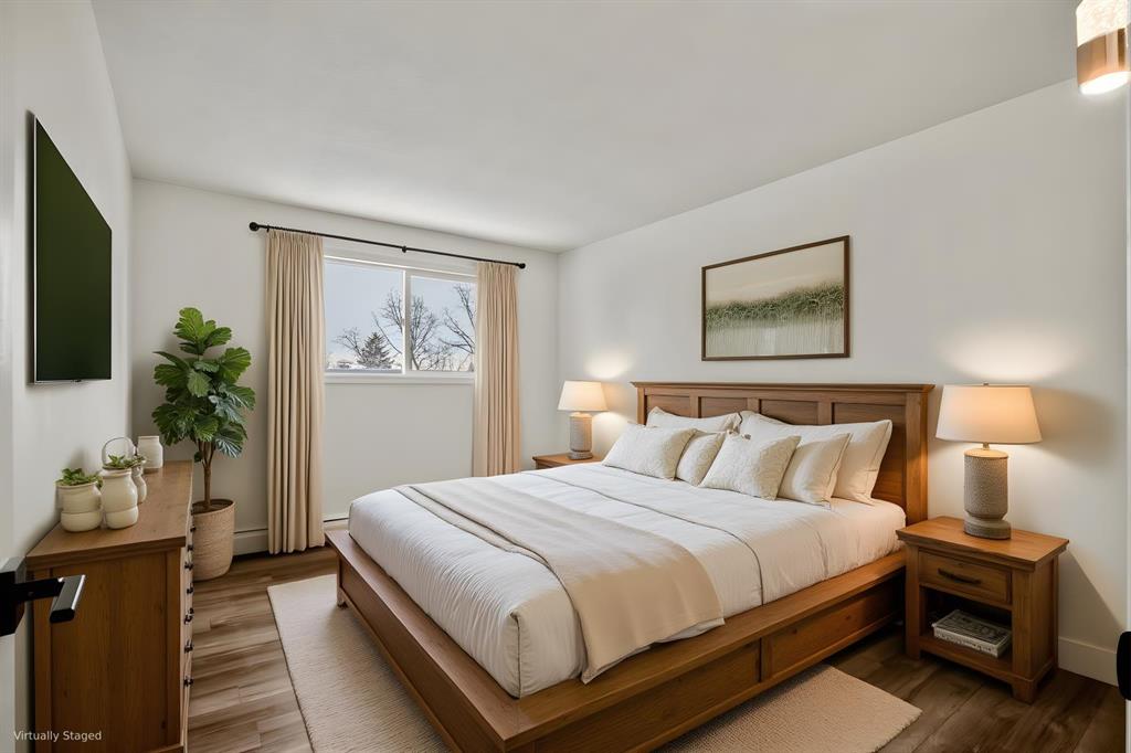Set on a quiet, tree-lined street just one block from downtown Nanton, this bright upper corner condo offers an easy, walkable lifestyle close to shops, cafés, the post office, pharmacy, library, and clinic. With 823 sq ft, the two-bedroom layout feels larger than expected. Natural light fills the living room, while the recently updated galley kitchen features newer appliances and finishes designed for everyday use. A dedicated storage room adds practical space rarely found in condos of this size. Step out from the dining area onto the private deck an ideal spot for morning coffee or unwinding in the evening. The small, well-kept eight-unit building includes a shared courtyard, BBQ patio, and laundry. An assigned parking stall with plug-in makes winter living simple. Pets are permitted with board approval. Quick possession is available, making this a smart option for first-time buyers, downsizers, or investors looking for low-maintenance living in the heart of Nanton.