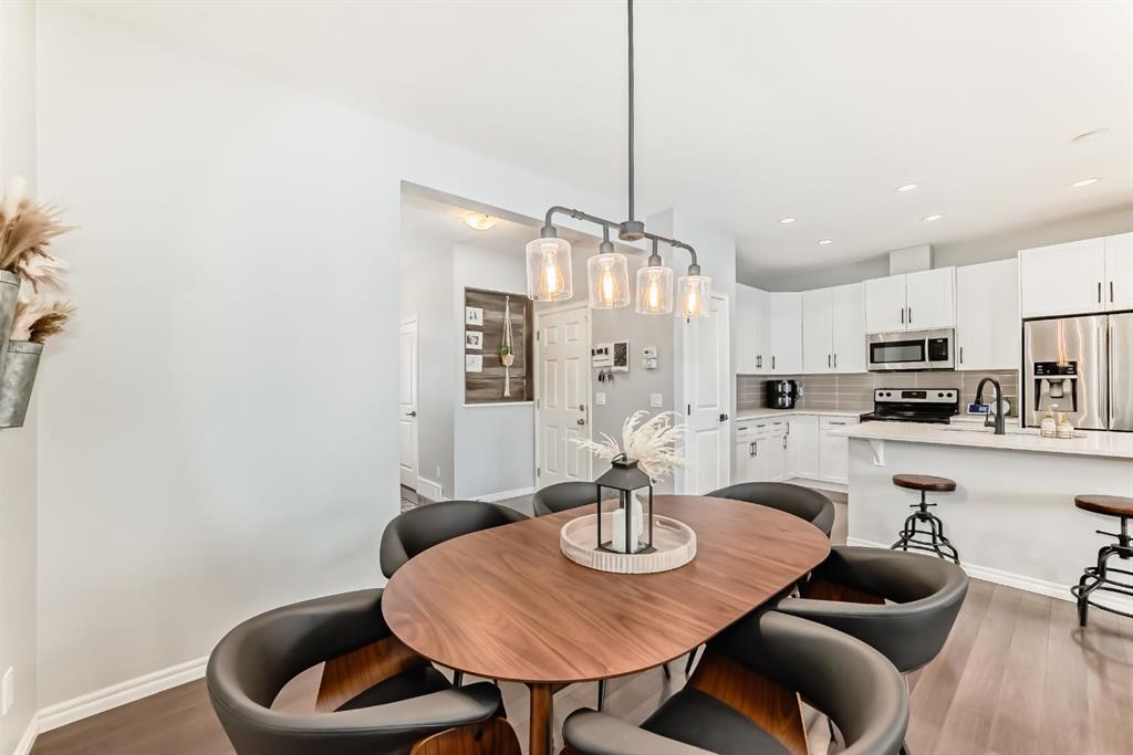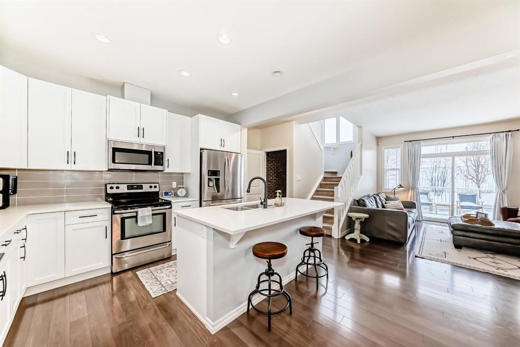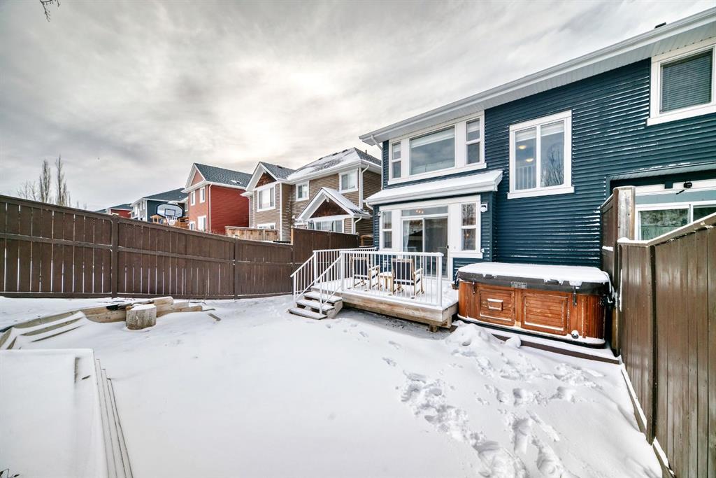 Welcome home to this exceptional semi-attached two-storey home located in the highly sought after community of River Song. This property is conveniently located walking distance to Bow Valley High School, kms of paths down to the Bow River, a quick drive into town over the Jack Tenant Bridge or out to the highway for great access to Calgary, Kananaskis and Banff National Park. This beautifully upgraded home includes an oversized single attached garage with storage and workshop area, large landscaped lot backing on green space and a HOT TUB! Inside you will find 4 bedrooms, 3.5 bathrooms and impressive 9’ ceilings on both the main and upper levels, ample space for the whole family! The modern kitchen offers stainless steel appliances, a tiled backsplash, white quartz countertops, a large centre island, and contemporary white cabinetry with storage, flowing seamlessly into the dining area and spacious living room highlighted by a natural gas fireplace with stacked stone surround, mantel and striking barn board feature wall to bring in plenty of warmth. The patio doors off the living room lead you to a fully landscaped, private backyard oasis ideal for outdoor entertaining. Including a hot tub where you can soak your worries away and a private fire pit area with paving stones and backing onto green space for ultimate peace and privacy. Upstairs, the generous primary retreat includes a walk-in closet and a 4-piece ensuite with double sinks, a large walk-in shower, alongside two additional bedrooms, a full 4-piece bathroom, convenient upper-level laundry, and a large bonus room with vaulted ceilings and views to the east. The newly developed basement showcases unique brick, barn board, and shiplap feature walls and includes a spacious recreation room perfect for guests, in-laws or the kids. You will also find the fourth bedroom and a 3-piece bathroom with in-floor heating! Book a showing today!