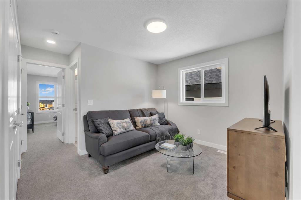 Welcome to this stunning, brand-new Alliston at Home build, where integrity and quality are never compromised. Offering over 1,600 sq. ft. of modern living space and beautiful finishes, this home strikes the perfect balance between elegance and everyday comfort. Step inside and be greeted by a bright, open-concept main floor with airy 9’ ceilings, stylish wide plank vinyl flooring and a colour palette that will please. Sunlight pours in through triple-pane windows, highlighting the spacious front living room and inviting dining area. At the heart of the home, the kitchen gleams with quartz countertops, sleek stainless steel appliances, ample 42” cabinetry, and a generous island that’s just waiting for weekend brunches and lively gatherings. A handy nook, dedicated pantry, mudroom, and powder room make daily routines a breeze. Upstairs, a serene primary suite will be your favourite retreat, welcoming you with a walk-in closet and a private en-suite. A central loft offers a cozy corner to unwind, providing separation from the two additional bedrooms. A full bathroom and a convenient upstairs laundry room keep everything beautifully organized and comfortable. The unfinished basement, with its 9-foot ceilings and private side entrance, is a blank canvas brimming with possibility. Out back, the sunny west-facing yard is ready for your personal touch, and with the option to build your dream garage, you can create the perfect outdoor oasis. Tucked away in Iron Landing, one of Crossfield’s best-kept secrets, this community blends small-town charm with easy access to the highway, nearby schools, and parks. Head to Stacks and grab your morning coffee, enjoy lunch at Shortys Fish and Chips, treat yourself to a donut man donut, then go work it all off at Crossfield Fitness, Spin or Yoga. Life moves a little slower in Crossfield, and new homes offer significant value. This is where new memories are waiting to be made, and it is a great place to call home.