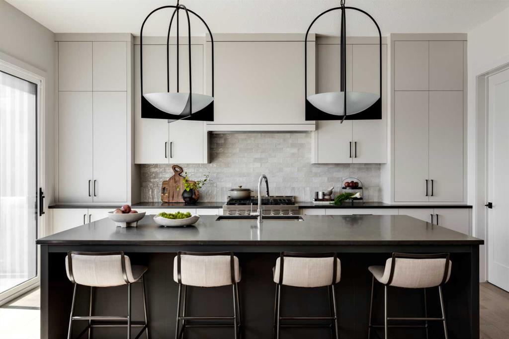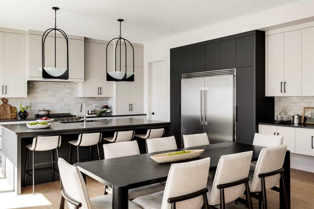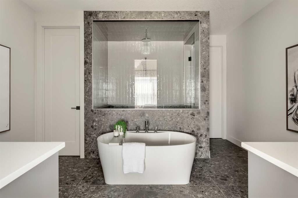 Welcome Home to Lupi Luxury Homes 8 Rockcliff Hill NW, this distinguished residence epitomizes the pinnacle of luxurious living. 4 oversized bedrooms each with their own ensuites and walk-in closets. This lovely home seamlessly integrates with its surroundings through a thoughtfully designed layout, boasting 6 bedrooms and 6 bathrooms. A standout feature is the 3-car garage with ceiling heights to accommodate a car lift. As you step inside, a wealth of high-end amenities unfolds, illuminated by natural light streaming through triple-pane Loe2 windows. The gourmet kitchen, with rich white cabinetry to the 10’ ceiling and darker oversized island, showcases a built-in stainless steel, double fridge / freezer and upgraded gas range, dishwasher, microwave, hood fan, bar fridge, creating a culinary haven for residents and guests. Elevating the living experience, the residence boasts large deck off the professionally landscaped oversized back yard. A captivating stone fireplace becomes a central focus, infusing the space with warmth and inviting ambiance. The master ensuite is a true retreat, featuring a curb less walk in shower, soaker tub and his and hers vanity sinks and a large walk-in closet. Technological sophistication with a security system includes, and various powered window coverings. The home is adorned with exposed aggregate concrete, a high-end double furnace system with two air conditioning units included, ensures year-round comfort. Elegance permeates every corner, from an exquisite butler's pantry to wide plank hardwood flooring, custom-built lockers. Main floor bedroom or den indulges with bulkhead ceiling detail adding a touch of opulence, while having private access to the 3-piece main floor bathroom. The lower development reveals a 6th bedroom, 6th bathroom and a large rec room and media area. Plenty of storage in utility and storage rooms. An elegant open staircase at the foyer, adorned with oakl spindles and an oak rail, warmly welcomes residents and guests into this exceptional residence. Don't miss the opportunity to make this dream home yours. Schedule a showing today and immerse yourself in the unparalleled experience of refined living at 8 Rockcliff Hill NW