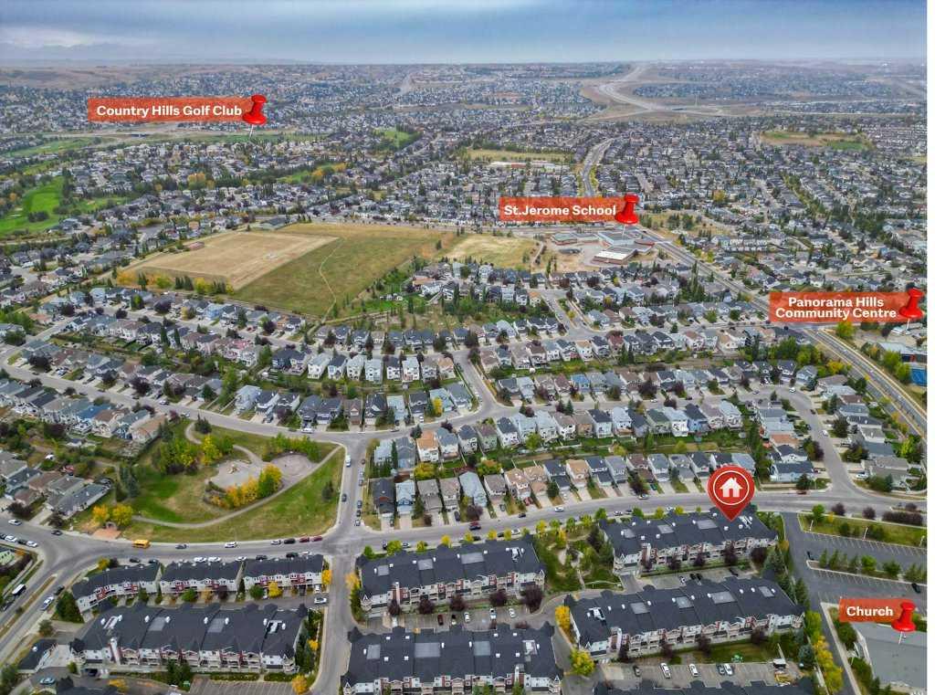 Welcome to this incredible main floor unit in the heart of Panorama Hills! Perfect for first-time homebuyers, empty nesters looking to downsize or investors. This home combines convenience, comfort, and accessibility. Featuring 2 spacious bedrooms, 2 full bathrooms, and in-suite laundry, this unit also offers a den/home office for those who require a dedicated workspace. There’s no carpeting in the condo, making it easy to maintain. Step inside to the immaculate kitchen with new refrigerator and new hood fan, ample cabinet storage, and a raised breakfast bar for casual dining. All walls were painted 2 years ago, and the light fixtures are new. The living room opens through glass sliding doors to a cozy patio with a BBQ gas line installed and complemented by new blinds. The primary bedroom includes a walk-in closet leading to a private ensuite, creating a relaxing retreat. A titled parking stall and storage locker are conveniently located on the heated underground secured parkade level. Situated in the established community of Panorama Hills, you’ll enjoy an unbeatable location with shopping, restaurants, groceries, movie theater, schools, public transit, recreation centers, parks, ponds and even a golf course—all just minutes away. Don’t miss the opportunity to make this wonderful condo your new home! Schedule your private tour today.