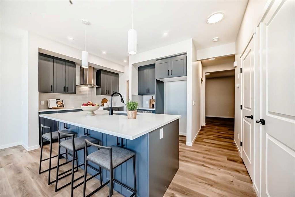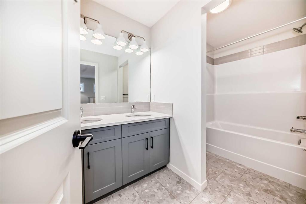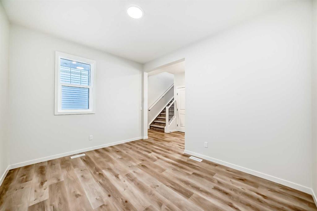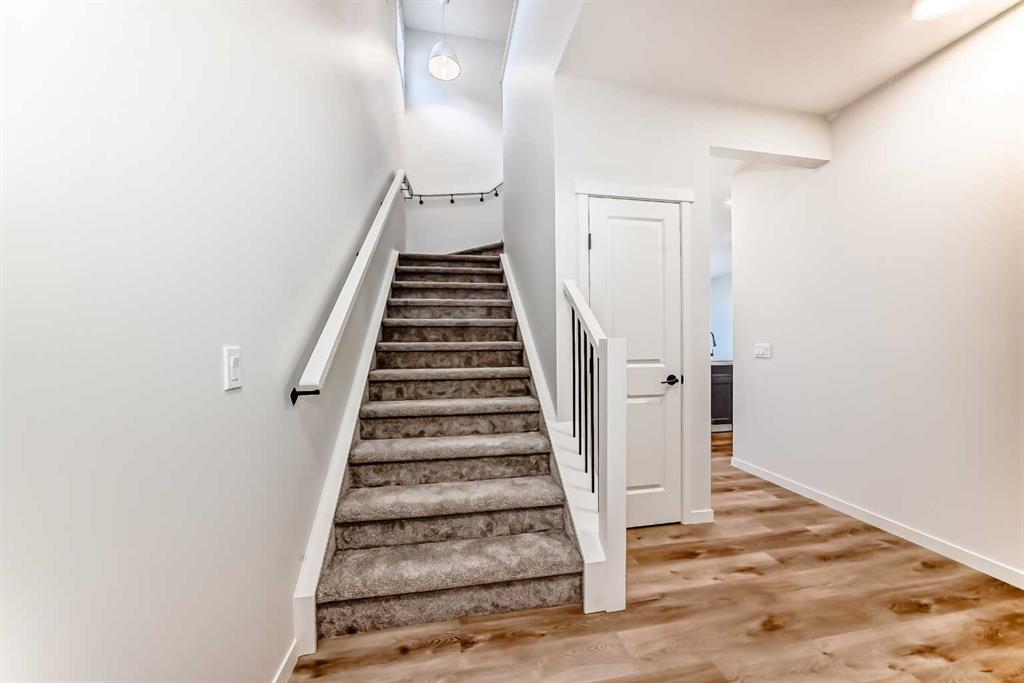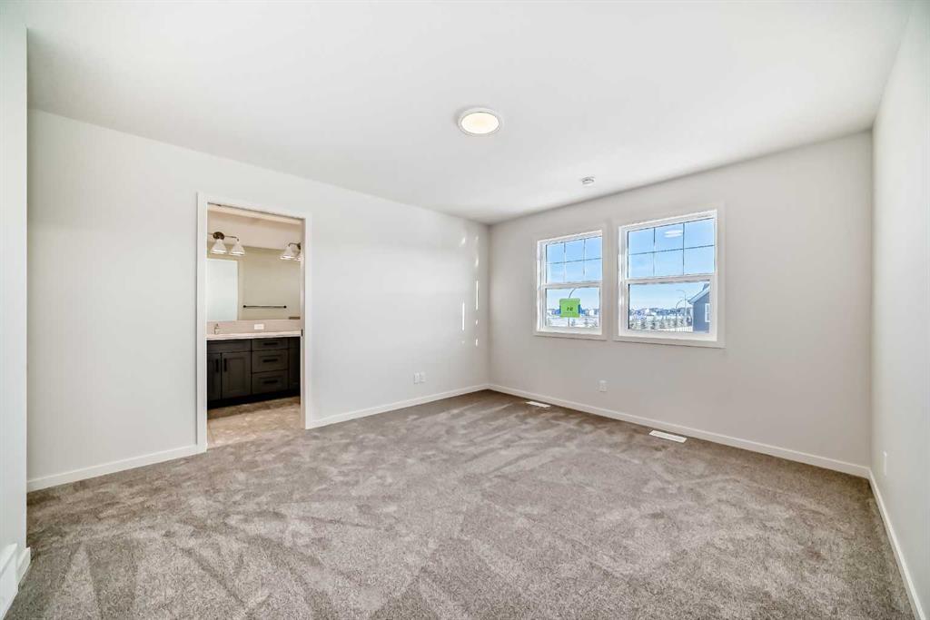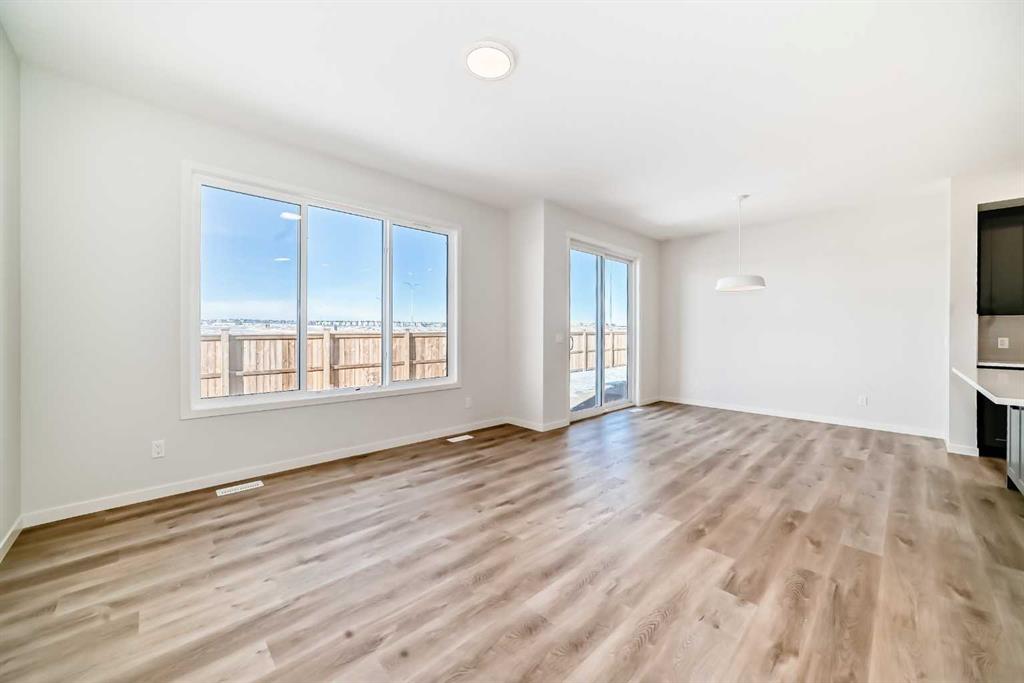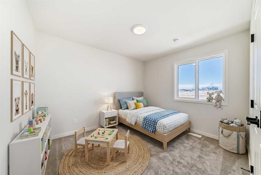 Welcome to the Kalara in Rangeview – a 4-bedroom family home where thoughtful design, modern finishes, and everyday comfort come together at an approachable price point. This beautifully crafted spec home is built for how families really live, offering a smart blend of functionality, flexibility, and style from top to bottom. The open-concept main floor creates a seamless flow between the kitchen, dining, and lifestyle areas—perfect for everything from casual weeknights to hosting friends and family. Large windows and a west-facing backyard flood the main living space with natural light all afternoon, giving the home a warm, inviting feel. Throughout the main floor you’ll find luxury vinyl plank flooring, providing a durable, low-maintenance surface that looks great and stands up to busy family life. At the heart of the home is a stylish, modern kitchen that truly shines. You’ll love the modern grey cabinetry paired with white quartz counters, a stacked subway tile backsplash, and black hardware that adds a clean, contemporary contrast. A sleek chimney-style hood fan, built-in microwave, and pot lights elevate the look and function, while the spacious island offers extra prep space and seating. The walk-in pantry keeps everything organized and close at hand, making meal prep and grocery storage a breeze. A main floor flex room adds valuable versatility—use it as a home office, study space, playroom, or hobby room depending on your needs. Upstairs, a centrally located loft provides even more flexibility, working perfectly as a cozy media area, kids’ hangout, or quiet reading space. The upper floor layout is designed with families in mind, featuring 4 bedrooms up plus the loft, so everyone has their own space. The primary suite is a relaxing retreat, complete with a generous walk-in closet and a gorgeous 5-piece ensuite with dual sinks, separate shower, and soaker tub. The kids’ wing is equally impressive, featuring a 5-piece main bathroom with double sinks—ideal for busy mornings and bedtime routines. Convenient upper floor laundry means no more hauling baskets up and down the stairs. Additional perks include a double front attached garage, providing ample parking and storage, and it’s roughed in for a future EV charger, making this home a smart choice for the future. The 9-foot foundation and separate side entrance offer excellent potential for future basement development (subject to city approval), whether you envision a guest suite, multi-generational space, or an income helper down the road. Located in Rangeview, Calgary’s first garden-to-table community, this home is part of a neighbourhood designed around connection, sustainability, and lifestyle. Enjoy parks, pathways, community gardens, and welcoming gathering spaces, all while being conveniently close to schools, shopping, and the South Health Campus. The Kalara offers the space, style, and community setting to support your family for years to come.