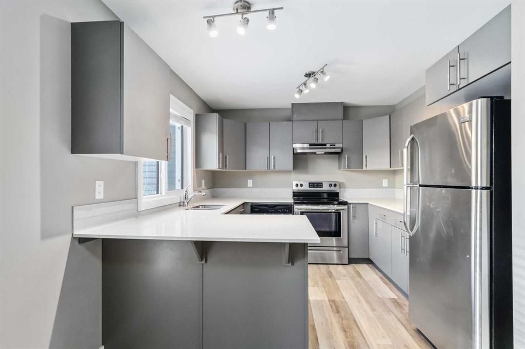 House perks with the ease of condo living. Welcome to Ravine Park. Greeted by a double parking pad AND a double garage. Living room has gas fireplace for those cold days and perfect family photos. KItchen is a bakers dream with granite counters , undermounted sinks, large windows and plenty of counter space. Garden doors off dining room with a BBQ gas line making this a great floor for family or entertaining, complete with 2 pc powder room. Second floor has the primary bedroom with ensuite and walk in closet. 2nd and 3rd bedrooms and another full bathroom complete this floor. Complex has a gym, parks and playground and backs on green space for trails. Walking distance to schools. Minutes to downtown, no wonder ABASAND is been voted the best neighbourhood yr after yr. This property is well priced and ready for your family to make it home!