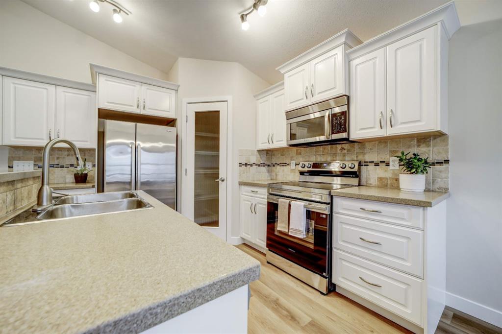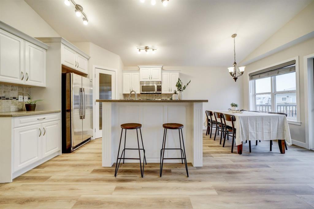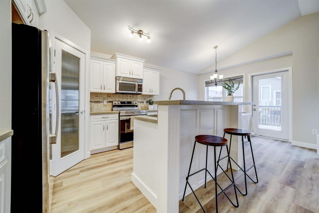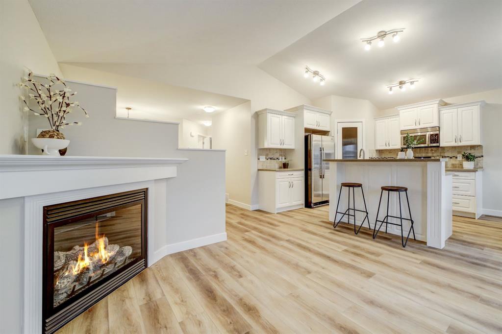 Step inside and feel right at home in this welcoming Coalhurst property, where natural light and thoughtful design create spaces you’ll actually enjoy living in. Vaulted ceilings and large windows make the main living area feel open and airy, while the gas fireplace adds a cozy touch for quiet evenings or casual get-togethers. The kitchen is both functional and inviting, with quartz countertops, a central island, a brand new dishwasher and stove, and a corner pantry that keeps everything within reach. Just off the dining area, step out onto the large back deck—perfect for summer meals, morning coffee, or keeping an eye on the kids and pets in the private, fenced backyard. The main level offers a spacious primary bedroom, one of the largest rooms in the house, with a bright walk-in closet and convenient cheater ensuite. A second main floor bedroom adds flexibility for kids, guests, or a home office. Downstairs, the large and light-filled family/recreation room offers plenty of space to unwind, play, or host movie/game nights. The basement is completed by a 4-piece bathroom and two more bright bedrooms with brand new carpet - perfect for older children, teens, or guests. A brand new sump pump, newer hot water tank (est. 2021), new vinyl plank flooring (upstairs), and high-efficiency furnace keep systems running smoothly and give peach of mind. With charming curb appeal and a quiet location close to the Coalhurst Elementary School and quick access to Lethbridge, this home offers a comfortable, connected lifestyle in a friendly community—one that’s easy to settle into and even easier to love.