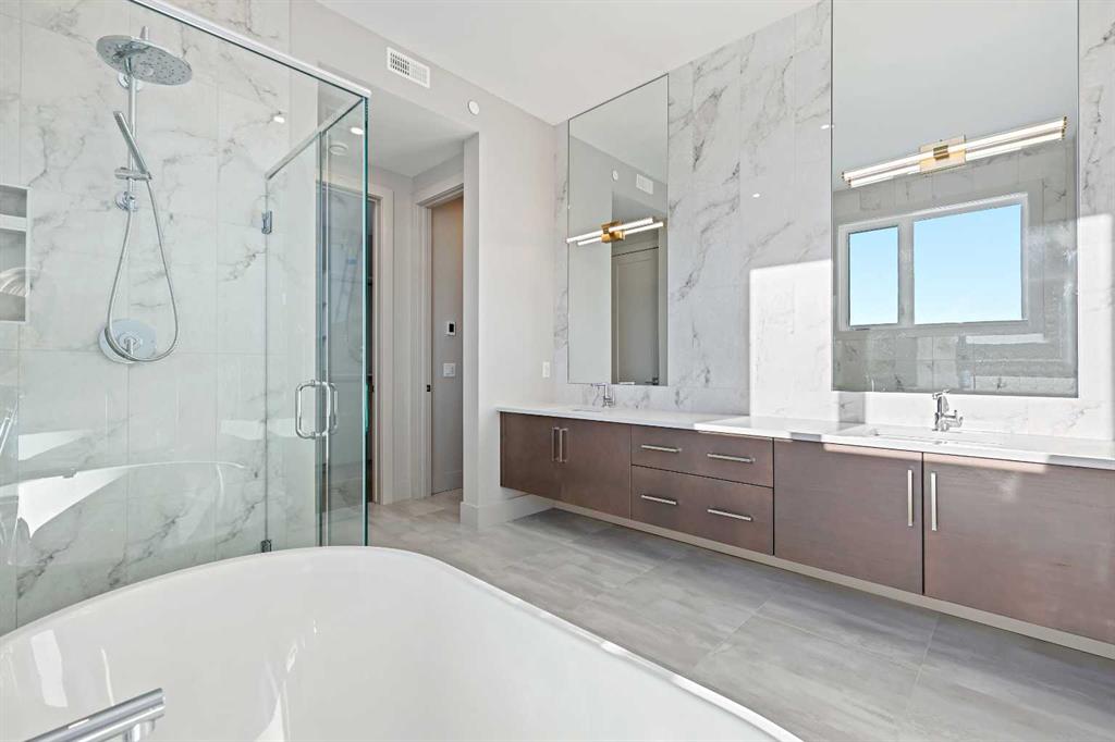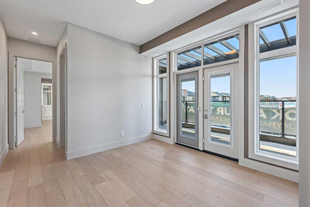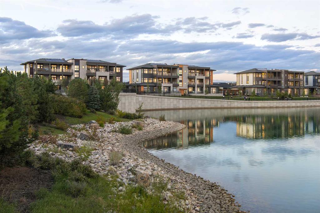 New Price Release — 10 Luxury Reflection Homes Just Completed, Ready for Immediate Occupancy! The Streams of Lake Mahogany present an elevated single-level penthouse lifestyle in our stunning Reflection Estate homes situated parkside on Mahogany Lake. Selected from the renowned Westman Village Community, you will discover THE SPRINGS, a home created for the most discerning buyer, offering a curated space to enjoy and appreciate the hand-selected luxury of a resort-style feel while providing you with a maintenance-free opportunity to lock and leave. Step into an expansive 2000+ builders sq ft stunning home overlooking the gorgeous Mahogany Lake featuring a thoughtfully designed open floor plan inviting an abundance of natural daylight with soaring 12-foot ceilings and floor to ceiling windows. The centralized living area, ideal for entertaining, offers a Built-in ULTRA JennAir appliance package with a 42” - 24.2 Cu Ft., Built-In, paneled, french door refrigerator with Obsidian black interior and built-in icemaker plus water with surround refrigerator Armoire Kit. Additionally, 24” cabinet panel ready dishwasher with stainless steel interior, 36” Professional-Style gas range top, Faber built-in cabinet hood fan, 30” combination wall oven plus microwave and Silhouette Emmental 24" Bev. Center; all nicely complemented by a Mountain Mist Elevated Colour Palette. All feature stunning Quartz countertops. You will enjoy two beautiful bedrooms and a generous central living area. The Primary Suite features a spacious 5-piece oasis-like ensuite with dual vanities, a large soaker tub, a stand-alone shower, and a generous walk-in closet. The Primary Suite and main living area step out to a 35 ft x 17 ft terrace with a lovely view of the stunning Lake. Yours to enjoy and soak in every single day. To complete the package, you have a sizeable office area adjacent to the spacious laundry room and powder room, which open onto another expansive 25ft terrace, and a double-attached heated garage with a full-width, length driveway. Custom additions to the home include under-cabinet lighting in the kitchen, A/C, a laundry room with a convenient folding counter, a coffee bar, an office space, and more. Jayman's standard inclusions feature their trademark Core Performance, which includes 4 Solar Panels used to power common spaces, Built Green Canada Standard with an Energuide rating, UVC Ultraviolet light air purification system, high-efficiency heat pump for air conditioning, forced air fan coil hydronic heating system, active heat recovery ventilator, Navien-brand tankless hot water heater, triple pane windows and smart home technology solutions. Enjoy Calgary’s largest lake, with 21 more acres of beach area than any other community.