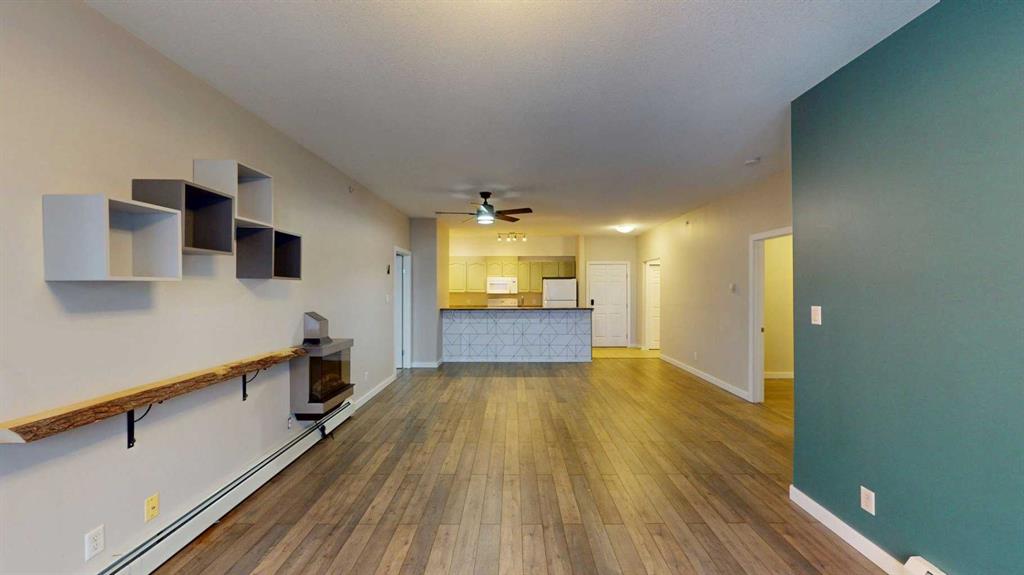 **Top-Floor Corner Unit Backing Onto Greenbelt – 2 Bedrooms + Den!** Discover this rare opportunity to own a spacious **1,100+ sq. ft. condo** featuring 2 bedrooms plus a versatile den. Perfectly positioned on the top floor corner, this home offers privacy, tranquility, and treed views from every window. **Bright & Functional Layout** – Bedrooms are thoughtfully separated by the main living area, with a den ideal for a home office. **Stylish Galley Kitchen** – Updated cabinetry, eat-up bar, and open sightlines to the dining and living room. **South-Facing Balcony** – Accessible from the primary suite, this sunlit retreat is surrounded by trees and perfect for relaxing. **Primary Bedroom** – Walk-through closet leads to a 4-piece ensuite. **Cozy Comforts** – Laminate flooring, fireplace, and in-suite laundry. Additional highlights include a **titled underground heated parking stall**, with extra surface stalls available for rent, and condo fees that conveniently cover heat and water. **Prime Location** – Nestled in one of the quietest buildings in town, backing onto a treed park, near a pond, walking trails, and just a short stroll to Stone Creek Landing and Save-On-Foods. **Available immediately – move in and enjoy the perfect blend of space, sunlight, and serenity!**