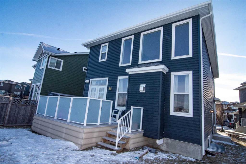 Welcome to this exceptional former show home in Redstone, perfectly positioned on a rare pie-shaped lot backing onto a walking path, open greenspace, and cricket pitch—offering privacy, space, and unbeatable outdoor views. Ideally located minutes from the upcoming Costco Plaza and Gurdwara Sahib, this home combines luxury living with future growth potential. Boasting over 3,100+ sq. ft. of developed living space, this thoughtfully designed home features open-to-below ceilings, an open-concept floor plan, and an abundance of natural light through large vinyl windows. The main floor is finished with elegant hardwood flooring and showcases a stunning living area highlighted by a floor-to-ceiling stone accent wall with an electric fireplace. The chef’s kitchen is a true showstopper, complete with ceiling-height cabinetry, granite countertops, gas cooktop, built-in stainless steel appliances, chimney hood fan, and a large centre island with seating for three. A walk-through pantry seamlessly connects the kitchen to the upgraded mudroom, featuring built-in shelving, hooks, and seating for everyday convenience. The dining area opens directly to an oversized deck, making indoor-outdoor entertaining effortless. Upstairs, you’ll find a bright bonus/family room overlooking the backyard and greenspace—perfect for relaxing evenings. The primary retreat, tucked away at the rear of the home for added privacy, offers a walk-in closet and a luxurious 5-piece ensuite with a deep soaker tub, glass shower, double vanity, and private water closet. Two additional spacious bedrooms, a full bathroom, and a convenient upper-level laundry room complete this level. Outside, enjoy a large backyard, oversized deck, and serene views with no direct rear neighbors. A front-attached double garage and extended driveway allow parking for up to four vehicles, with additional street parking available. This home offers style, space, functionality, and strong future value in one of NE Calgary’s most desirable and fast-growing communities. Book your private showing today—this Redstone gem won’t last!