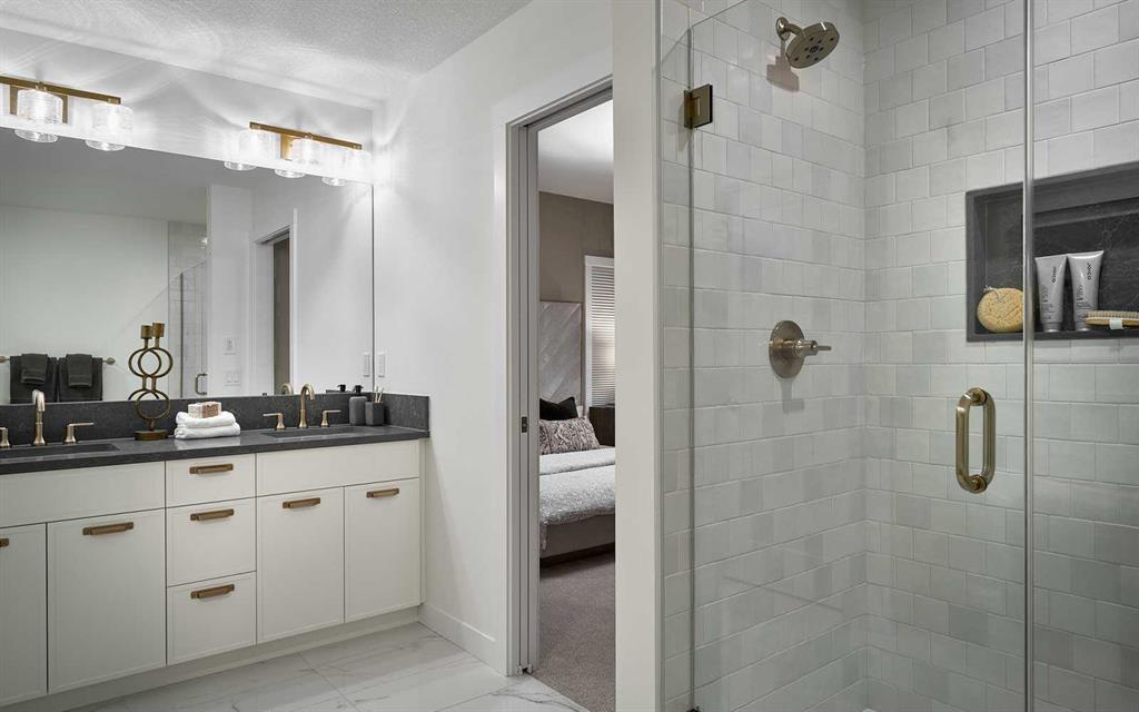This stunning, brand-new ‘Purcell 24’ with a Farmhouse elevation built by Brookfield Residential has a fully developed walkout basement! Featuring 4 bedrooms (3 up, 1 down), 3.5 bathrooms, 3 living areas, a home office space, and nearly 2,900 square feet of developed living space! The bright and open main level features 9' ceilings and an open concept living space that is ideal for entertaining. The gourmet kitchen is complete with a chimney hood fan, built-in cooktop, microwave and oven, and a large island with additional seating. The kitchen overlooks the living and dining areas with walls of windows overlooking the backyard. The main living space is complete with a central fireplace and the dining area has large patio doors that lead to the 250ft2 deck that spans the width of the home and is complete with a gas line. Open railing leads to the second level where you'll find a central bonus room that is perfect for a TV room. The bonus space separates the primary suite and secondary bedrooms, providing optimal privacy for daily living. The primary suite is at the front of the home with larger windows allowing for natural light and it is complete with a 5 pc ensuite including dual sinks, soaker tub, walk-in tiled shower and a private water closet - in addition to the large walk-in closet. Two more large bedrooms, a full bathroom, linen closet and laundry room completes the second level. The professionally developed walkout basement flows with the same finish as the rest of the home - ensuring a seamless look throughout. The basement has 9' ceilings and features a large rec room, games area, bedroom, full bathroom and storage room. Ideal for those looking for more space, this fully developed home has ample space for a growing family. Builder warranty and Alberta New Home Warranty included with this new home. *Please note: Photos are from a show home model and are not an exact representation of the property for sale.