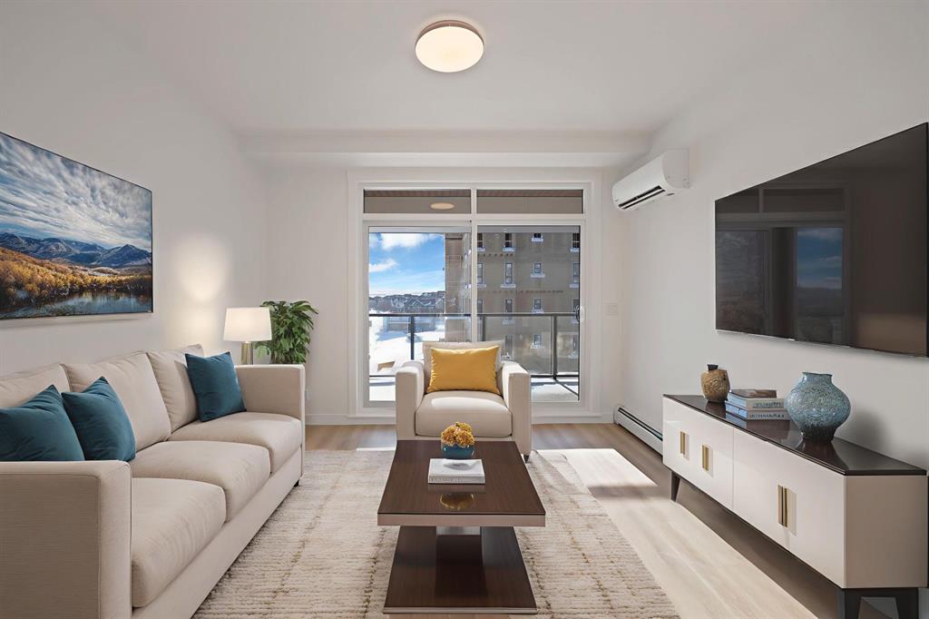 Price adjusted for a quick seller-Motivated Sellers!! Discover elevated waterfront living in the heart of Mahogany. This BRAND NEW well-appointed 2-bedroom, 2-bathroom JACKSONPORT-2 MODEL condo offers a thoughtful blend of contemporary finishes and functional design. The open-concept layout is filled with natural light from large windows, creating a bright and welcoming atmosphere throughout. Step outside to your balcony, complete with a gas BBQ hookup for those summer days. The home includes heated underground parking and a dedicated storage unit, while condo fees conveniently covers gas, water, and building maintenance for peace of mind. Located on 3rd floor to enjoy some views and steps from Calgary’s largest lake, residents enjoy access to beaches, walking and biking pathways, local cafés, restaurants, and a wide range of year-round recreational amenities. Combining comfort, convenience, and an exceptional community setting, this residence offers a lifestyle that feels both relaxed and connected.**virtual photos has been used for display purposes only**