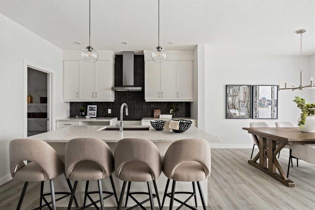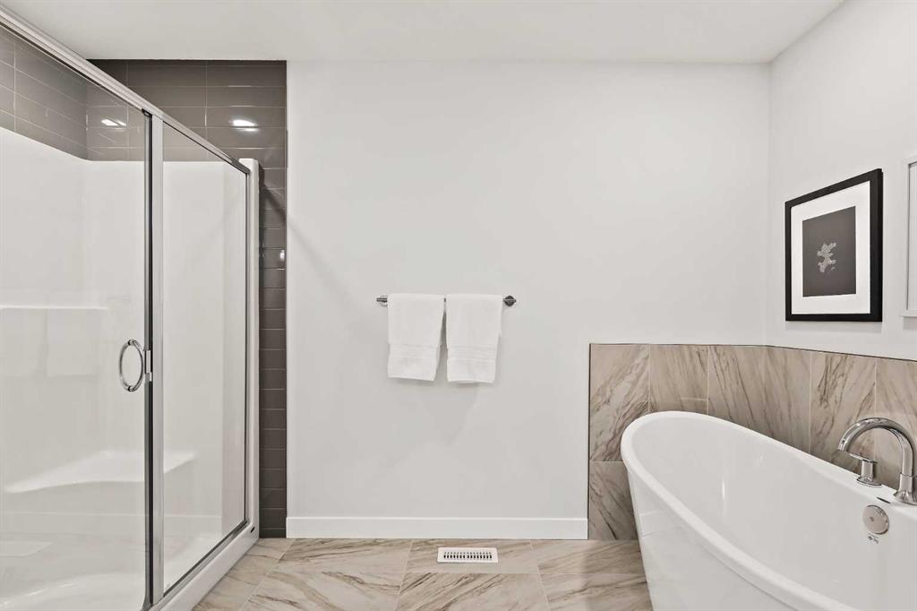 Welcome to 239 Creekstone Circle SW, featuring the exceptional Purcell 24 by Brookfield Residential - a thoughtfully designed home offering nearly 2,900 sq. ft. of living space across three fully developed levels, including a legal basement suite with a private entrance. Perfectly suited for growing families, multi-generational living, or savvy investors, this home delivers space, flexibility, and long-term value while providing the opportunity to offset monthly costs with rental income. This expansive layout includes three distinct living areas, a main-floor home office, five bedrooms (4 up, 1 down), and 3.5 bathrooms, making it ideal for families of virtually any size. The main level is anchored by a bright, open-concept design and features a large central den/flex space - perfect for a home office or study. The stunning kitchen is finished with timeless white cabinetry, a large central island with seating, and a convenient walk-through pantry connecting directly to the mudroom and garage, offering exceptional everyday functionality. The kitchen seamlessly flows into the spacious living and dining areas, creating an inviting space for entertaining and family gatherings. On the upper level, a generous central bonus room thoughtfully separates the primary retreat from the other three bedrooms. The primary suite is a true retreat, complete with a walk-in closet and a luxurious 5-piece ensuite featuring dual sinks, a soaker tub, and a walk-in shower. Three additional bedrooms, a full 5-piece bathroom with dual sinks, and a dedicated laundry space complete the upper level. The professionally developed basement hosts a fully legal one-bedroom suite, ideal for rental income, extended family, or guests - all with its own private side entrance for access. This brand-new home is fully move-in ready and showcases quality upgrades throughout. Both Builder Warranty and Alberta New Home Warranty are included, allowing you to purchase with confidence and peace of mind. Buy now and be settled in time to enjoy spring in your beautiful new home in Creekstone.