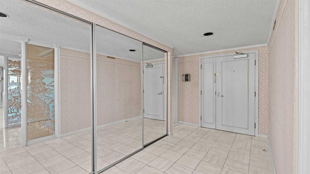 Experience refined urban living at EAU CLAIRE ESTATES, one of Calgary’s most prestigious luxury addresses. This exclusive, impeccably maintained building offers an ELEVATED LIFESTYLE with 24-hour concierge service, on-site management, a beautifully RENOVATED LOBBY, and lush, landscaped courtyards. Residents enjoy premium amenities including a private outdoor PUTTING GREEN, fully equipped FITNESS CENTRE, INDOOR SWIMMING pool, hot tub with change rooms, secure bike storage, and the rare convenience of an underground CAR WASH bay. With only two residences per floor, privacy and tranquility are paramount. This expansive 1,756 SQ.FT. two-bedroom, two-bathroom residence is perched on the 10th floor and showcases sweeping, UNOBSTRUCTED VIEWS through wall-to-wall windows—an outlook you’ll never grow tired of. Perfectly positioned just steps from the BOW RIVER, Prince’s Island Park, and Calgary’s extensive river pathway system, this location seamlessly blends nature with downtown convenience. Enjoy easy access to shopping, the Plus-15 network, and a short stroll to the iconic Peace Bridge, connecting you to Kensington’s vibrant cafés, boutiques, and dining scene. The home features a spacious, open layout and is ready for updates, presenting an exceptional opportunity to enhance and personalize the space. Even straightforward improvements—such as replacing the flooring, fresh paint throughout, and updated lighting fixtures—would make a dramatic difference, while a more comprehensive renovation could transform the unit into a truly spectacular, custom luxury retreat. A rare opportunity to design your dream home in one of Calgary’s most sought-after luxury buildings — this is Eau Claire living at its finest.