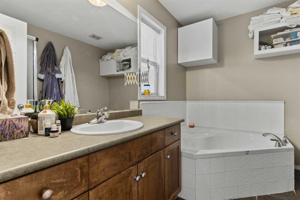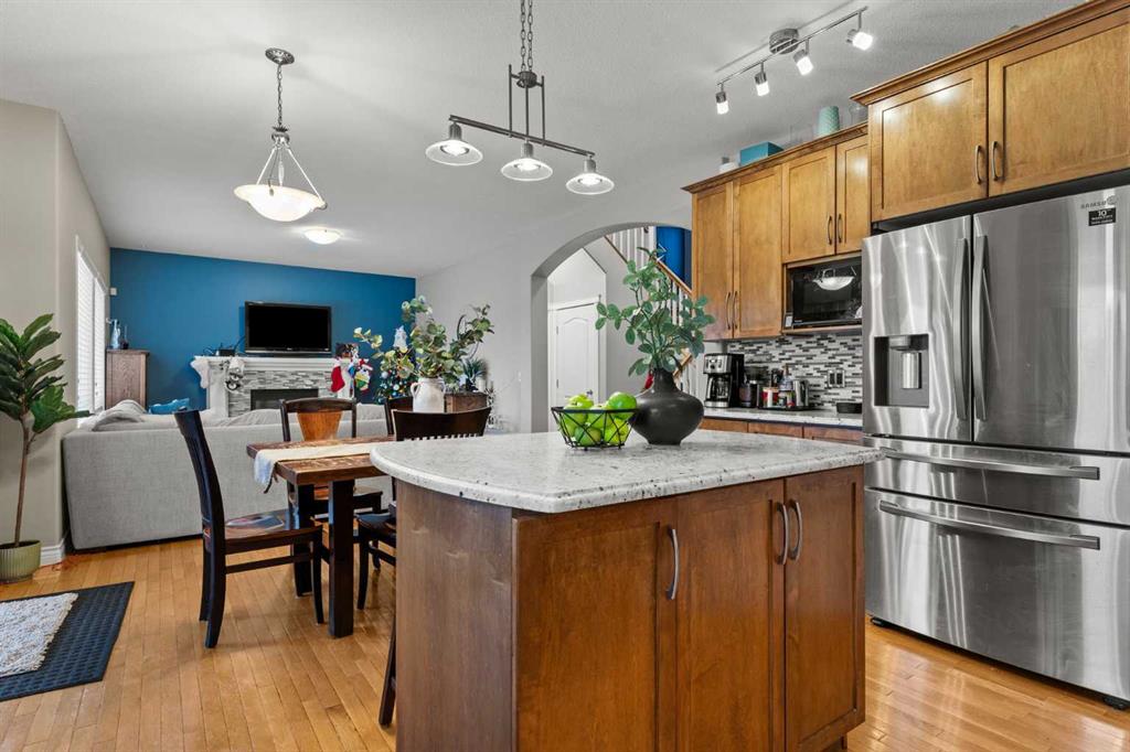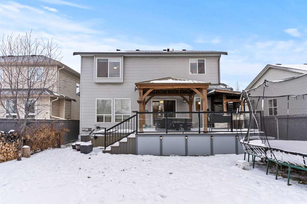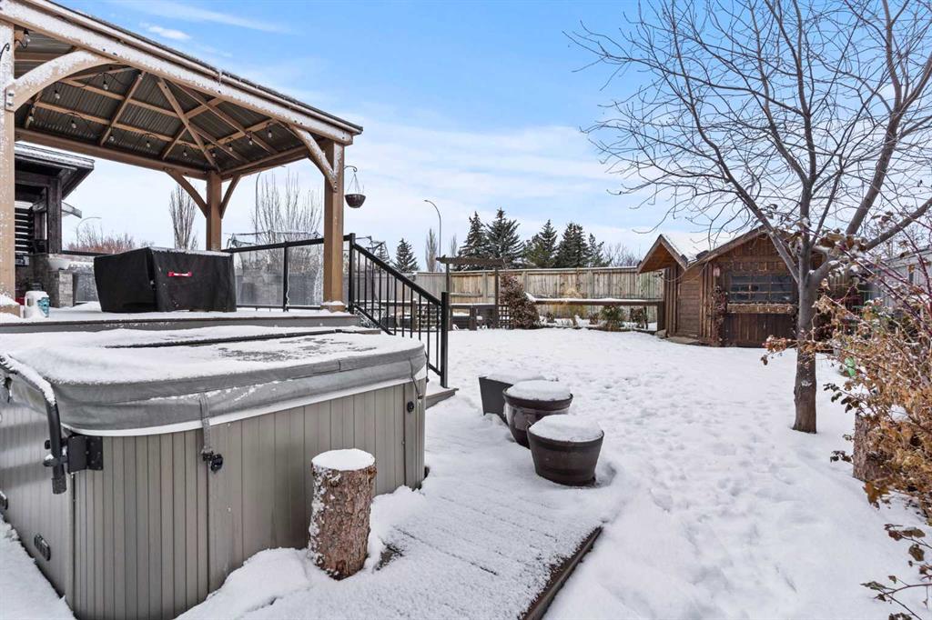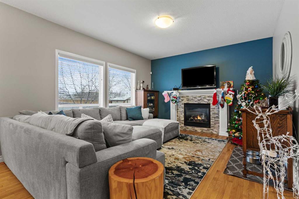 From the moment you step inside, this inviting property feels warm, welcoming, and thoughtfully designed for real life. An impressive foyer with soaring ceilings and an open-railing staircase sets the tone, while 9’ ceilings, cozy hardwood and tile, and a gas fireplace create that “exhale and stay awhile” feeling. The heart of the home is bright and open—perfect for family time and entertaining—featuring granite countertops, a walk-in pantry, a gas stove, and newer appliances. You’ll also love the main-floor office (ideal for working from home or homework central).Upstairs, the layout delivers: a generous primary suite with full ensuite and walk-in closet, two additional bedrooms with large closets, and a bonus room with high ceilings that’s made for movie nights and play space. Downstairs is fully finished with another fireplace, a large rec area, and two more bedrooms—giving you the flexibility families actually need. Outside, the west-facing backyard is a standout: a deck with pergola, outdoor cooking area, a custom shed, garden space, and plenty of room for kids and pets to run. Add central A/C plus a newer hot water tank and furnace, and you’ve got a place that’s as practical as it is inviting. Set in the sought-after Tri-Schools area—École Edwards Elementary, École Airdrie Middle, and George McDougall High School—plus Catholic school options nearby, close to shopping, parks, and pathways, public transit, and with quick highway access for an easy Calgary commute—this one checks the boxes without feeling cookie-cutter. This is the one you’ve been waiting for, book your showing today!