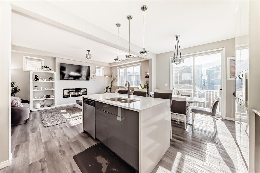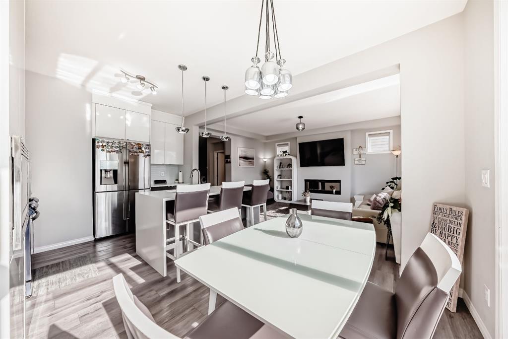 Public Remarks: Welcome to the desirable and sought after community of Carrington where this stunning and like-new, 2-storey Split level Dream home is sure to impress! Offering 3 + 1 beds, 3.5 baths, and a fully finished Legal Suite walk-up basement, this well-kept residence offers a perfect family environment! Walk up the foyer and enter the bright, open-concept main floor outfitted with beautiful wood vinyl flooring, walls painted with neutral tones that give that warm and homey vibe, and plenty of sunshine from the large windows. A fireplace, high-end light fittings around the living spaces. Central Air conditioning. The living room comes with an electric fireplace and is spacious enough to entertain a large number of guests on any occasion next to the dining area. Be inspired to cook delicious meals in the modern kitchen with gorgeous upgrades 2 tone, white and grey high gloss cabinetry adding brightness to the house accented by elegant drop pendant lighting, beautiful stainless steel kitchen appliances, and a quartz waterfall island. A garburator. Sliding doors in the dining area lead to a deck overlooking the large private fenced landscaped backyard. A 2pc powder room completes the main level. Upstairs, is a cozy great room ideal for any kind of recreational activities with the family, there's a bonus kids’ play area attached to this loft too! As well as an access to the balcony where you can set a table and some comfortable chairs to create a perfect corner to unwind during sunny afternoons. Your private space awaits in the massive primary bedroom featuring a walk-in closet and a spa-like 5 pc ensuite (with extra large soaking tub). There are 2 more good-sized bedrooms on this floor plus a convenient upper-level laundry room with counter top and cabinets. Plenty of windows on all levels provide natural light throughout. The fully finished LEGAL basement is well designed and has a separate Walk up entrance complete with a living room and a bedroom for extra income option, and a 4 pc bathroom, it comes with its laundry, washer plus dryer. 2 extra storage areas under the stairs. There's more space in the private landscaped yard with a deck for summer BBQs. So much space you can even set up a Gazebo Canopy perfect for hosting family and friends. Double attached garage that can house 2 cars and still has room for extra storage plus a full concrete driveway for extra parking. Located conveniently close to schools, transit, shopping, and all other amenities, this gem and rare find home provides all the elements for relaxing and comfortable living. Great value for this move-in-ready DREAM home in a terrific neighborhood! Call to book your appointment today! Listing realtor has interest in the property. * Refrigerator in Pictures is different. Brand new 2025 roof and some siding.