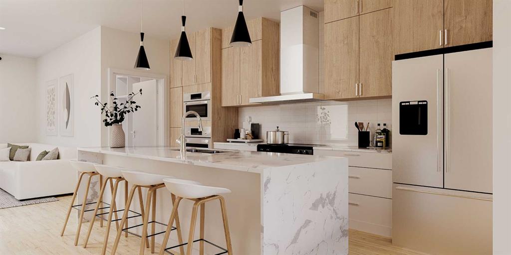 Closing in on builder completion, it could not be a better time to have a closer look a 1145 Sailfin Heath, located in StreetSide’s newest Harmony Development, Harmony Heath! Just a stroll away from the near-future village core, Nordic spa, and 140 acres between two lakes, this interior J.1 Floorplan home has a south-facing lot with a hardscape backyard for less maintenance. This home includes $16,350 of upgrades, including an upgraded Bosch appliance package with slide in gas range and French-door fridge, full heighfull-heightin oak + white dual tone, lockers in the rear mud room, upgraded tiles on the bathroom floors and en suite walk in shower, extra drawers in the main bathroom vanity, and AC rough-in. Standard features include carpet with 10lb underlay on the upper floor and stairs, LVP throughout the main floor, pendant lights over the island and chandelier in the dining room, Hardie Board siding, triple-pane windows, double-car garage, landscaping and fencing! With the mountains minutes west and the city at your back, you’re nestled in the heart of it all, offering that desired balanced lifestyle. Whether you want to hit the water for an early morning paddle, connect with your neighbours at community gatherings, rediscover nature at your doorstep or stroll through the soon-to-be village core boutique shops with a latte in hand. Lake living, mountain views, and unmatched amenities allow a complete lifestyle in Harmony. The well-thought-out J.1 Floorplan is expertly designed with you in mind, spanning 1683 sqft of living space across the upper two levels, including three beds + 2.5 baths, with the option to develop the basement later, offering a potential 781 sqft of recreational space. Please visit our brand new showhome at 1176 Sailfin Heath to find out more about owning this almost complete luxury townhome and choose a community that supports the balance you’ve always dreamed of. 10 minutes outside Calgary and 45 minutes to Canmore.