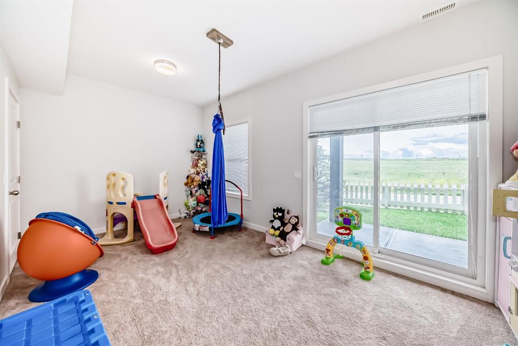Nestled in the serene community of Jumping Pound Ridge, this beautifully appointed 3-bedroom, 2 full bathroom, and 2 half bathroom townhome offers the perfect blend of modern comfort and surrounded by natural beauty. Spanning three levels, the home features MOUNTAIN VIEWS, no neighbours behind, oversized single attached garage and private driveway, ensuring ample parking. The ground floor welcomes you with a bright and versatile recreation room/home gym/guest bedroom/home office, generous storage space, and a convenient half bathroom. Upstairs, the open-concept second level is ideal for both everyday living and entertaining, showcasing a spacious soaring 10ft ceilings, updated white and bright kitchen featuring quartz countertops and tiled back splash, SS appliances, plenty of counter space with an eat up kitchen island, dining area, and inviting living room with beautiful views to the West. There are two decks to enjoy the sunshine and nature all day long! One is located off the kitchen, perfect access for outdoor cooking. The second large deck is just off the living room, enjoy the MOUNTAIN VIEWS to the west as well as your friendly neighbourhood cows roaming the serene field behind. The top floor hosts three comfortable bedrooms, including a primary suite with its own en-suite featuring a walk-in shower, while an additional full bathroom with a shower-tub combo serves the remaining bedrooms. The laundry room is conveniently located on the upper level. Set against the breathtaking backdrop of the foothills and overlooking the Mountains and the Jumping Pound Creek, this townhome offers a tranquil lifestyle, complete with a nearby playground for children and easy access to outdoor adventures including kms of walking paths leading down to the Bow River and Jumping Pound Creek.