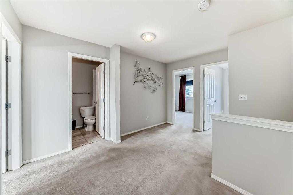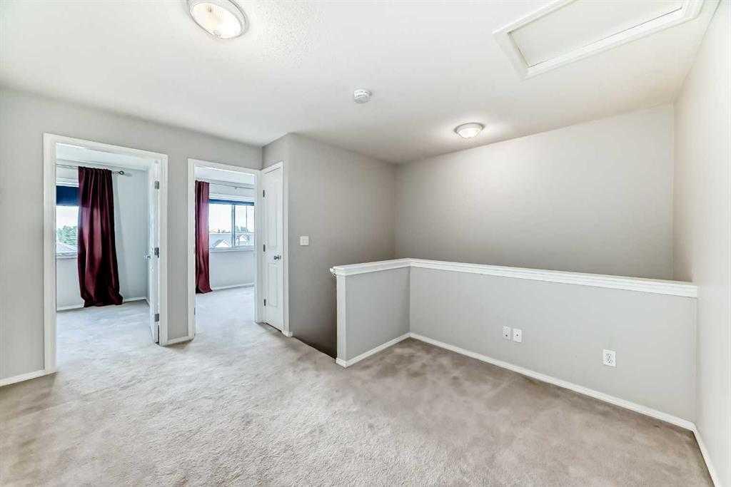 This beautifully maintained 2-storey townhouse offers over 1,200 sq ft of warm, welcoming living space at a price point that makes homeownership attainable—perfect for first-time buyers ready to stop renting or investors looking for strong value. Step inside to a bright, open layout filled with natural light from large windows and PATIO DOORS, creating an airy, inviting feel. The spacious living room is enhanced by BRAND NEW CARPET, a cozy GAS FIREPLACE, and a custom BUILT-IN WALL UNIT—ideal for relaxing evenings at home. The kitchen is thoughtfully designed for everyday living with AMPLE CABINETRY, full-sized appliances, and a breakfast bar that makes mornings and meal prep easy. A separate dining area provides the perfect space for family dinners, game nights, or entertaining friends. Upstairs, you’ll find three generous bedrooms, including a bright primary suite with a walk-in closet offering more space than expected and convenient Jack-and-Jill access to the 4-piece bathroom. A flexible LOFT-STYLE NOOK adds the perfect spot for a home office, reading area, or creative retreat. The unfinished basement is a blank canvas featuring laundry, WATER SOFTENER, rough-in plumbing for a FUTURE BATHROOM, and plenty of potential for added living space or storage. An ATTACHED SINGLE GARAGE plus full driveway pad ensure easy parking. Ideally located just steps from Airdrie’s pathways, Williamstown Nose Creek Nature Preserve, playgrounds, Airdrie BMX Park, Woodside Golf Course, shopping, and dining—this is an affordable, well-cared-for Willowbrook home you’ll want to see in person.
