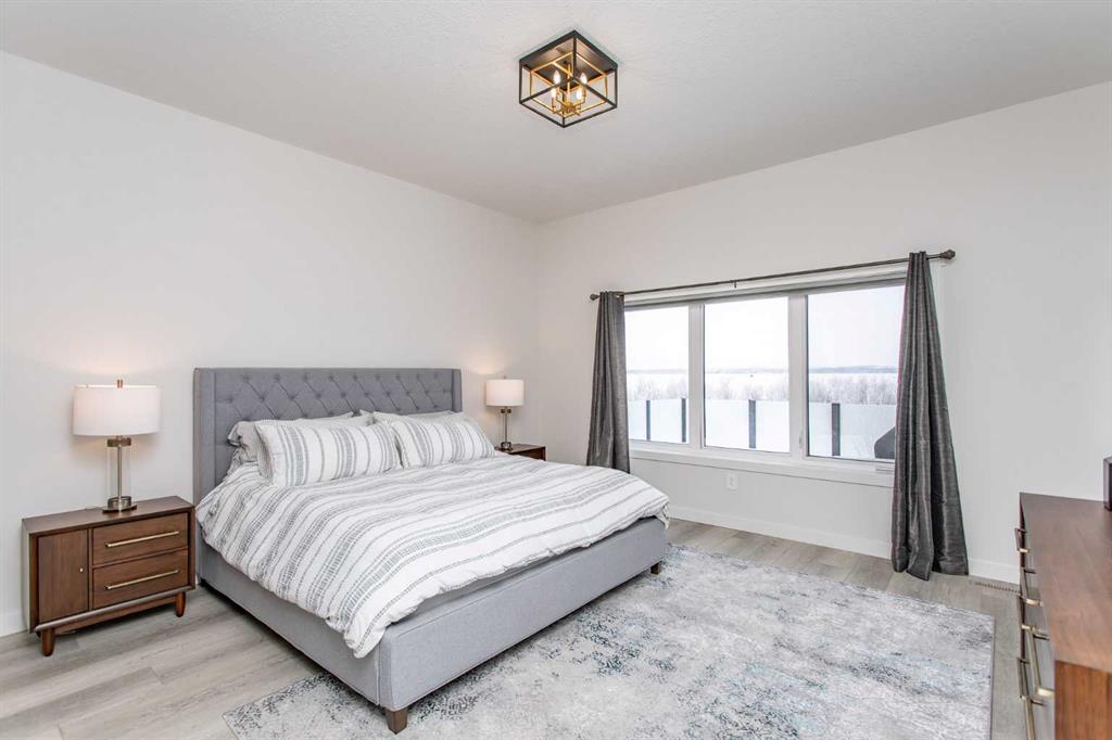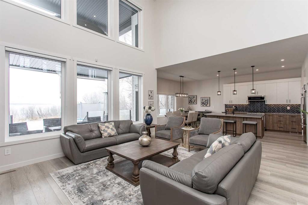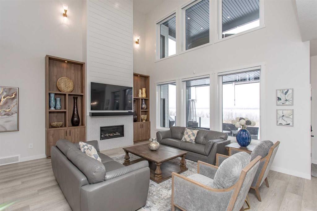 This beautiful LAKEFRONT HOME will leave you breathless! A STUNNING TWO STORY with meticulous details and modern design. Plenty of space for the entire family with 4 bedrooms and 3.5 bathrooms. Just seconds from the town of Sylvan Lake on the sunny-side shores of the sought after summer village of Jarvis Bay. Twin Rose Estates is a new development offering a tranquil setting of sandy shoreline and relaxing sunsets. This beautiful custom build rests beside a natural reserve for added peace and privacy. The crisp white hardy board brings the curb appeal to new heights, along with the extensive landscaping. The double attached garage is fully finished, heated and offers plenty of indoor parking. The grand entrance gives your guests their first glimpse of the gorgeous views. Luxury vinyl plank flooring leads you throughout the entire home. A wall of windows offers an airy feel and loads of natural light. This open floor plan lends itself to entertaining with elegance and functionality. The living room showcases a gorgeous gas fireplace flanked by beautiful built-in shelving. The modern kitchen features two tone custom cabinetry draped in exquisite quartz countertops. The stainless steel appliances include a gas stove and beverage fridge. Dining will be a delight surrounded with the serene setting. Step thru the garden door to gain access to the expansive lower deck, bordered with seamless glass railings. This area is perfect for gathering, partially covered seating with cozy overhead heaters, along with an inviting sunken hot tub! The wide staircase welcomes you down to the large backyard and sandy lakefront. Your grass will stay green and healthy with the help of the underground sprinkler system, fed endlessly by your personal well. A short stroll leads you to the shared dock and your BOAT SLIP! This main floor also features the spacious primary suite, your personal retreat, with private entry from the deck. The spa-like ensuite boasts a gorgeous glass shower, double vanities, generous walk-in closet and easy access to the large laundry room. The staircase to the second level makes a statement and is highlighted with a fantastic light fixture. This spacious second floor features a cozy family room with access to the upper front patio, a perfect location for your morning coffee with amazing views. A second primary bedroom boasts a 4-piece ensuite, walk-in closet and access to the upper deck. Two generous bedrooms come complete with a Jack-n-Jill bathroom and walk-in closets. The west bedroom also has access to the back patio. Additional upgrades include Reverse Osmosis System, an on-demand boiler, security system, and custom electric window treatments. Lakefront Living is a life style like no other. Treat yourself and tour this pristine property today!