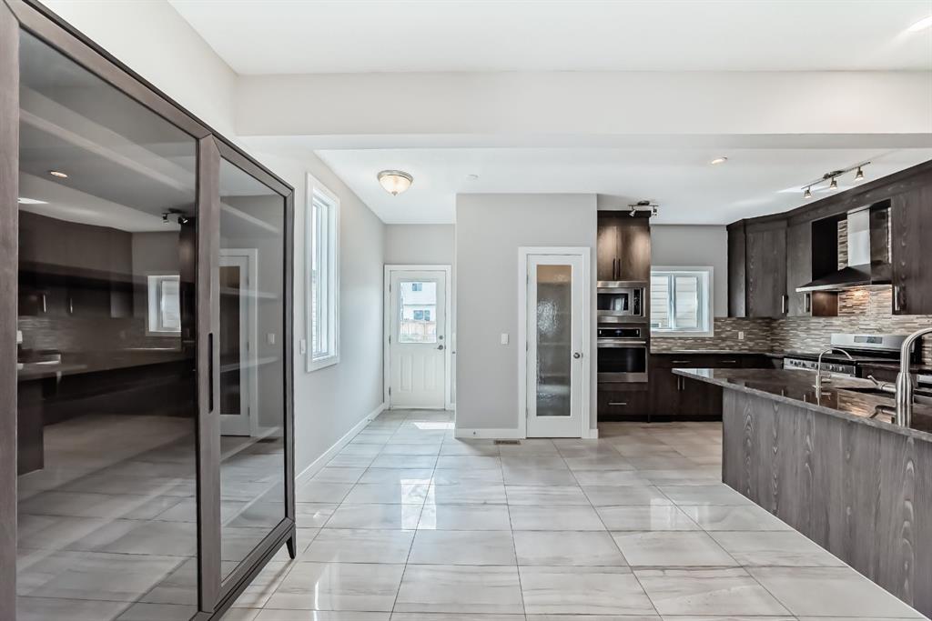 Welcome to this stunning and meticulously maintained two-storey single-family home, ideally situated on a quiet street in the heart of Panorama Hills. Boasting 4 spacious bedrooms, 3.5 bathrooms, and a fully finished basement, this home delivers the perfect balance of style, comfort, and functionality—ideal for families, first-time buyers, or savvy investors. Step inside to discover 9-foot ceilings and a bright, open-concept main floor enhanced by large windows and stylish laminate flooring throughout. The front living space is versatile—it can be used as a formal sitting room or transformed into a home office to suit your needs. The gourmet kitchen is a chef’s dream, featuring a large island, rich dark custom cabinetry, a designer backsplash, quartz countertops, and the rare convenience of both a gas and an electric stove. Upstairs, the generous primary suite offers a private ensuite, while two additional bedrooms provide ample closet space and share a full bathroom. The fully finished basement includes a fourth bedroom, a 3-piece bathroom, and a spacious recreation room—ideal as a guest suite, home theatre, or play area. An oversized double detached garage adds extra value with plenty of room for parking and storage. Perfectly located within walking distance to Buffalo Rubbing Stone School, Save-On-Foods, Tim Hortons, local parks, and public transit, and just minutes from Stoney Trail, this move-in-ready gem combines comfort, convenience, and pride of ownership.