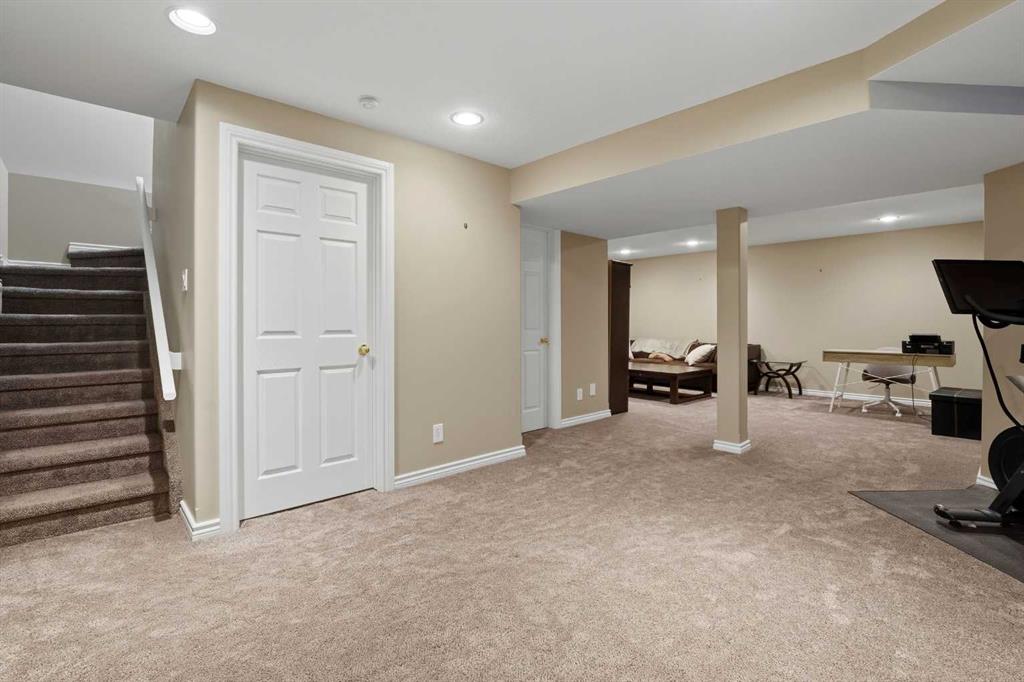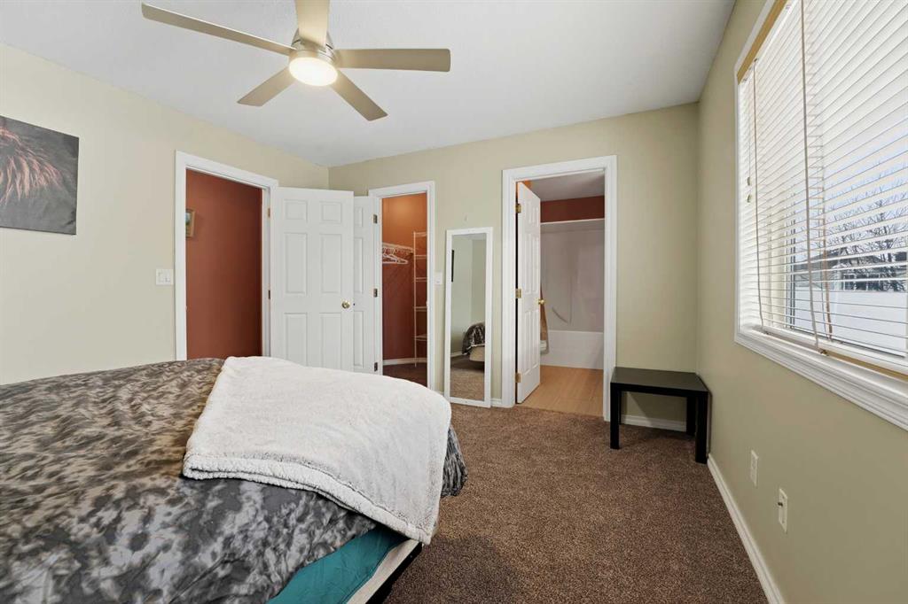 Welcome to this beautiful fully developed townhouse in the sought after neighbourhood of Aspen Ridge with a DOUBLE attached garage! This well maintained property is fantastic for first time home buyers or investors as it offers two primary suites both equipped with walk-in closets and ensuites. The main floor is very spacious and features lovely hardwood floors, large windows and access to the fenced low maintenance yard. The kitchen offers plenty of cabinet and counter space as well as tile backsplash. Ample living space with the basement fully finished offering a large flex space and family room. This home features upgraded carpet and a newer washer/dryer combo and has Central A/C as an added bonus! The attached garage is finished with drywall and paint. Enjoy the easy living lifestyle with snow removal/yard care taken care of for you! This home is completely move-in ready and is a pleasure to view all while being in such a convenient location close to all major amenities.