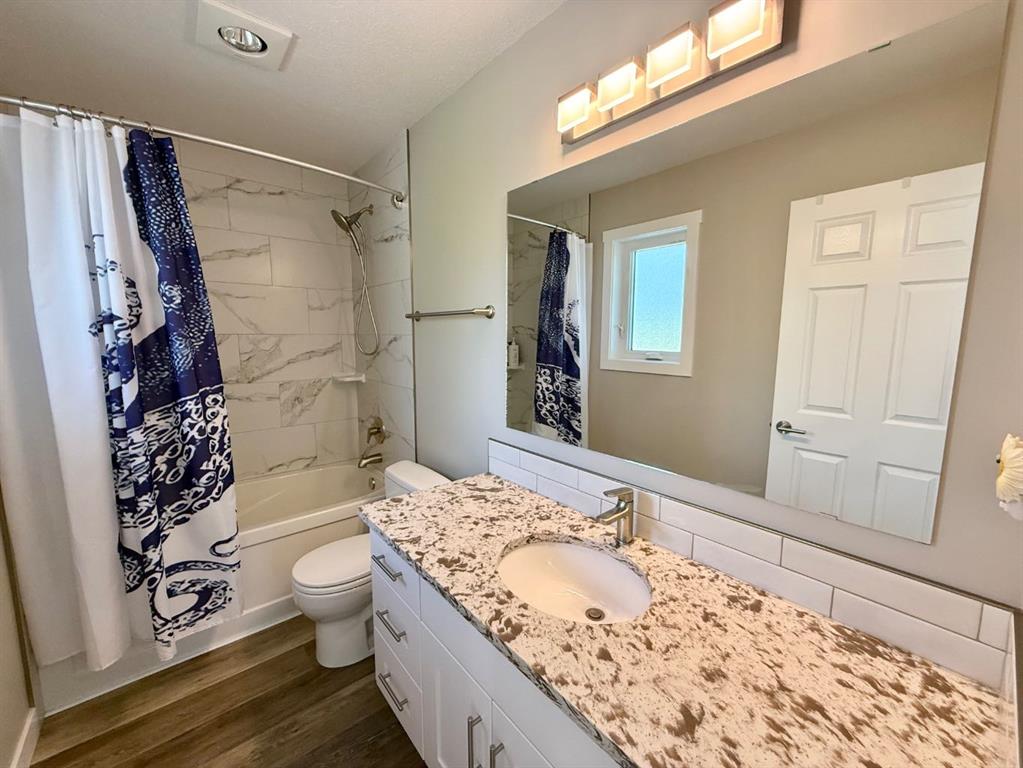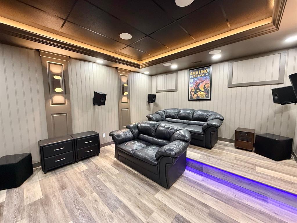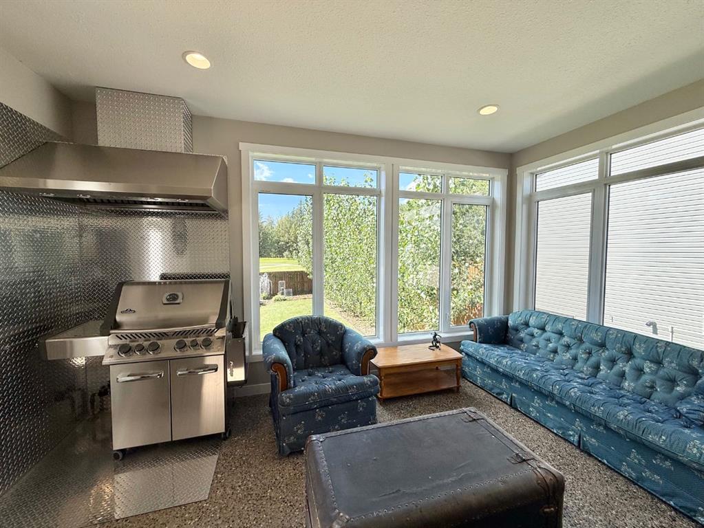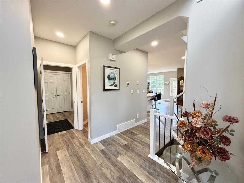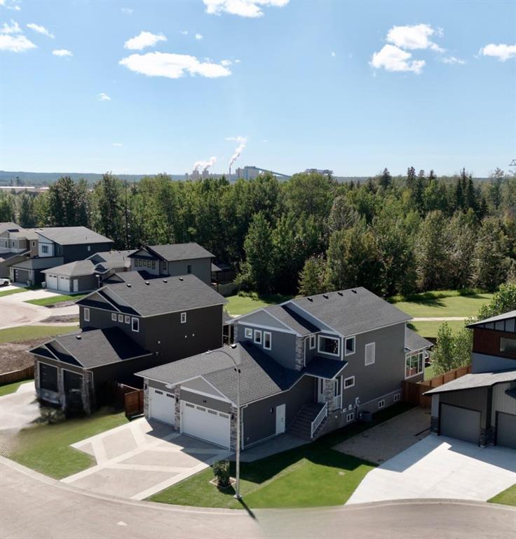 Custom Whitecourt Home. Step into unparalleled elegance with this meticulously designed 5 bedroom residence, where every detail exudes sophistication and comfort. Boasting a triple car garage with a convenient drive thru bay leading to the backyard, this home is tailored for both functionality and style. A dedicated dog wash station with hot and cold taps in the garage and EV Level 2 charging for your electric vehicle add modern convenience to your everyday living. The interior showcases wider, custom designed stairs for effortless furniture movement, quartz countertops flowing seamlessly throughout and a bedroom that’s transformed into a state of the art home theatre, perfect for immersive entertainment. A bar area downstairs complements the at home theatre, ideal for entertaining guests. Climate control is effortless with central air conditioning, while outdoor living is elevated with hot and cold water in both the front and back, a 3 season room featuring a natural gas hook up for your BBQ and a backyard designed for relaxation and no rear neighbors, ensuring privacy and tranquility. The exterior of the home constructed with Hardi Plank is fire and hail resistant, built on ICF block, this home offers durability and energy efficiency, all while being conveniently located near Festival Park and scenic walking paths. The aggregate driveway adds a refined touch to the exterior, completing a residence that blends functionality, luxury and timeless elegance. 60 Pritchard Drive isn’t just a home, it’s a statement.