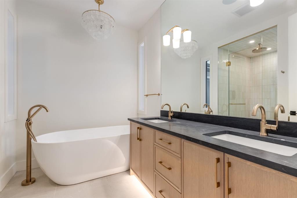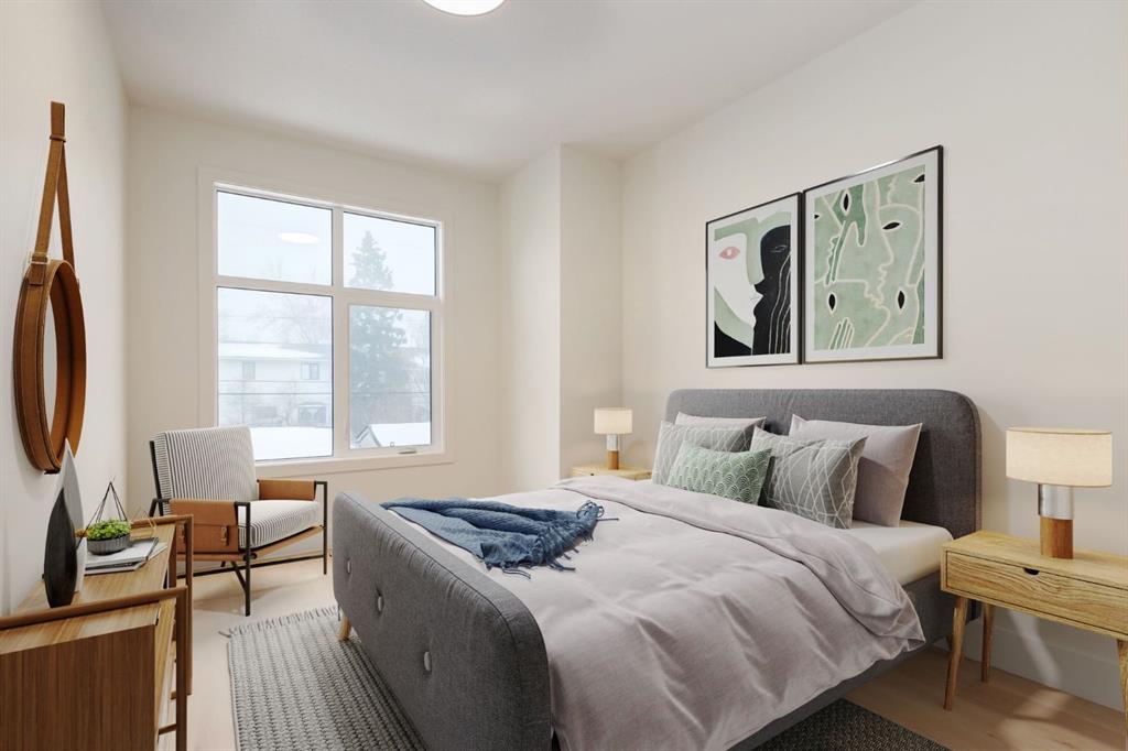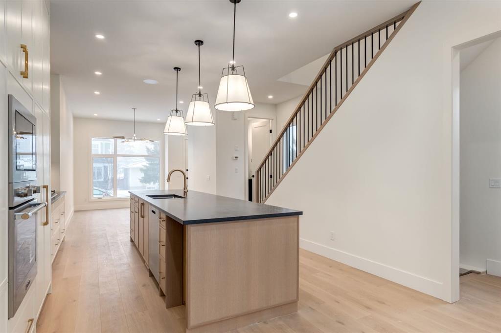Welcome to this brand-new, two-story home situated on a desirable south-facing backyard lot in the heart of Mount Pleasant, just steps from Confederation Park. Enjoy one of the community’s most sought-after locations with immediate access to walking paths, green space, playgrounds, and year-round recreational amenities. This thoughtfully designed home features a custom kitchen complete with a beadboard-paneled hood canopy, oversized quartz island, and designer light fixtures, creating a perfect space for everyday living and entertaining. The inviting living area is highlighted by a limestone fireplace mantle, adding warmth and character to the home. Upstairs, the primary ensuite offers a beautifully finished tub area and oversized shower, while laundry equipment is conveniently included. The fully finished basement provides additional living space and offers flexibility, with the option to convert into a suite if desired. A secondary suite would be subject to approval and permitting by the city/municipality. The professionally landscaped exterior complements the sunny south-facing backyard, ideal for outdoor enjoyment. Located close to schools, shopping, transit, and major roadways, this home combines modern finishes with an exceptional location in one of Mount Pleasant’s most vibrant and family-friendly neighborhoods.