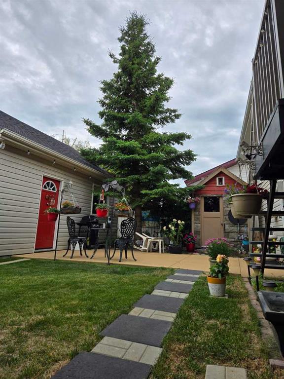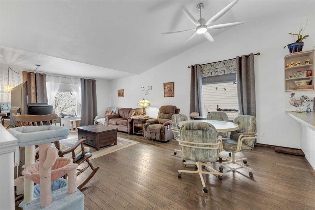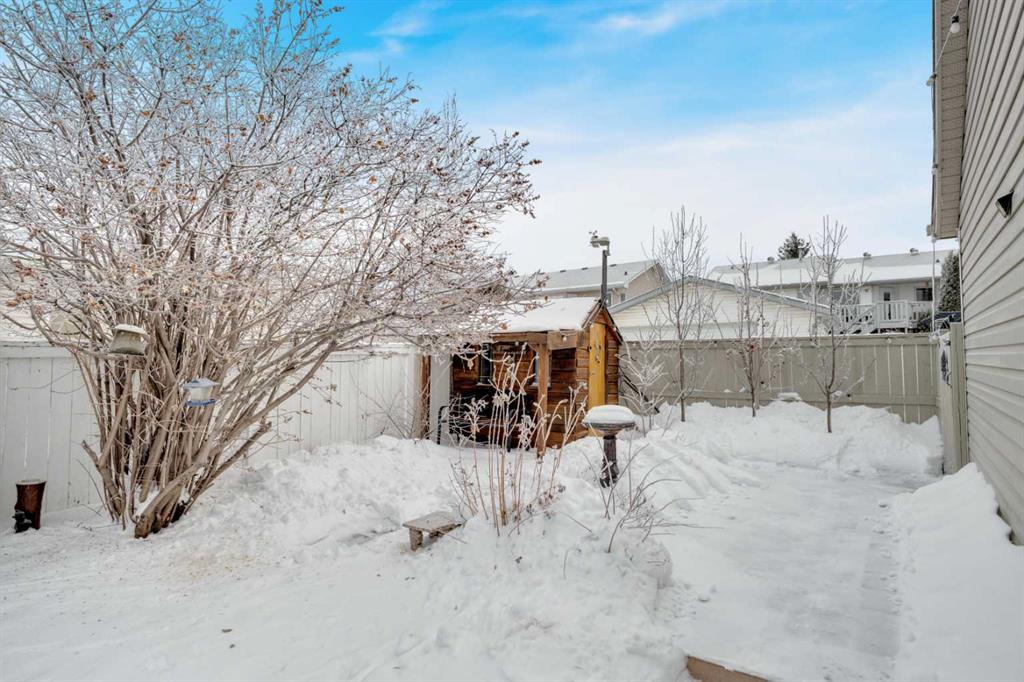 FULLY DEVELOPED 3 BEDROOM, 2 BATHROOM BI-LEVEL ~ EXTENSIVELY UPDATED MECHANICALS ~ IMMACULATELY LANDSCAPED YARD ~ DOUBLE DETACHED GARAGE This well-maintained home is surrounded by stunning, mature landscaping featuring an abundance of flowering perennials, established trees, and vibrant shrubs that create incredible curb appeal and a private, park-like setting ~ Peace of mind comes with major updates completed within the last year, including the furnace, humidifier, hot water tank, and central air conditioning, while the garage door and kitchen appliances (fridge, stove, dishwasher, and microwave) are all under five years old ~ The front yard showcases lush gardens and mature trees, while the west-facing covered veranda offers the perfect place to relax and enjoy evening sun ~ Inside, the open concept main floor is highlighted by vaulted ceilings and rich hardwood flooring, enhancing the sense of space ~ The bright living room features a stylish fireplace with built-in shelving and a large picture window overlooking the front yard ~ The spacious dining area easily accommodates family gatherings and entertaining ~ The functional U-shaped kitchen offers ample cabinetry and counter space, with an eating bar, full tile backsplash, window over the sink, wall pantry, and garden door access to the covered deck ~ The primary bedroom comfortably fits a king-size bed, includes dual closets, and offers private access to the main four-piece bathroom through a cheater door ~ A second generously sized bedroom completes the main level ~ The fully developed basement features large above-grade windows, a spacious family room with a cozy gas-burning stove, a versatile flex area with mirrored closets, an additional bedroom, a three-piece bathroom, laundry area, and plenty of storage ~ The backyard is a true retreat with meticulously maintained gardens, mature trees, colorful flowers, garden beds, two sheds, enclosed storage under the deck, a loft in the garage, and multiple outdoor living spaces including a covered deck, lower concrete patio, and firepit area ~ Fully fenced with alley access to the double detached garage ~ Located close to multiple schools, parks, playgrounds, walking trails, the YMCA, shopping, and a wide range of amenities.