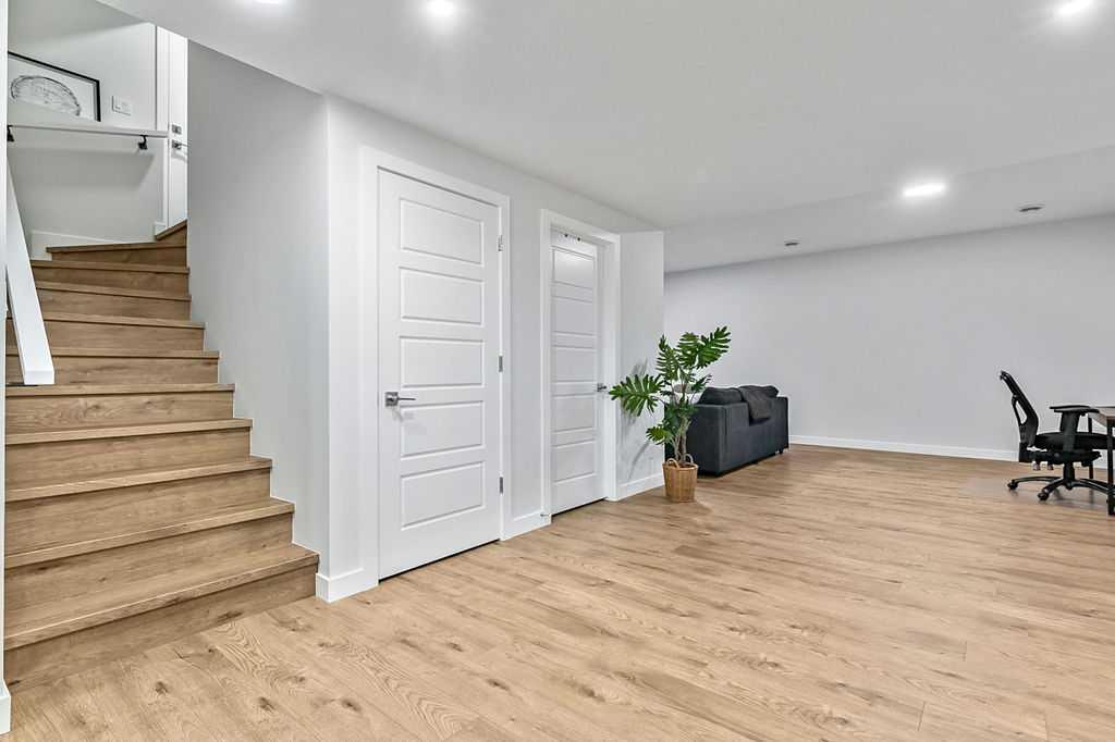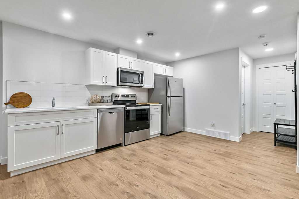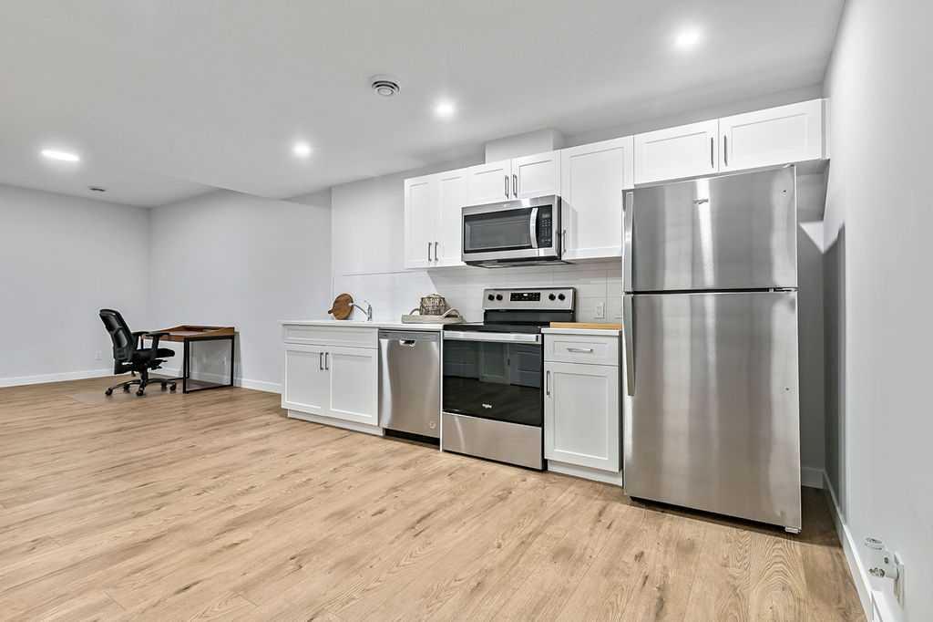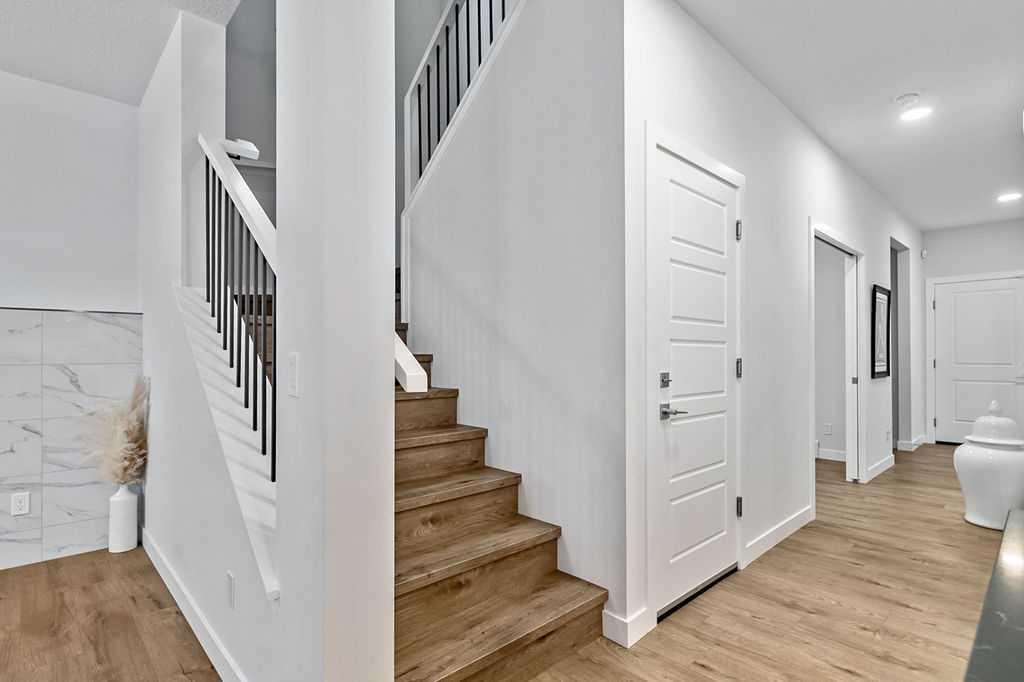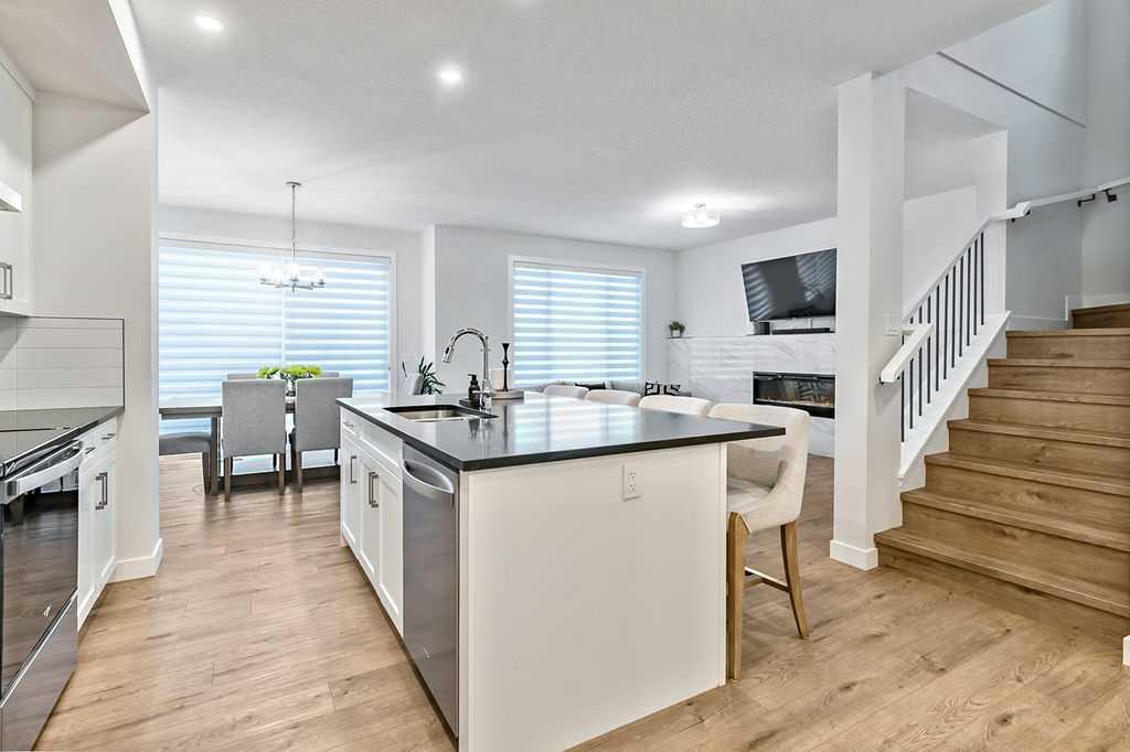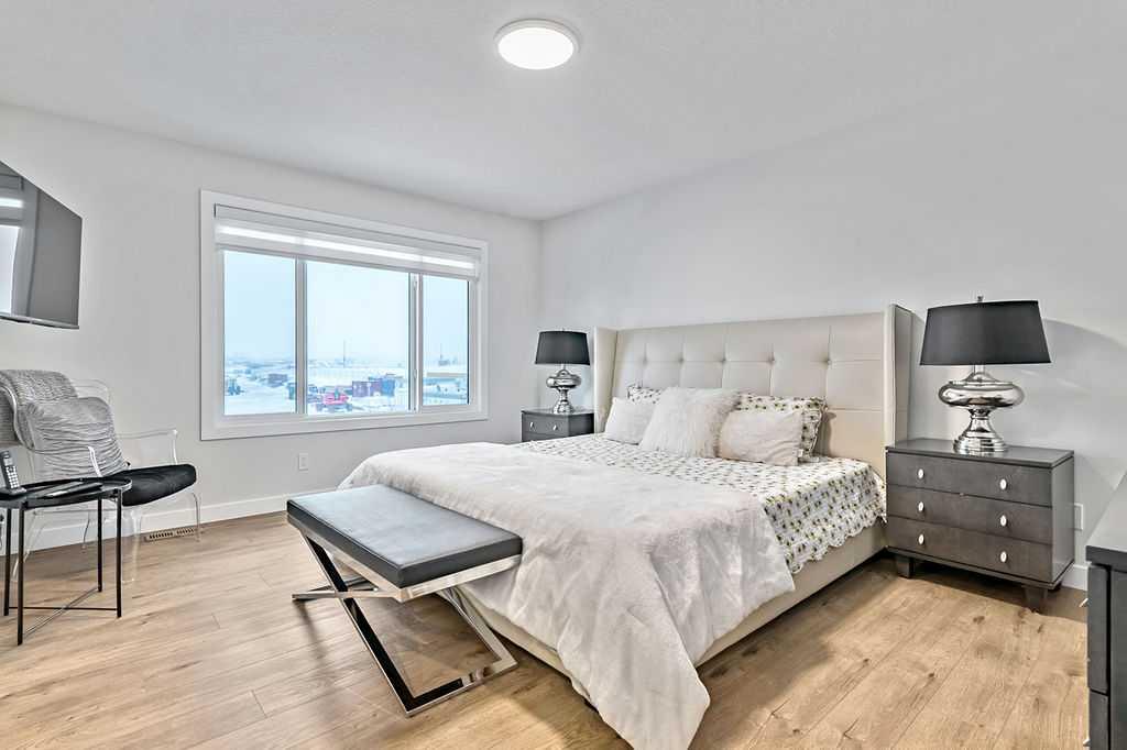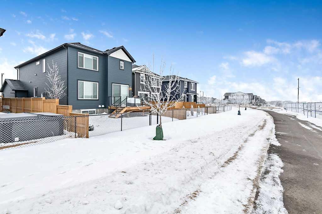 Welcome to this exceptional home built in 2024 and gently lived in for just over one year, offering a truly better than new experience. Backing onto green space with no back neighbours, this property combines thoughtful design and modern comfort. As you enter, you are welcomed by a large foyer featuring a custom crafted locker system that sets the tone for the quality throughout. A private den offers the perfect space for a home office or quiet retreat. Luxury vinyl plank flooring flows seamlessly throughout the entire home. The kitchen is a showstopper with a massive island, gas stovetop, wall oven and an impressive walk-in pantry that provides exceptional storage. The dining area is perfectly positioned to enjoy beautiful views of the recently landscaped and fenced west facing backyard. The living room is warm and inviting with a cozy fireplace and large windows that frame more peaceful green space views. Upstairs, the generous primary bedroom features a fabulous walk-in closet and a beautiful ensuite. The central bonus room is an ideal space for kids to relax or gather. Two additional well sized bedrooms with large closets share a five-piece bathroom, making busy mornings easy. A convenient upper floor laundry room completes this level. The 917 square foot legal basement suite with a separate entrance offers incredible flexibility. It is ideal for older children, extended family or as a smart option for rental income. Do not miss the oversized 23’ x 24’ heated garage, complete with epoxy floors including the stairs, fully insulated, drywalled and painted, with slat walls, cabinets and additional storage. The yard is finished with stunning fencing, irrigation and low maintenance landscaping. You will also appreciate the air conditioning in the warmer months. This move in ready home offers easy access in and out of the community and is just steps from walking paths, schools, shopping and restaurants. A rare opportunity to own a meticulously finished home that truly stands out. This could also be a turnkey investment. Please note some photos are virtually staged.