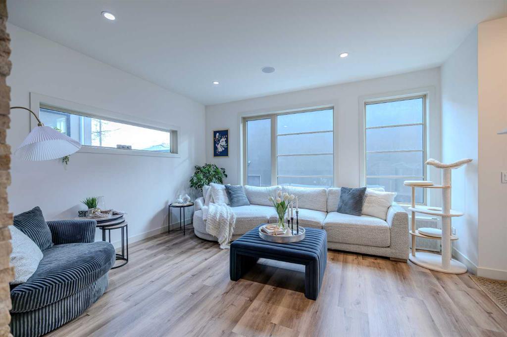Well maintained, modern, and quiet 2-storey townhome offering nearly 2,000 sq ft of developed living space in the heart of Killarney. This 3-bedroom, 3.5-bath home features 2 bedrooms up and 1 down. The primary bedroom offers high ceilings, double sinks, a spacious shower, and walk-in closet. The second upstairs bedroom includes its own ensuite, plus convenient second-floor laundry. Fully developed basement with a large third bedroom, 4-piece bathroom, and second living room—ideal for guests or a home office. Recent updates include new flooring, fresh paint, and updated light fixtures. Features include a double-sided fireplace between the living and dining rooms, quartz countertops, gas range, stainless steel appliances, and ample storage. Low condo fees, single detached garage, and an excellent inner-city location—just a 3-minute walk to the LRT for an easy commute downtown, with quick access to 17 Ave, Crowchild Trail, transit, and local amenities.