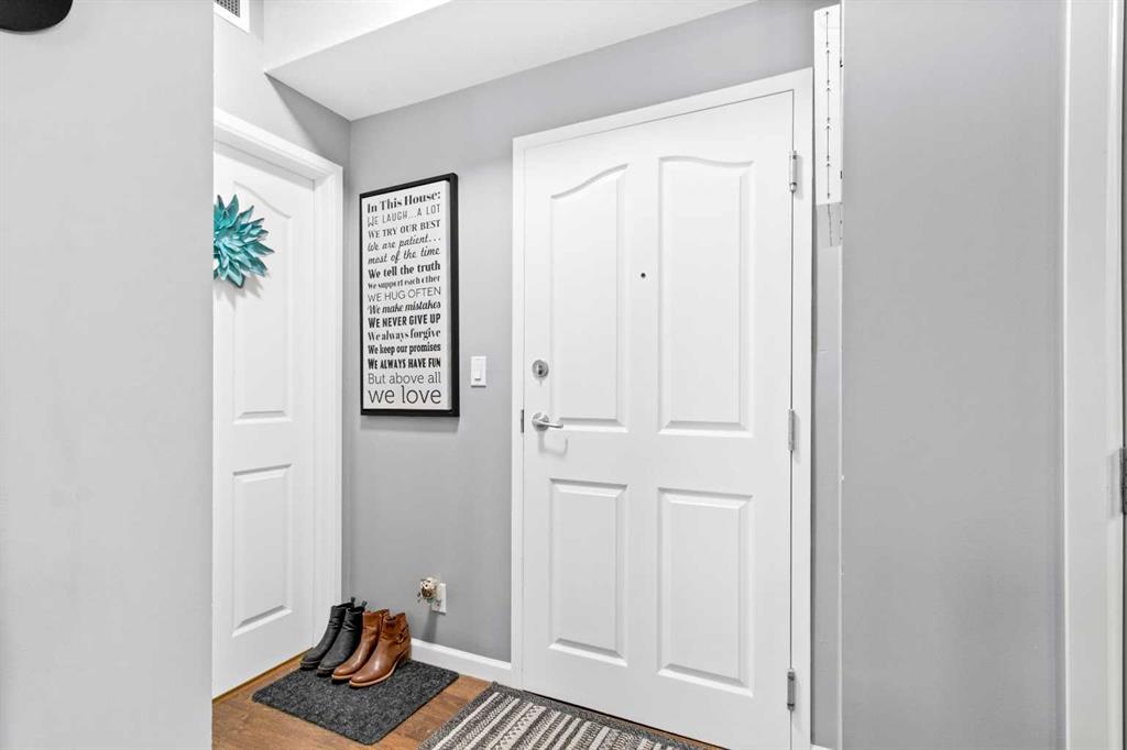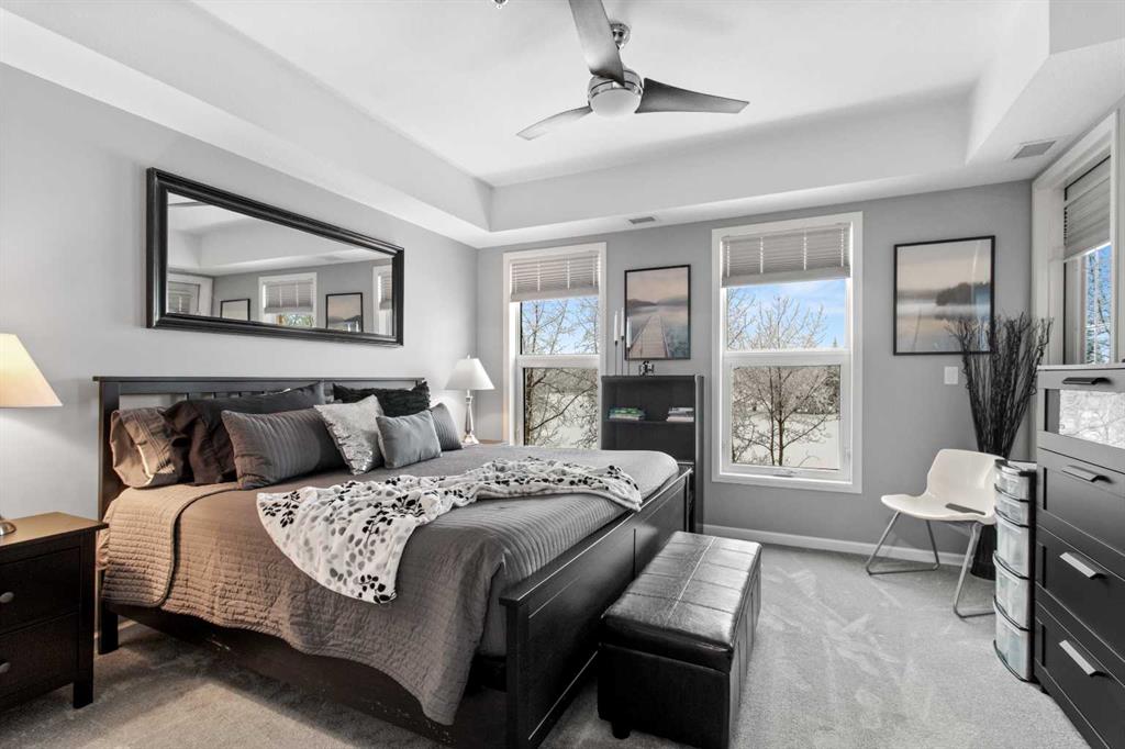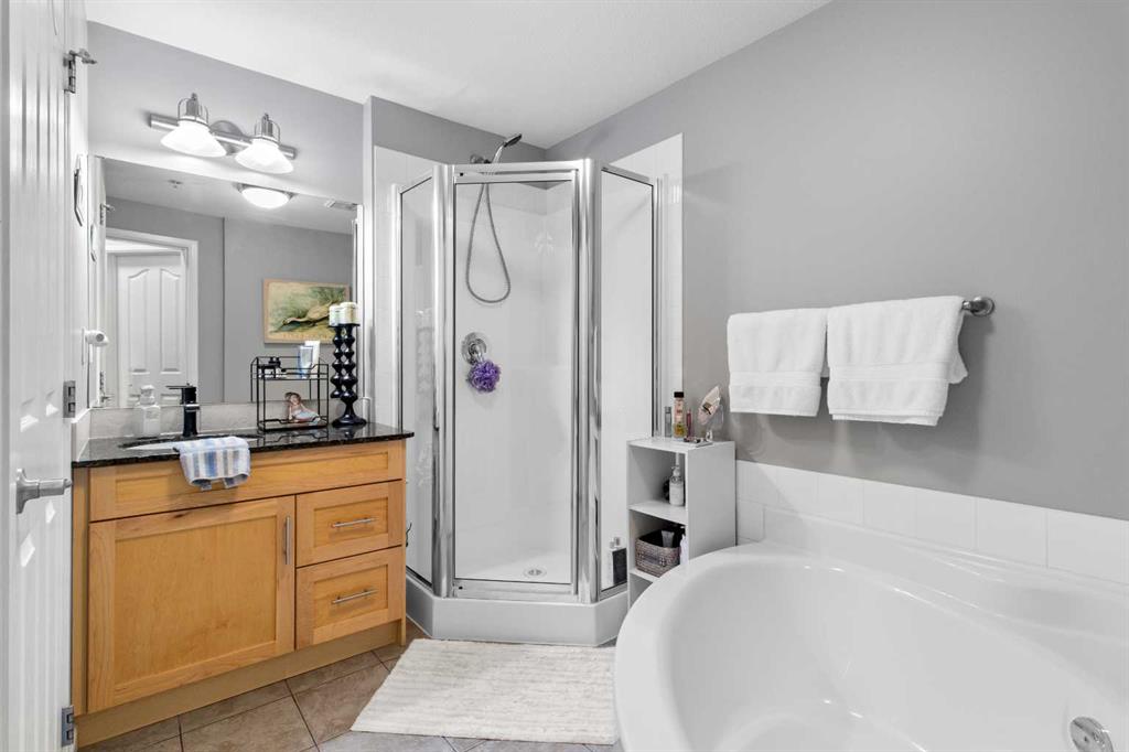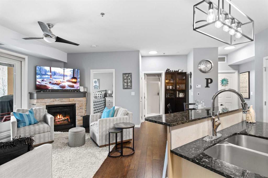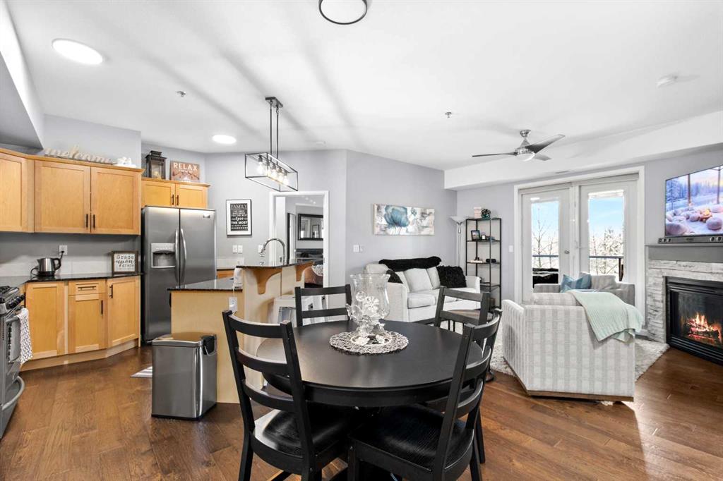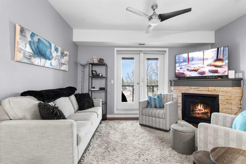 Located in the sought-after Fairway Estates, this bright third-floor 2 bedroom, 2 bathroom condo faces the golf course and is within walking distance to the beach. The open-concept kitchen, dining, and living area sits between bedrooms on opposite ends of the unit, offering great separation and natural light throughout. An electric fireplace adds warmth to the space, while the living room and primary bedroom both lead onto a spacious balcony with a gas line for a BBQ and peaceful views of the country club golf course. The primary suite features a generous ensuite with a soaker tub, separate shower, and walk-in closet. Updates include fresh paint throughout, new light fixtures and hardware, new carpet, replaced internal patio door blinds, and a new sink and toilet in the guest bathroom. This unit includes two titled parking stalls and an assigned storage unit in the heated underground parkade, along with access to luxury amenities such as a theatre room, gym, sauna and hot tub, library and games room, party room, and car wash. **NO PETS ALLOWED**