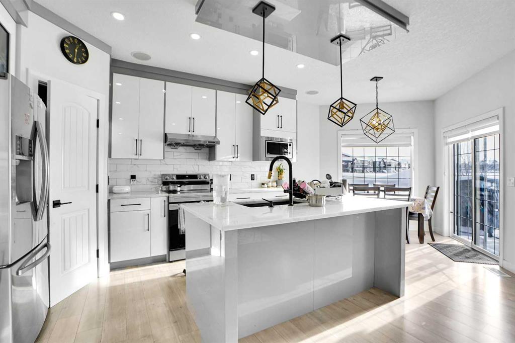Stunning AIR-CONDITIONED former SHOW HOME backing onto a PLAYGROUND and Hugh A. Bennett School! From the moment you walk in, you’ll be impressed by the abundance of natural light pouring through the large windows and the fresh NEW flooring. The spacious living room features a cozy gas fireplace, leading to a beautifully renovated kitchen with built-in stainless steel appliances and granite countertops. The bright breakfast nook opens to a sunny SOUTH-facing backyard complete with a large deck—perfect for family gatherings and summer BBQs. Upstairs, the huge primary bedroom offers a 5-piece ensuite and walk-in closet. You’ll also find two additional bedrooms, a full common bath, and a generous bonus room ideal for family movie nights. Additional highlights include: Built-in speaker system and security system, Fully finished drywalled attached garage , Outdoor recessed lighting. LEGAL 1-bedroom basement suite for mortgage-helping rental income. Located steps from the pond, pathways, playground, school, shopping, Saddletowne Circle, LRT, and the Genesis Centre. Don’t miss this opportunity—call today to view before it’s gone!