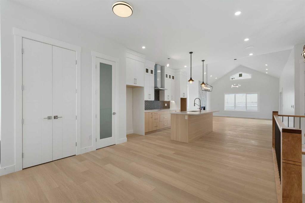 ELIGIBLE FOR FIRST HOME BUYERS GST REBATE. Welcome to this beautiful 4-bedroom plus den bungalow, perfectly set in a quiet golf course community with no neighbors behind and sweeping mountain views. From the moment you step inside, you’ll be drawn to the heart of the home—the extended kitchen. Designed for both cooking and gathering, it features sleek quartz countertops, stainless steel appliances, an abundance of cabinetry, and a layout that flows seamlessly into the dining and living areas. Soaring vaulted ceilings and large west-facing windows flood the main floor with natural light, framing peaceful pond and mountain views you’ll never tire of. The spacious primary retreat is a true getaway with a walk-in closet and spa-inspired ensuite, while a second bedroom and office/den complete the main level. Downstairs, the fully finished lower level offers even more space to relax and recharge—two more bedrooms, a home gym, and plenty of room for movie nights or entertaining friends. The oversized triple garage gives you all the space you need for vehicles, storage, or even a workshop, while the private backyard invites you to unwind and soak in the tranquility. Just 20 minutes from Calgary and minutes to Strathmore, this home strikes the perfect balance of luxury, privacy, and convenience.