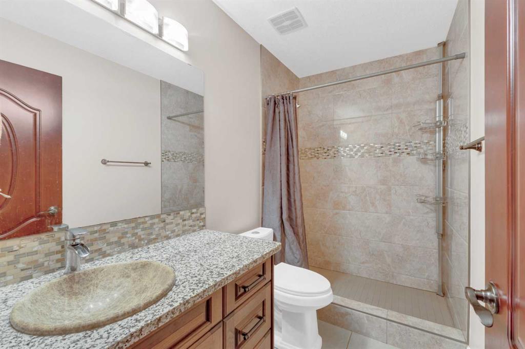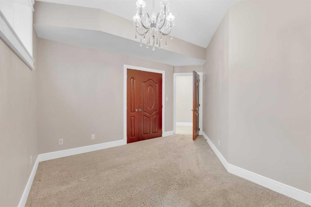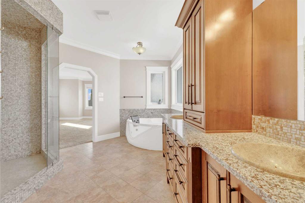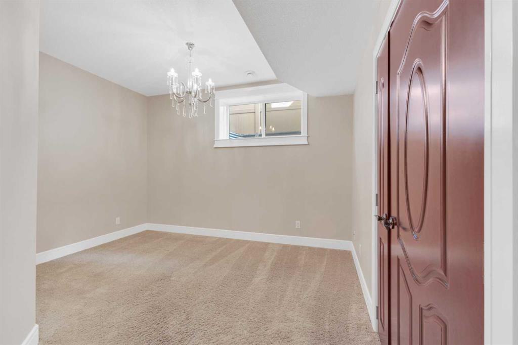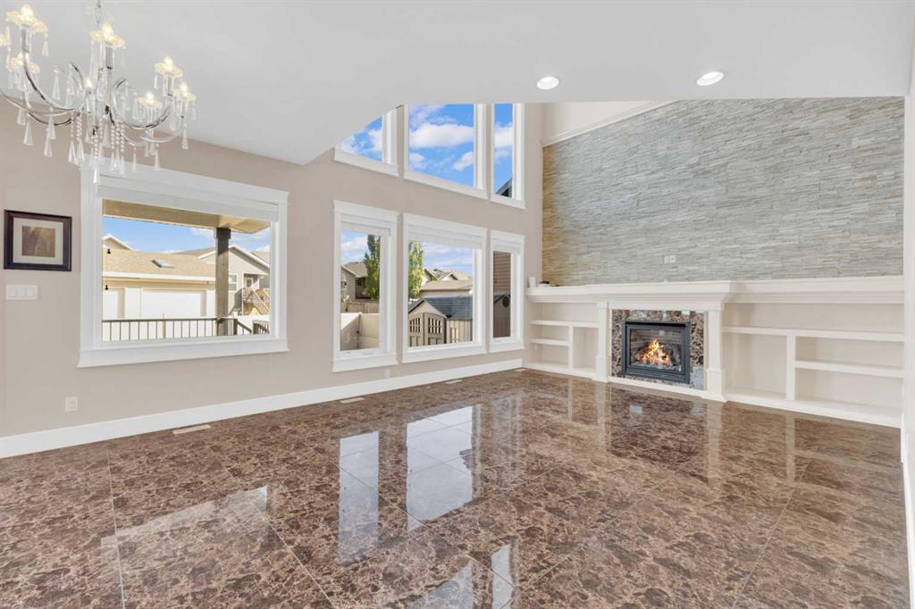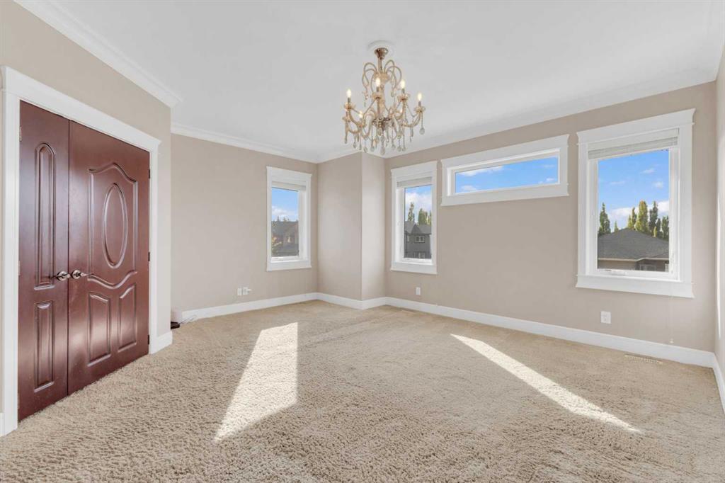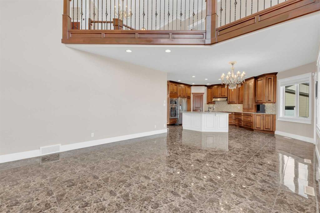 Welcome to 3 Trump Place—an exceptional, fully developed executive home located in one of Red Deer’s most desirable, private closes. This 4-bedroom plus den, 3.5-bathroom residence is the perfect blend of timeless elegance and modern design, offering superior craftsmanship and luxurious details throughout. From the moment you arrive, the curb appeal is undeniable. The grand double iron doors open into a dramatic two-storey foyer adorned with granite flooring and an abundance of natural light. The attention to detail is immediately evident in the custom finishings, upscale materials, and thoughtful layout designed for both family living and entertaining. The chef-inspired kitchen is as functional as it is beautiful, featuring rich cherry wood cabinetry, granite countertops, high-end appliances, and a large island with eating bar. A walk-in pantry, full tile backsplash, and undermount sink elevate the space. The adjoining dining area offers access to the covered deck and beautifully landscaped backyard, perfect for outdoor gatherings. The open-concept great room is anchored by a floor-to-ceiling stone fireplace flanked with custom maple shelving, creating a warm and inviting atmosphere. A private main-floor office with French doors, a convenient 2-piece powder room, and a spacious laundry room with built-in cabinetry and a sink complete the main level. Upstairs, the spacious bonus room overlooks the main living area, while the serene primary suite offers vaulted ceilings, large windows, a walk-in closet with built-ins, and a spa-like ensuite featuring a soaker tub, oversized tiled shower, double vanity, and separate water closet. Two additional bedrooms and a beautifully appointed full bathroom are also located on the upper level. The fully finished basement features in-floor heat, granite tile flooring, 9-foot ceilings, a large family room with wet bar, fourth bedroom, a separate den, and a full bathroom. This level adds both comfort and flexibility to suit your family's needs. Additional highlights include air conditioning, built-in sound wiring and high speed cat 5 wiring for high speed gaming etc., solid wood doors, premium light fixtures including chandeliers, and a heated, finished double garage. The backyard is fully fenced with vinyl, offers back-alley access, and includes a firepit area and storage shed. Ideally situated within walking distance to schools, playgrounds, parks, churches, and all the amenities of both Timberlands and Clearview Market Square, this property combines the best of location, luxury, and lifestyle. Homes of this calibre and setting rarely come to market—experience the quality and attention to detail for yourself at 3 Trump Place.