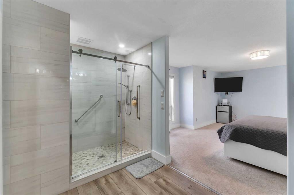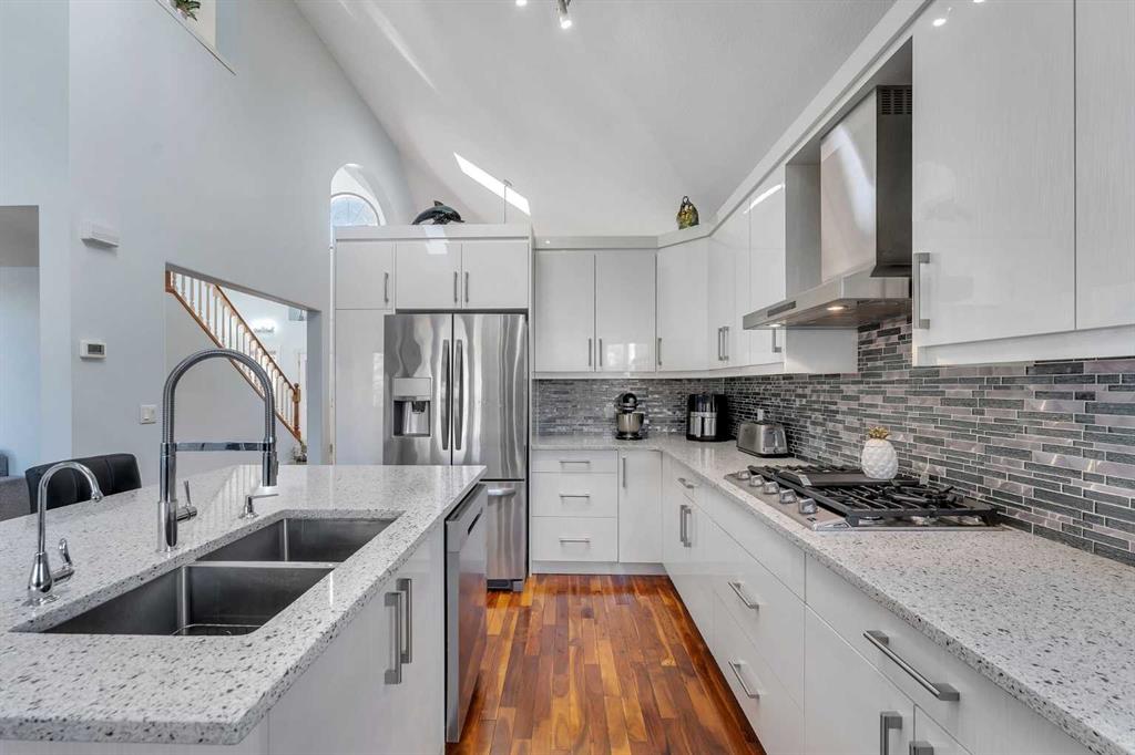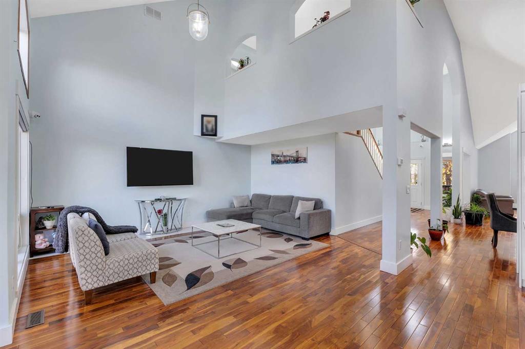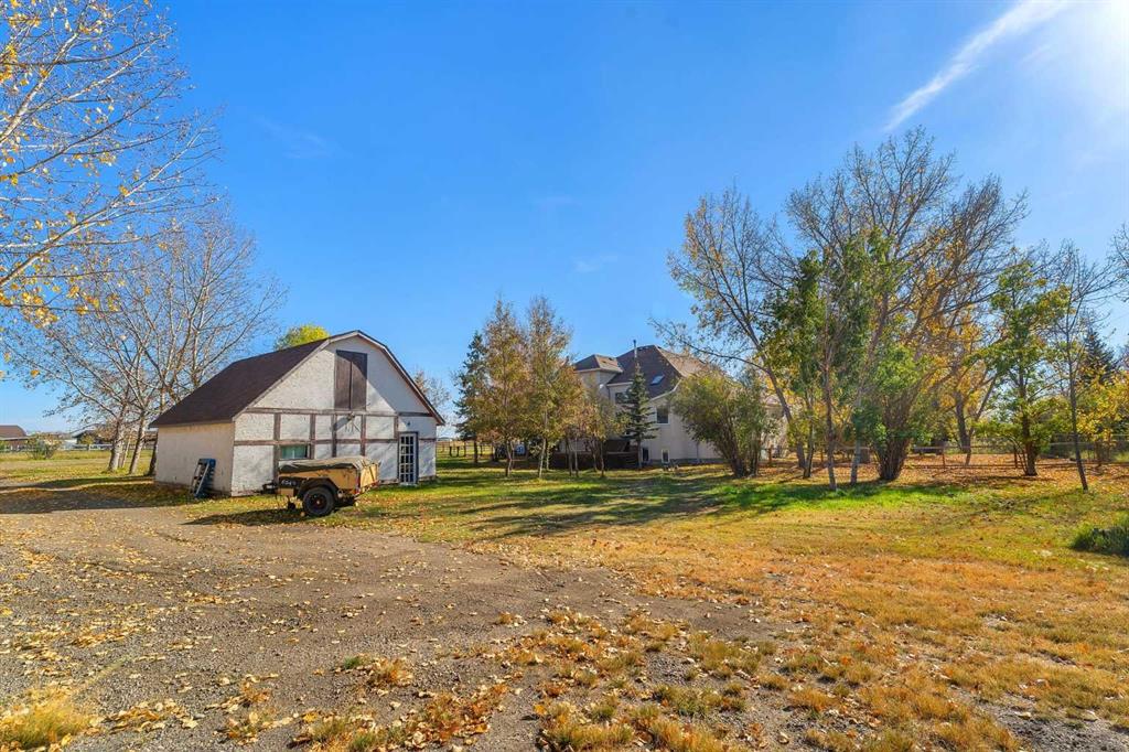 3.95+/- ACRES IN CHESTERMERE CITY LIMITS! RENOVATED HOME! 4 CAR SHOP AND BARN! FENCED AND GATED! Welcome to this RENOVATED HOME sitting on 3.95+/- acres of land! This home is located WITHIN THE CITY OF CHESTERMERE LIMITS AND HAS GREAT ACCESS TO GLENMORE TRAIL SE, HWY 791 AND TC-1! The property is FENCED AND GATED IN THE FRONT PORTION of the property with an ASPHALT DRIVEWAY AND LOTS OF SOLAR LIGHTING AROUND THE FENCE AND DRIVEWAY! There is a 4 CAR DETACHED GARAGE IN THE REAR WITH A GARAGE HEATER AND ELECTRICAL as well as a BARN WITH ELECTRICITY AS WELL! The REAR SHOP AND BARN are great especially if you run your own business OR you can rent them out as a MORTGAGE HELPER!!!! The MAIN LEVEL OF THE HOME greets you with OPEN TO ABOVE AND SOARING VAULTED CEILINGS ALL THROUGHOUT THE HOME allowing TONS OF NATURAL LIGHTING TO ENTER THE HOME! The MAIN LEVEL features HARDWOOD FLOORING, UPDATED PAINT AND BASEBOARDS as well! There is A FORMAL LIVING AND DINING ROOM (with built-in CHINA CABINETS) in the FRONT OF THE HOME! There is a FULLY RENOVATED KITCHEN (WITH ISLAND, GRANITE COUNTERTOPS AND STAINLESS STEEL APPLIANCES) as well as a ANOTHER DINING ROOM AND FAMILY ROOM! The MASTER BEDROOM is CONVENIENTLY LOCATED ON THE MAIN FLOOR WITH A FULLY RENOVATED 4PC ENSUITE AND W.I.C. There is also a 2PC Bathroom and LAUNDRY ROOM WITH SINK ON THE MAIN FLOOR. Take the GRAND STAIR CASE (with built-in lighting) to the UPPER LEVEL features a LOFT AND 2 GREAT SIZED BEDROOMS WITH A 3PC BATHROOM AS WELL! The BASEMENT is FULLY DEVELOPED with 3 GREAT SIZED BEDROOMS, A 3PC BATHROOM, OFFICE AREA (built-in desks) and another LIVING ROOM! The BASEMENT has a separate entrance as well to the ATTACHED DOUBLE CAR GARAGE! Home is near CHESTERMERE HIGH SCHOOL, EAST LAKE SCHOOL, KINNIBURGH PLAZA (WITH LIQOUR STORE, PIZZA STORE, PHARMACY AND AHS SERVICES!), CHESTERMERE LAKE, AND LAKESIDE GREENS GOLF CLUB Home is also a few minutes from the BEACON CHESTERMERE DATA CENTRE (to be built soon).