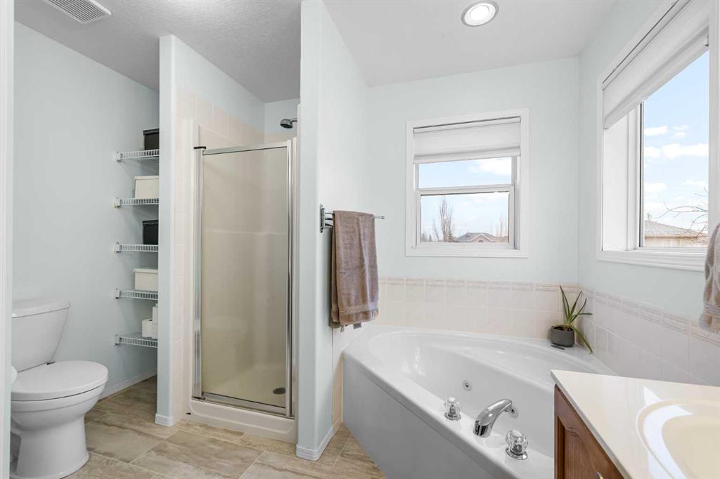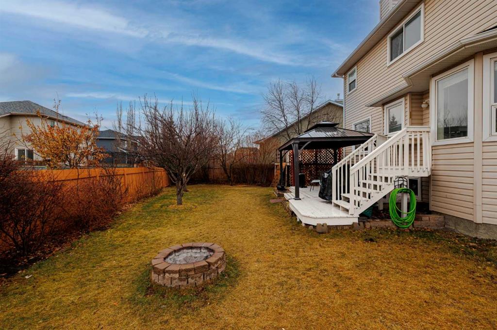 This spacious family home in the popular community of the Canals offers a wonderful layout, thoughtful updates and a generous backyard, all within walking distance of neighbourhood schools. Fully developed, with 5 bedrooms, 3.5 bathrooms and ample living space spread across three levels. The main floor has a welcoming front entry that leads to a private office framed by a large window overlooking the front yard. A formal dining room sits nearby and can be used to suit a variety of needs, whether hosting gatherings, or for day-to-day activities. The centrally located kitchen features abundant counter and cabinet space, island and corner pantry. The kitchen flows easily into the bright dining nook overlooking the backyard. From here, the space opens into the great room, where a stunning gas fireplace creates a warm focal point. Upstairs, the primary suite offers a comfortable retreat with a five-piece ensuite that includes a dual-sink vanity and a relaxing soaker tub, as well as a walk-in closet. Directly beside the primary bedroom is a den suited for reading, work, or quiet reflection. Three additional bedrooms and a four-piece bathroom complete the upper level. The fully finished basement extends the home’s versatility with an open recreation area, additional bedroom, bathroom and storage room. The attached double garage leads into a mudroom with closet and laundry area. Outside, the home sits on a large, pie-shaped private lot enriched with many mature trees, established garden spaces, and a charming tree house for children to enjoy! An impressive deck complete with a gazebo provides a sheltered outdoor spot for relaxing or entertaining through the seasons. Recent improvements include Central A/C, fresh paint and new flooring, bringing a clean and updated feel throughout the home. The Canals community in Airdrie is known for its convenient pathways, numerous amenities and quick access to schools - making it a sought-after area for families. This home is perfectly located walking distance to Ralph McCall School, Our Lady of Peace School and C.W. Perry School. Take advantage of your opportunity to see this incredible property in person - book your showing today! Be sure to check out the floorplans and 3D tour for a closer look before your visit.