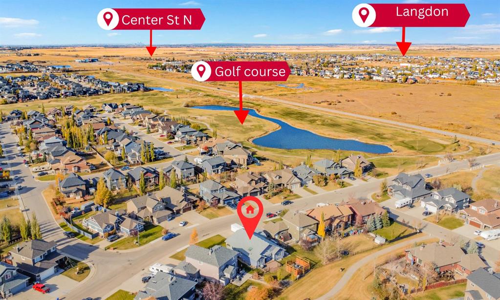 Welcome to Boulder Creek Estates in Langdon, where small-town charm meets refined bungalow living. This immaculate, fully finished 4 bedroom, 3 bath, 1800 sq ft bungalow offers over 3,000 sq ft of beautifully designed living space with vaulted ceilings, a triple car garage, and central air conditioning. A formal dining room and large den offer versatility for entertaining, working from home, or quiet relaxation. The chef-inspired kitchen features granite countertops, stainless steel appliances, a gas stove, skylight, and ample cabinetry, flowing into a warm living room with a gas fireplace. The spacious primary suite includes a stylish barn door and a luxurious 5 pc ensuite. The fully developed lower level adds a large recreation room with a second gas fireplace, two additional bedrooms, generous storage, and the convenience of two laundry rooms. Situated on a private reverse pie lot backing onto green space, the landscaped backyard with underground sprinklers creates a peaceful outdoor retreat. Boulder Creek Estates is a vibrant community with nearby amenities including Boulder Creek Golf Course, the Langdon Fieldhouse, skatepark, playgrounds, schools, and local shops and restaurants, scenic walking paths, and convenient access to major commuting routes.Thoughtfully upgraded and meticulously maintained, this exceptional home offers space, comfort, and elegance just minutes from Calgary.