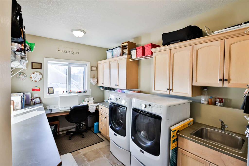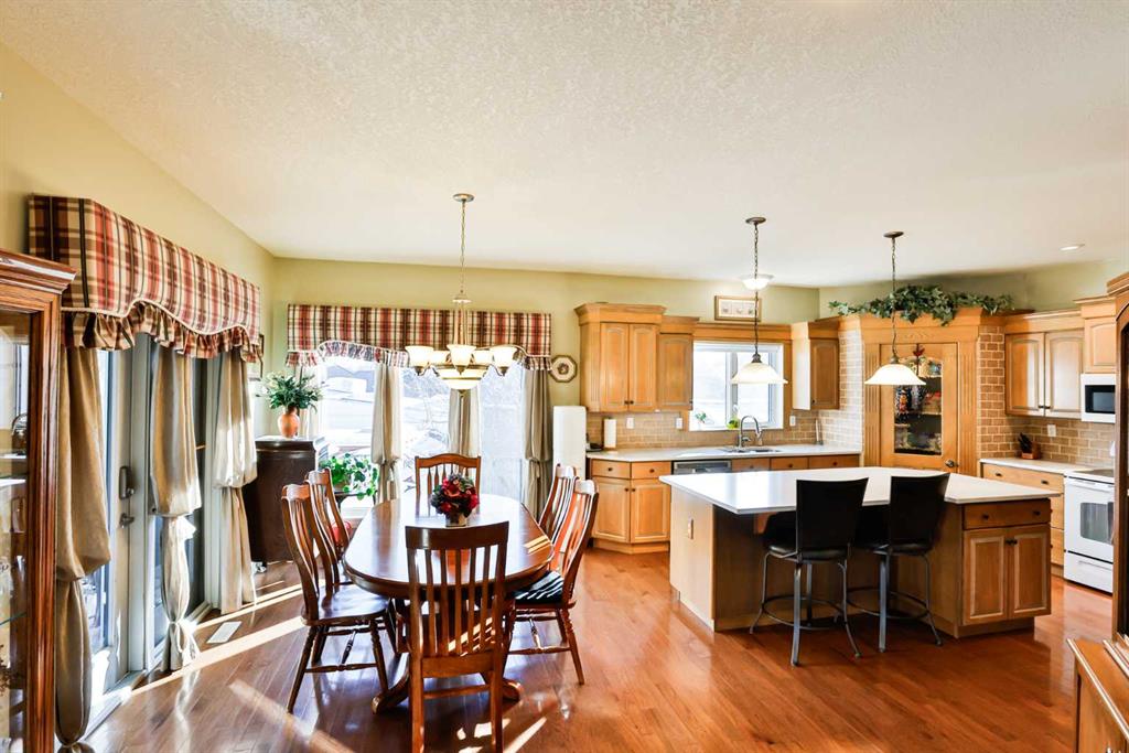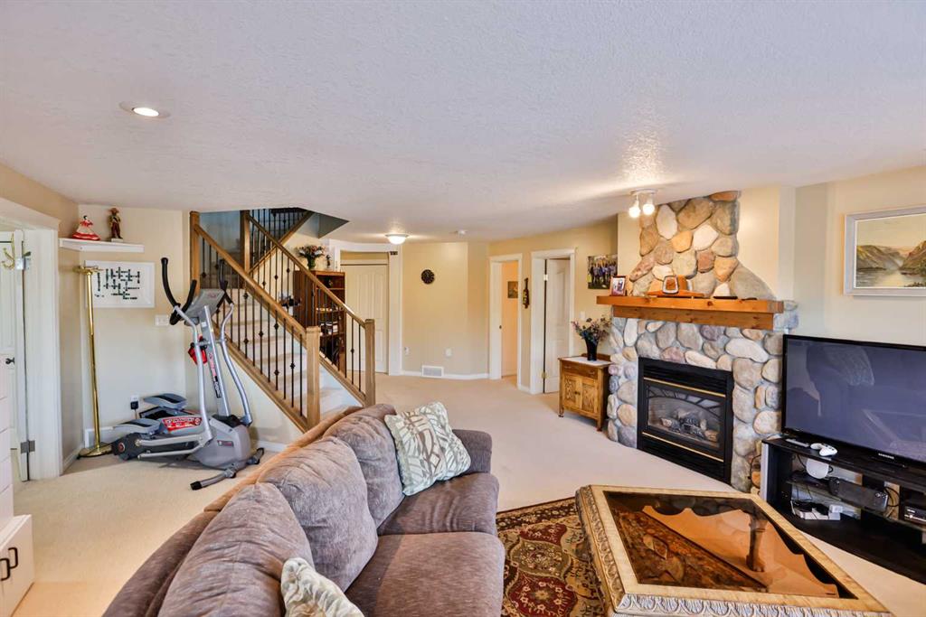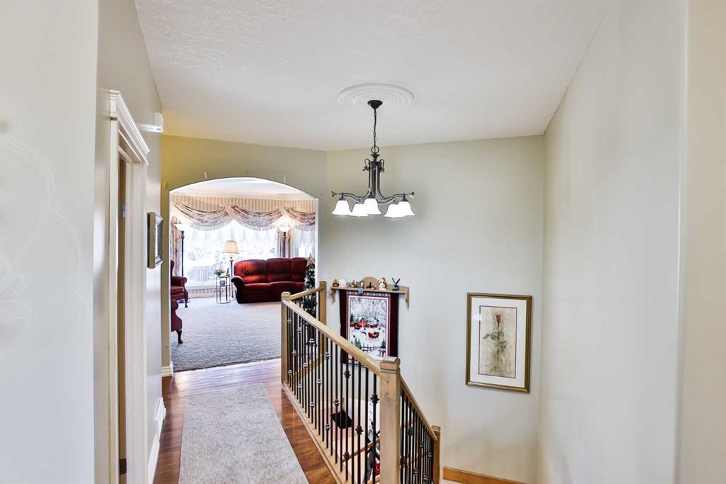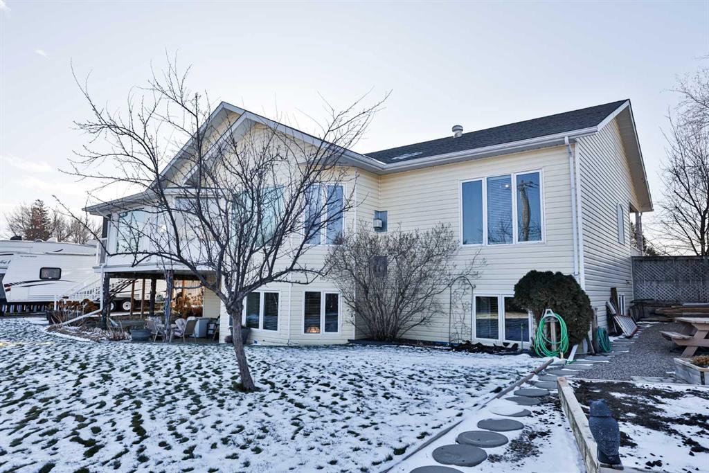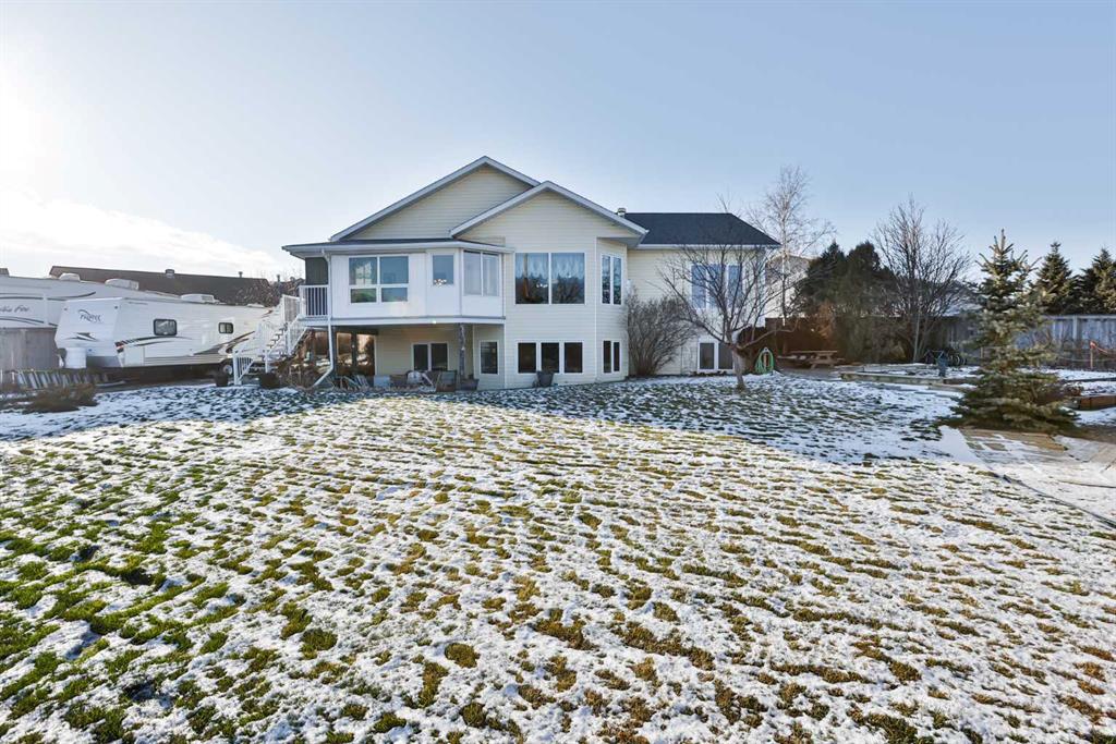 This sprawling, well maintained bungalow was thoughtfully custom designed with one level living in mind. From the moment you drive up you'll appreciate the curb appeal, and especially the lovely front porch with space to sit and take it all in. There is no shortage of space here! Each room is a fantastic size. Through the front door you are greeted with a nice size foyer, which leads to your office just off the front door, and then flows in to your large living room with the most incredible wall of windows across the back of the home. A cozy fireplace rounds off this great space. You will absolutely love the massive kitchen island with newer quartz countertops, and there are cabinets for days in here. Not only is there an entire wall of extra cabinets, but there is a corner pantry as well. A lovely window right over the kitchen sink is the perfect touch to finish off this space. The kitchen flows nicely in to a good size dining room, and just off that is your enclosed deck that you will love using all year round. The primary bedroom is nicely tucked away from the living area, giving you your own private oasis. It comes complete with a walk in closet, and a 4 piece ensuite with soaker tub, shower, and a nice size vanity too. Also on the main floor is a large laundry room that doubles as a fantastic craft/hobby space. There is another whole wall of cabinets, and a built in desk to sew or craft all your masterpieces. The half bath is nicely tucked away in the back entrance, away from your living area, and just off the garage. We haven't even got to the basement yet...but it was carefully and thoughtfully designed as well. Down the stairs with custom wrought iron railing, you enter in to your cozy family room with another gas fireplace, and you'll immediately note the huge windows across the back of the space as well. The walkout basement provides the most amazing natural light that floods this whole space, and hardly feels like a basement at all. There are 3 large bedrooms all with nice size closets, as well as another full four piece bathroom with tub, shower, and a large vanity with plenty of storage. You'll love the big cold storage room with prep space, and two additional storage closets as well as more storage space under the stairs. This home has it all! Located in an absolutely unbeatable location, this home is tucked quietly away at the end of a cul de sac on a fantastic size pie lot, with RV parking off the back lane. This home is centrally located and is just a few minutes walk to K-12 schools, groceries, pharmacies, the cutest coffee shop, swimming pool, tennis courts and so much more. There is a nice rear patio space under your upper deck to enjoy the day, and a shed and garden space as well. We can't forget the oversized attached double garage either! You truly need to see this home to appreciate each thoughtful detail that was poured in to it. Give your favourite Realtor® a call and come see everything this beautiful home has to offer.