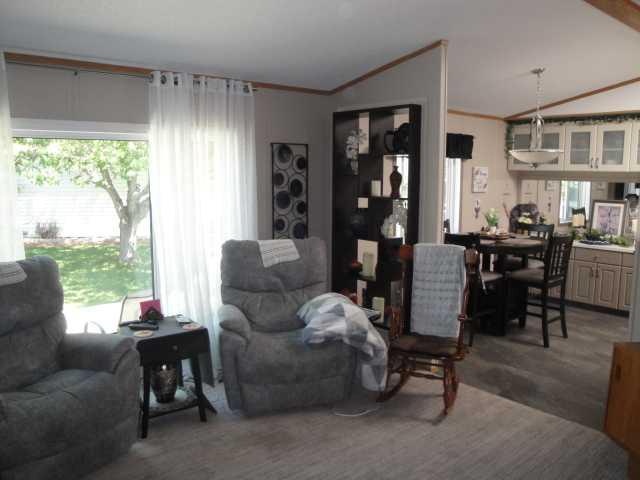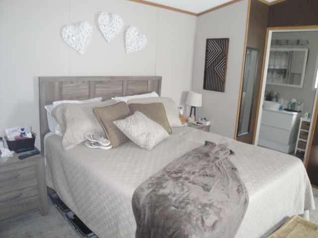 This beautifully maintained 1216 sq ft, 3 bedroom, 2 bathroom home in a desirable active adult community offers extensive updates throughout, including new lighting and plug-ins, two new storm doors, a new front window, and flooring replaced within the last two years. The bright, fully updated kitchen features pull-out shelves and newer appliances, while the ensuite boasts a newly installed walk-in shower. The inviting living room includes a cozy electric fireplace, perfect for year-round comfort. Additional highlights include a hot water tank replaced in 2018, new skylight, new smoke detectors, central air conditioning, and a recently sealed driveway. Outside, enjoy a large east-facing deck offering some shelter from the wind and overlooking a spacious yard area, along with the convenience of two sheds for extra storage space. Buyer must be approved by Parkbridge Estates Management.