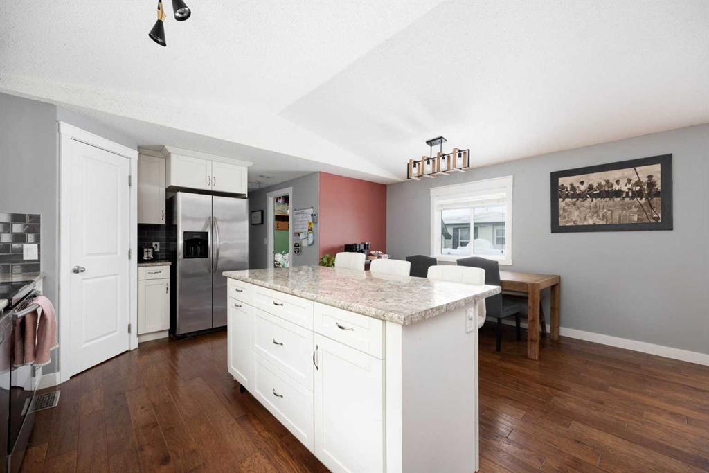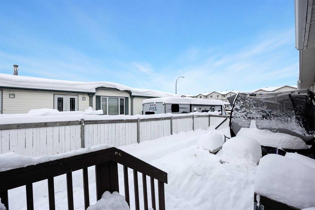 This bright and spacious home offers a fantastic open-concept layout with laminate flooring throughout, oversized windows, and a gorgeous central island featuring large drawers, soft-close cabinetry, and an abundance of cupboard space. The kitchen is complete with a large pantry and plenty of storage, making it ideal for everyday living and entertaining. The primary bedroom is generously sized, offering a large walk-in closet and a full ensuite with an oval soaker tub, shower, and an extended vanity with ample counter space. A dedicated laundry room includes additional closet space and shelving for added convenience. You’ll love the functional back entry/boot room, perfect for all seasons, with excellent storage and space for your gear. The home also features two other good-sized bedroom with bright windows, an additional bathroom, and no skylights. Outside, enjoy a large yard with a two-tier deck, plus two sheds. Parking is available for up to three vehicles, including tandem parking in front of the fenced area. A well-designed home with excellent storage, natural light, and thoughtful features throughout—ready for its next owner.